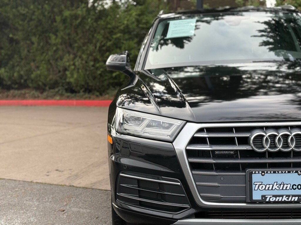2018 Audi Q5 2.0T Premium Plus Brilliant Black 2.0L TFSI 10 Speakers, 3-Step Heated Front Seats, 3-Step Heated Rear Seats, 4-Wheel Disc Brakes, 5.302 Axle Ratio, 8-Way Power Front Bucket Seats, ABS brakes, Air Conditioning, Alloy wheels, AM/FM radio, Audi Advanced Key, Audi Cargo Box, Audi Connect CARE, Audi Connect PRIME & PLUS, Audi Side Assist w/Pre Sense Rear, Audi smartphone interface (Apple CarPlay/Android Auto), Audi Virtual Cockpit, Auto-dimming Rear-View mirror, Automatic temperature control, Bang & Olufsen 3D Sound System, Black Privacy Trunk Cover, Brake assist, Bumpers: body-color, Cold Weather Package, Compass, Delay-off headlights, Driver door bin, Driver Seat Memory, Driver vanity mirror, Dual front impact airbags, Dual front side impact airbags, Electronic Stability Control, Exterior Parking Camera Rear, First Aid Kit (Discontinued), Four wheel independent suspension, Front anti-roll bar, Front Bucket Seats, Front Center Armrest, Front dual zone A/C, Front fog lights, Front reading lights, Full LED Headlights, Garage door transmitter: HomeLink, Genuine wood console insert, Genuine wood dashboard insert, Genuine wood door panel insert, Heated 3-Spoke Multifunction Steering Wheel, Heated Auto-Dimming & Power-Adjustable Mirrors, Heated door mirrors, High Gloss Window Surrounds, High intensity discharge headlights: Xenon plus, Illuminated entry, Leather Seating Surfaces, Leather Shift Knob, Leather steering wheel, Low tire pressure warning, Navigation Package, Occupant sensing airbag, Outside temperature display, Overhead airbag, Overhead console, Panic alarm, Panoramic Sunroof w/Tilt/Slide & Power Sunshade, Parking System Plus (Front/Rear Acoustic Sensors), Passenger door bin, Passenger vanity mirror, Power door mirrors, Power driver seat, Power Liftgate, Power passenger seat, Power steering, Power windows, Premium Plus Package, Radio data system, Radio: Audi Sound System w/7" TFT Color Display, Radio: MMI Navigation Plus System, Rain sensing wipers, Rear air conditioning, Rear anti-roll bar, Rear Cross Traffic Assist, Rear fog lights, Rear reading lights, Rear seat center armrest, Rear window defroster, Rear window wiper, Remote keyless entry, Roof rack, Security system, SiriusXM All Access Service, Speed control, Speed-sensing steering, Speed-Sensitive Wipers, Split folding rear seat, Spoiler, Stainless Steel Door Sills, Steering wheel mounted audio controls, Tachometer, Telescoping steering wheel, Tilt steering wheel, Traction control, Trailer Hitch, Trip computer, Turn signal indicator mirrors, Variably intermittent wipers, Vehicle Exit Assist, Wheels: 8" x 18" 5-Double-Spoke Dynamic Design, Wheels: 8" x 20" 5-Spoke Segment Design.