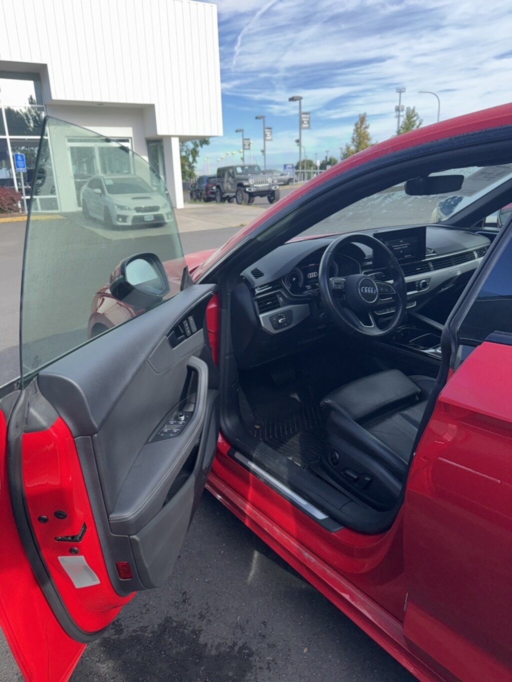 Alarm System w/Motion Sensors, All Weather Floor Mats, Aluminum Ellipse Dark Inlays, Audi Advanced Key, Audi Side Assist w/Pre Sense Rear, Auto-Dimming Exterior Mirrors, Black Exterior Trim, Black Optic Package, Body Colored Door Handles, Cold Weather Package, Convenience Package, Driver Seat Memory, Front Sport Seats, Heated Rear Seats, Heated Steering Wheel, Matrix-Design LED Headlights, MMI Navigation Plus, Navigation Package, Parking System Plus (Front/Rear Acoustic Sensors), Power Folding Exterior Mirrors, Premium Plus, Rear Seat USB Charge Ports, SiriusXM All Access Service, Ventilated Front Seats, Warm Weather Package, Wheels: 19" 5-Arm-Pylon Design Titanium Finish, 10 Speakers, 4-Wheel Disc Brakes, ABS brakes, Air Conditioning, Alloy wheels, AM/FM radio, Anti-whiplash front head restraints, Audi smartphone interface (Apple CarPlay/Android Auto), Auto High-beam Headlights, Auto-dimming Rear-View mirror, Automatic temperature control, Brake assist, Bumpers: body-color, Compass, Delay-off headlights, Driver door bin, Driver vanity mirror, Dual front impact airbags, Dual front side impact airbags, Electronic Stability Control, Emergency communication system: Audi connect CARE, Exterior Parking Camera Rear, Four wheel independent suspension, Front anti-roll bar, Front Bucket Seats, Front Center Armrest, Front dual zone A/C, Front fog lights, Front reading lights, Garage door transmitter: HomeLink, Heated door mirrors, Heated Front Bucket Seats, Heated front seats, Illuminated entry, Knee airbag, Leather Seating Surfaces, Leather Shift Knob, Leather steering wheel, Low tire pressure warning, Occupant sensing airbag, Outside temperature display, Overhead airbag, Overhead console, Panic alarm, Passenger door bin, Passenger vanity mirror, Power adjustable front head restraints, Power door mirrors, Power driver seat, Power Liftgate, Power moonroof, Power passenger seat, Power steering, Power windows, Radio data system, Radio: Audi Sound System, Rain sensing wipers, Rear air conditioning, Rear anti-roll bar, Rear reading lights, Rear seat center armrest, Rear window defroster, Remote keyless entry, Speed control, Speed-sensing steering, Speed-Sensitive Wipers, Split folding rear seat, Steering wheel mounted audio controls, Tachometer, Telescoping steering wheel, Tilt steering wheel, Traction control, Trip computer, Turn signal indicator mirrors, Variably intermittent wipers, Wheels: 18" 5-V-Spoke-Y Design, Alarm System w/Motion Sensors, All Weather Floor Mats, Aluminum Ellipse Dark Inlays, Audi Advanced Key, Audi Side Assist w/Pre Sense Rear, Auto-Dimming Exterior Mirrors, Black Exterior Trim, Black Optic Package, Body Colored Door Handles, Cold Weather Package, Convenience Package, Driver Seat Memory, Front Sport Seats, Heated Rear Seats, Heated Steering Wheel, Matrix-Design LED Headlights, MMI Navigation Plus, Navigation Package, Parking System Plus (Front/Rear Acoustic Sensors), Power Folding Exterior Mirrors, Premium Plus, Rear Seat USB Charge Ports, SiriusXM All Access Service, Ventilated Front Seats, Warm Weather Package, Wheels: 19" 5-Arm-Pylon Design Titanium Finish. 2020 Audi A5 Sportback Premium Plus quattro 4D Hatchback 2.0L 4-Cylinder TFSI 7-Speed Automatic S tronic quattro Red Clean CARFAX.
