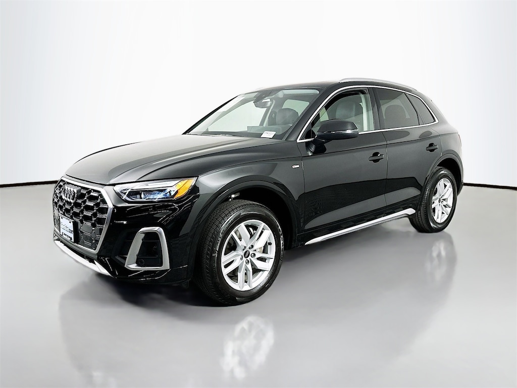 PANORAMIC SUNROOF! CONVENIENCE PACKAGE; HEATED STEERING HWEEL! CARFAX One-Owner. Clean CARFAX. Mythos Black Metallic 2022 Audi Q5 45 S line Premium quattro 4D Sport Utility 2.0L Turbocharged 7-Speed Automatic S tronic quattro Black Leather, 10 Speakers, 4-Wheel Disc Brakes, ABS brakes, Air Conditioning, AM/FM radio, Audi Advanced Key, Auto High-beam Headlights, Auto-Dimming Power Folding Exterior Mirrors, Auto-dimming Rear-View mirror, Automatic temperature control, Back Up Camera, Backup Camera, Blind Spot, BlueTooth, Brake assist, Bumpers: body-color, Compass, Convenience Package, Delay-off headlights, Driver door bin, Driver Seat Memory, Driver vanity mirror, Dual front impact airbags, Dual front side impact airbags, Electronic Stability Control, Emergency communication system: Audi connect CARE, Four wheel independent suspension, Front anti-roll bar, Front Bucket Seats, Front Center Armrest, Front dual zone A/C, Front fog lights, Front reading lights, Garage door transmitter: HomeLink, Genuine wood console insert, Genuine wood dashboard insert, Genuine wood door panel insert, Heated 8-Way Power Front Bucket Seats, Heated door mirrors, Heated front seats, Heated Seats, Heated Steering Wheel, Illuminated entry, Keyless Entry, Leather, Leather Seating Surfaces, Leather Shift Knob, Low tire pressure warning, Occupant sensing airbag, Outside temperature display, Overhead airbag, Overhead console, Panic alarm, Panorama Roof, Passenger vanity mirror, Power door mirrors, Power driver seat, Power Liftgate, Power passenger seat, Power steering, Power windows, Radio data system, Radio: Audi Sound System, Rear air conditioning, Rear anti-roll bar, Rear fog lights, Rear reading lights, Rear seat center armrest, Rear window defroster, Remote keyless entry, Roof rack, Security system, SiriusXM All Access Service, Speed control, Speed-sensing steering, Split folding rear seat, Spoiler, Steering wheel mounted audio controls, Tachometer, Telescoping steering wheel, Tilt steering wheel, Traction control, Trip computer, Turn signal indicator mirrors.