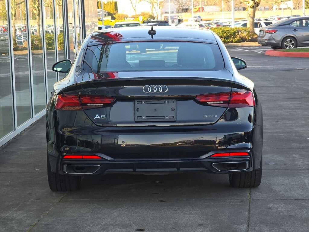 2025 Audi A5 Sportback 45 S line Premium Brilliant Black 2.0L 4-Cylinder TFSI 23/32 City/Highway MPG ABS brakes, Active Cruise Control, Alloy wheels, Compass, Electronic Stability Control, Front Bucket Seats, Front Center Armrest, Front dual zone A/C, Heated door mirrors, Heated front seats, Heated Front Sport Seats, Illuminated entry, Low tire pressure warning, Power Liftgate, Power moonroof, Power passenger seat, Remote keyless entry, Split folding rear seat, Traction control. CARFAX One-Owner. Clean CARFAX. Priced below KBB Fair Purchase Price! Our Best Price Up Front, No Games or Gimmicks. Our advertised price is for a retail type purchase and may not be available for Fleet or Commercial use type purchase; please call us to confirm.