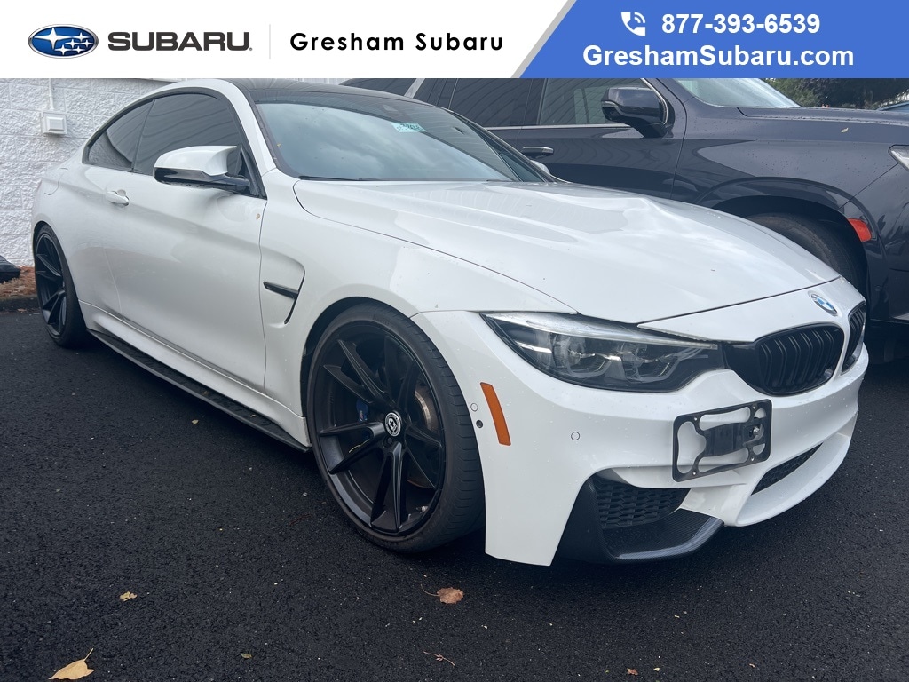 Wheels: 20" x 9" Front & 20" x 10" Rear, 16 Speakers, 4-Wheel Disc Brakes, ABS brakes, Active Blind Spot Detection, Adaptive suspension, Advanced Real-Time Traffic Information, Air Conditioning, Alloy wheels, AM/FM radio: SiriusXM, Apple CarPlay Compatibility, Auto-dimming door mirrors, Auto-dimming Rear-View mirror, Automatic High Beams, Automatic temperature control, Brake assist, Bumpers: body-color, CD player, Cloth/Leather Upholstery, Delay-off headlights, Driver door bin, Driver vanity mirror, Dual front impact airbags, Dual front side impact airbags, DVD-Audio, Electronic Stability Control, Emergency communication system: BMW Assist eCall, Enhanced USB & Bluetooth, Exterior Parking Camera Rear, Four wheel independent suspension, Front anti-roll bar, Front Bucket Seats, Front Center Armrest, Front dual zone A/C, Front reading lights, Fully automatic headlights, Garage door transmitter, Hands-Free Bluetooth & USB Audio Connection, harman/kardon Surround Sound System, harman/kardon® Speakers, HD Radio, Head-Up Display, Heated door mirrors, Heated Front Seats, Heated front seats, Heated Steering Wheel, Icon Adaptive Full LED Headlights, Illuminated entry, Knee airbag, Leather Shift Knob, Leather steering wheel, Low tire pressure warning, Lumbar Support, Memory seat, Navigation System, Occupant sensing airbag, Outside temperature display, Overhead airbag, Panic alarm, Park Distance Control, Parking Assistant, Passenger door bin, Passenger vanity mirror, Power door mirrors, Power driver seat, Power Front Seats, Power passenger seat, Power steering, Power windows, Radio data system, Radio: AM/FM Audio System, Rain sensing wipers, Rear air conditioning, Rear anti-roll bar, Rear reading lights, Rear seat center armrest, Rear window defroster, Remote keyless entry, Security system, Side & Top View Cameras, SiriusXM Satellite Radio, Speed control, Speed Limit Info, Speed-sensing steering, Speed-Sensitive Wipers, Split folding rear seat, Sport steering wheel, Steering wheel mounted audio controls, Tachometer, Telescoping steering wheel, Tilt steering wheel, Traction control, Trip computer, Turn signal indicator mirrors, Variably intermittent wipers, Wheels: 18" x 9" Front & 18" x 10" Rear, Wheels: 20" x 9.0" Front & 20" x 10.0" Rear Black, WiFi Hotspot, Wireless Charging, BMW Individual High-Gloss Shadow Line, Competition Package, Competition Package (7MA), M Competition Package, Wheels: 20" x 9" Front & 20" x 10" Rear. 2018 BMW M4 2D Coupe 3.0L 6-Cylinder Turbocharged DOHC 7-Speed Automatic RWD Alpine White Clean CARFAX.