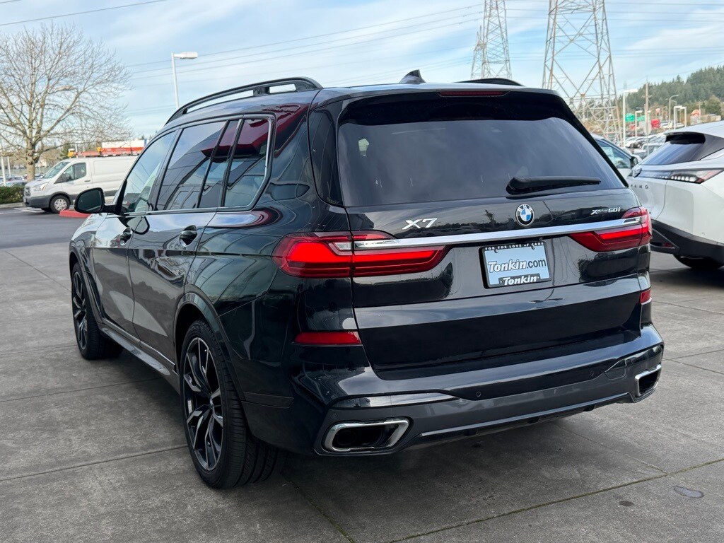 2019 BMW X7 xDrive50i Black Sapphire Metallic 4.4L V8 DOHC 32V 15/21 City/Highway MPG 16 Speakers, 3.39 Axle Ratio, 3rd row seats: split-bench, 4-Wheel Disc Brakes, 5-Zone Automatic Climate Control, ABS brakes, Aerodynamic Kit, Air Conditioning, Alloy wheels, AM/FM radio: SiriusXM, AM/FM Stereo, Anthracite Alcantara Headliner, Apple CarPlay, Apple CarPlay Compatibility, Auto High-beam Headlights, Auto tilt-away steering wheel, Auto-dimming door mirrors, Auto-dimming Rear-View mirror, Auto-leveling suspension, Automatic temperature control, Brake assist, Bumpers: body-color, Cold Weather Package, Compass, Delay-off headlights, Driver door bin, Driver vanity mirror, Dual front impact airbags, Dual front side impact airbags, Electronic Stability Control, Emergency communication system: BMW Assist eCall, Four wheel independent suspension, Front & Rear Heated Seats, Front anti-roll bar, Front Bucket Seats, Front Center Armrest, Front dual zone A/C, Front fog lights, Front reading lights, Fully automatic headlights, Garage door transmitter, Genuine wood console insert, Genuine wood dashboard insert, Genuine wood door panel insert, Gesture Control, harman/kardon Surround Sound System, harman/kardon® Speakers, Head restraints memory, Head-Up Display, Heads-Up Display, Heated & Cooled Cup Holders, Heated door mirrors, Heated Front Seats, Heated front seats, Heated Front Seats Armrests & Steering Wheel, High-Gloss Shadowline Roof Rails, Illuminated entry, Knee airbag, Leather Shift Knob, Low tire pressure warning, M Sport Brakes, M Sport Exhaust System, M Sport Package, M Steering Wheel, Memory seat, Multi-Contour Seats, Navigation System, Occupant sensing airbag, Outside temperature display, Overhead airbag, Panic alarm, Passenger door bin, Passenger vanity mirror, Power adjustable front head restraints, Power door mirrors, Power driver seat, Power Front Seats, Power moonroof, Power passenger seat, Power steering, Power windows, Premium Package, Radio data system, Rain sensing wipers, Rear air conditioning, Rear anti-roll bar, Rear dual zone A/C, Rear Electric Side Window Shades, Rear reading lights, Rear seat center armrest, Rear window defroster, Rear window wiper, Reclining 3rd row seat, Remote Engine Start, Remote keyless entry, Roof rack: rails only, Second-Row Captain's Chairs, Security system, Shadowline Exterior Trim, SiriusXM Satellite Radio, Soft-Close Automatic Doors, Speed control, Speed-sensing steering, Speed-Sensitive Wipers, Split folding rear seat, Spoiler, Sport steering wheel, Steering wheel memory, Steering wheel mounted audio controls, Tachometer, Telescoping steering wheel, Tilt steering wheel, Traction control, Trip computer, Turn signal indicator mirrors, Variably intermittent wipers, Vernasca Leather Upholstery, Wheels: 21" x 9.5" Double-Spoke Bi-Color Orbit Grey, Wheels: 21" x 9.5" Y-Spoke Bi-Color (Style 753), Wheels: 22" x 9.5" Fr & 22" x 10.5" Rr V-Spoke, Without Lines Designation Outside. CARFAX One-Owner. Clean CARFAX. Odometer is 12540 miles below market average! Our Best Price Up Front, No Games or Gimmicks. Our advertised price is for a retail type purchase and may not be available for Fleet or Commercial use type purchase; please call us to confirm.