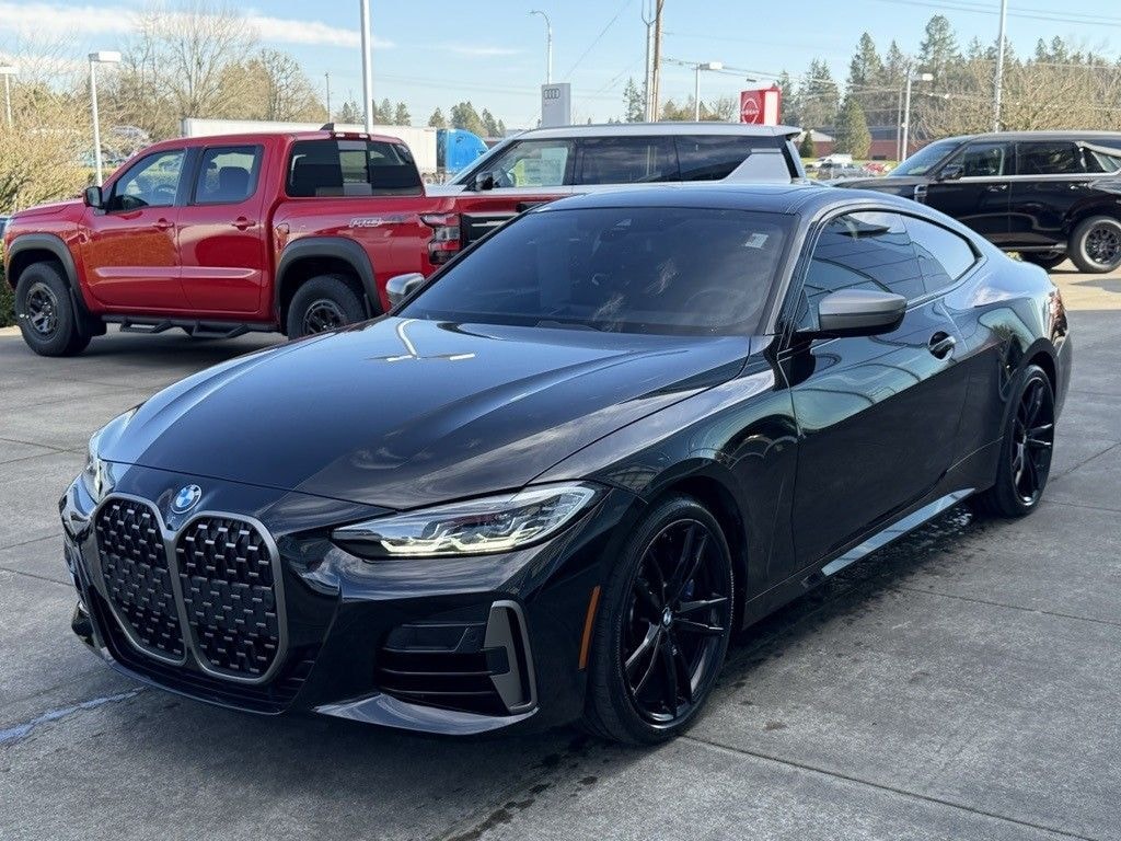 2024 BMW 4 Series M440i xDrive Black Sapphire Metallic 3.0L I6 22/31 City/Highway MPG 10 Speakers, 4-Wheel Disc Brakes, ABS brakes, Air Conditioning, AM/FM Radio, AM/FM radio: SiriusXM with 360L, Apple CarPlay & Android Auto Compatibility, Auto High-beam Headlights, Auto-dimming door mirrors, Auto-dimming Rear-View mirror, Automatic temperature control, BMW Assist eCall, BMW TeleServices, Brake assist, Bumpers: body-color, Compass, Connected Package Pro, ConnectedDrive Services, Delay-off headlights, Driver door bin, Driver vanity mirror, Dual front impact airbags, Dual front side impact airbags, Electronic Stability Control, Emergency communication system: BMW Assist eCall, Exterior Parking Camera Rear, Four wheel independent suspension, Front anti-roll bar, Front Bucket Seats, Front Center Armrest, Front dual zone A/C, Front reading lights, Fully automatic headlights, Garage door transmitter, Heated door mirrors, Heated Front Seats, Heated Steering Wheel, Hi-Fi Sound System, High Gloss Fine Wood Ash Gray-Brown Trim, Illuminated entry, Knee airbag, Leather steering wheel, Low tire pressure warning, Lumbar Support, Memory seat, Navigation, Navigation System, Occupant sensing airbag, Outside temperature display, Overhead airbag, Overhead console, Panic alarm, Passenger door bin, Passenger vanity mirror, Perforated SensaTec Upholstery, Power door mirrors, Power driver seat, Power Front Seats, Power moonroof, Power passenger seat, Power steering, Power windows, Radio data system, Rain sensing wipers, Rear anti-roll bar, Rear reading lights, Rear seat center armrest, Rear window defroster, Remote keyless entry, Security system, SiriusXM w/360L, Speed control, Speed-sensing steering, Speed-Sensitive Wipers, Split folding rear seat, Spoiler, Sport Seats, Sport steering wheel, Steering wheel mounted audio controls, Tachometer, Telescoping steering wheel, Tilt steering wheel, Traction control, Trip computer, Turn signal indicator mirrors, Variably intermittent wipers, Wheels: 19" x 8.0" M Double-Spoke (Style 791M), Widescreen Display, Wireless Device Charging. CARFAX One-Owner. Clean CARFAX. Odometer is 2713 miles below market average! Our Best Price Up Front, No Games or Gimmicks. Our advertised price is for a retail type purchase and may not be available for Fleet or Commercial use type purchase; please call us to confirm.