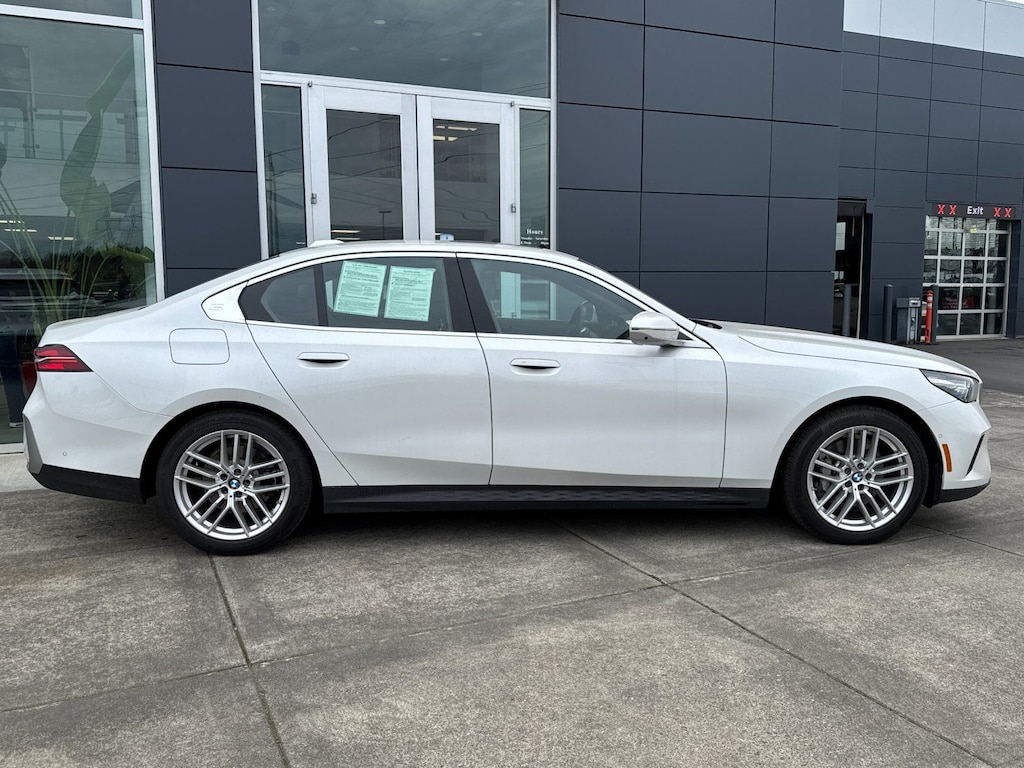 2025 BMW 5 Series 530i xDrive White Metallic 2.0L 4-Cylinder 27/35 City/Highway MPG AWD, Black Premium Synthetic, 12 Speakers, 4-Wheel Disc Brakes, ABS brakes, Air Conditioning, Alloy wheels, AM/FM radio: SiriusXM, Apple CarPlay & Android Auto Compatibility, Auto tilt-away steering wheel, Auto-dimming door mirrors, Auto-dimming Rear-View mirror, Automatic temperature control, BMW Assist eCall, BMW Curved Display w/HUD, BMW TeleServices, Brake assist, Bumpers: body-color, Connected Package Pro, ConnectedDrive Services, Delay-off headlights, Driver door bin, Driver vanity mirror, Dual front impact airbags, Dual front side impact airbags, Electronic Stability Control, Emergency communication system: BMW Assist eCall, Exterior Parking Camera Rear, Four wheel independent suspension, Front anti-roll bar, Front Bucket Seats, Front Center Armrest, Front dual zone A/C, Front reading lights, Full LED Lights w/Cornering Lights, Fully automatic headlights, Garage door transmitter, Genuine wood dashboard insert, Genuine wood door panel insert, harman/kardon® Logic 7® Digital Surround, harman/kardon® Speakers, Head restraints memory, Heated door mirrors, Heated Front Seats, Heated front seats, Heated Steering Wheel, Illuminated entry, Interior Camera, Leather steering wheel, Low tire pressure warning, Lumbar Support, Memory seat, Natural Interaction, Navigation, Navigation System, Occupant sensing airbag, Outside temperature display, Overhead airbag, Panic alarm, Parking Assistant Plus, Passenger door bin, Passenger vanity mirror, Perforated & Quilted Veganza Upholstery, Personal eSIM 5G, Power adjustable front head restraints, Power door mirrors, Power driver seat, Power Front Seats, Power moonroof, Power passenger seat, Power steering, Power windows, Premium Content 1, Premium Package, Radio data system, Radio: AM/FM Audio System, Rain sensing wipers, Rear anti-roll bar, Rear reading lights, Rear seat center armrest, Rear window defroster, Remote Engine Start, Remote keyless entry, Security system, SiriusXM Satellite Radio w/1 Year Subscription, Speed control, Speed-sensing steering, Speed-Sensitive Wipers, Split folding rear seat, Sport Seats, Steering wheel memory, Steering wheel mounted audio controls, Tachometer, Telescoping steering wheel, Tilt steering wheel, Traction control, Trip computer, Turn signal indicator mirrors, Variably intermittent wipers, Wheels: 19" x 8.5" Triplex-Spoke Silver, Wireless Device Charging, AWD, Black Premium Synthetic. CARFAX One-Owner. Priced below KBB Fair Purchase Price! Odometer is 1323 miles below market average! Our Best Price Up Front, No Games or Gimmicks. Our advertised price is for a retail type purchase and may not be available for Fleet or Commercial use type purchase; please call us to confirm.