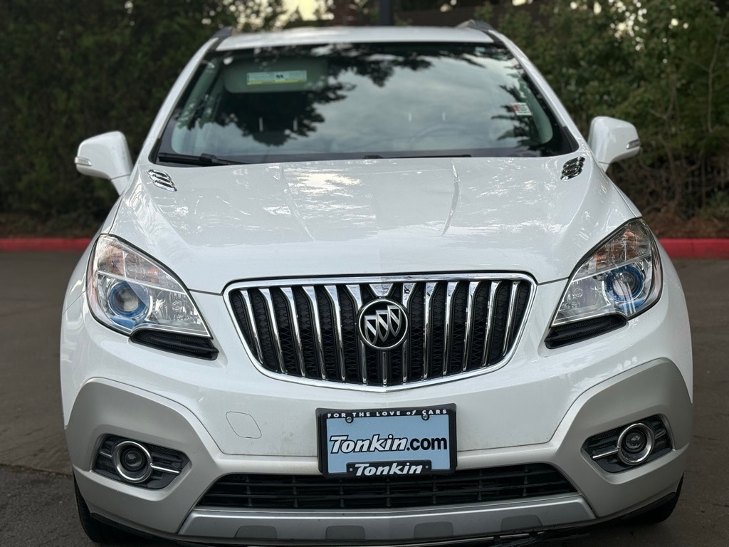 2015 Buick Encore Leather ECOTEC 1.4L I4 SMPI DOHC Turbocharged VVT 3.53 Final Drive Axle Ratio, 4-Wheel Disc Brakes, 6 Speakers, 6-Way Power Driver Seat Adjuster, 6-Way Power Front Passenger Seat Adjuster, ABS brakes, Air Conditioning, Alloy wheels, AM/FM radio: SiriusXM, Auto-dimming Rear-View mirror, Automatic temperature control, Brake assist, Bumpers: body-color, CD player, Compass, Delay-off headlights, Driver door bin, Driver vanity mirror, Driver's Seat Mounted Armrest, Dual front impact airbags, Dual front side impact airbags, Electronic Stability Control, Emergency communication system: OnStar Directions & Connections, Exterior Parking Camera Rear, Front anti-roll bar, Front Bucket Seats, Front dual zone A/C, Front fog lights, Front reading lights, Front wheel independent suspension, Fully automatic headlights, Heated door mirrors, Heated Driver & Front Passenger Seats, Heated front seats, Heated steering wheel, Illuminated entry, Knee airbag, Leather steering wheel, Leather-Appointed Seat Trim, Low tire pressure warning, Memory seat, Occupant sensing airbag, Outside temperature display, Overhead airbag, Panic alarm, Passenger door bin, Passenger vanity mirror, Power door mirrors, Power driver seat, Power passenger seat, Power steering, Power windows, Premium audio system: IntelliLink, Radio data system, Radio: AM/FM Audio System w/MP3 CD Player, Rear seat center armrest, Rear side impact airbag, Rear window defroster, Rear window wiper, Remote keyless entry, Ride & Handling Suspension, Roof rack: rails only, Security system, SiriusXM Satellite Radio, Speed control, Speed-sensing steering, Split folding rear seat, Spoiler, Steering wheel mounted audio controls, Tachometer, Telescoping steering wheel, Tilt steering wheel, Traction control, Trip computer, Turn signal indicator mirrors, Variably intermittent wipers, Wheels: 18" 5-Spoke Painted Cast Aluminum.