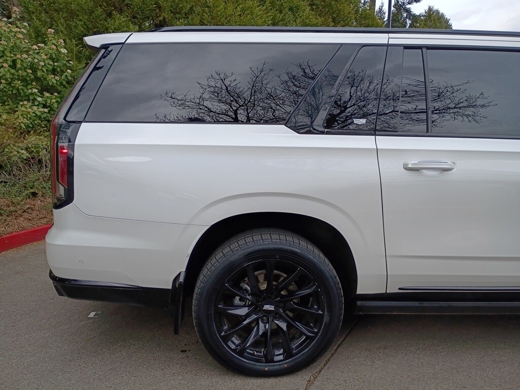2023 Cadillac Escalade ESV Sport Platinum White 6.2L V8 16.9" Diagonal OLED Infotainment Screen, 2-Presets Memory For Driver Seat Adjuster, 3.23 Axle Ratio, 3rd row seats: split-bench, 4-Way Power Driver Lumbar Seat Adjuster, 4-Way Power Front Passenger Lumbar Seat Adjuster, 4-Wheel Disc Brakes, 8-Way Power Driver Seat Adjuster, 8-Way Power Front Passenger Seat Adjuster, A/V remote, ABS brakes, Adaptive Cruise Control, Adaptive suspension, Air Conditioning, Air Ride Adaptive Suspension, AKG Studio Reference 36-Speaker Audio System, Alloy wheels, AM/FM radio: SiriusXM with 360L, Apple CarPlay/Android Auto, Audio memory, Auto High-beam Headlights, Auto tilt-away steering wheel, Auto-dimming door mirrors, Automatic Seat Belt Tightening, Automatic temperature control, Body-Color Door Handles, Brake assist, Bumpers: body-color, Compass, Delay-off headlights, Door auto-latch, Door Lock & Latch Shields, Driver door bin, Driver vanity mirror, Dual front impact airbags, Dual front side impact airbags, Electronic Limited-Slip Differential, Electronic Stability Control, Emergency communication system: OnStar and Cadillac connected services capable, Enhanced Automatic Emergency Braking, Enhanced Automatic Parking Assist, Exterior Parking Camera Rear, Floor Console w/Covered Storage, Four wheel independent suspension, Front anti-roll bar, Front Bucket Seats, Front Center Armrest w/Storage, Front dual zone A/C, Front reading lights, Full Semi-Aniline Leather Seat Trim, Fully automatic headlights, Garage door transmitter, Genuine wood console insert, Genuine wood dashboard insert, Genuine wood door panel insert, Glass Breakage Sensor, HD Radio, Headphones, Heads-Up Display, Heated & Ventilated Driver & Front Passenger Seats, Heated door mirrors, Heated Driver & Front Passenger Seats, Heated front seats, Heated rear seats, Heated steering wheel, Hitch Guidance w/Hitch View, Illuminated entry, Illuminating Front & Rear Sill Plates, Integrated Trailer Brake Controller, Leather steering wheel, Low tire pressure warning, Magnetic Ride Control Suspension, Memory seat, Navigation System, Occupant sensing airbag, Outside temperature display, Overhead airbag, Overhead console, Panic alarm, Passenger door bin, Passenger vanity mirror, Platinum Interior Trim, Power door mirrors, Power driver seat, Power Liftgate, Power Lumbar Massage Driver Seat, Power Lumbar Massage Front Passenger Seat, Power moonroof, Power Panoramic Tilt-Sliding Sunroof, Power passenger seat, Power steering, Power windows, Radio data system, Radio: AM/FM w/Navigation, Rain sensing wipers, Rear air conditioning, Rear anti-roll bar, Rear audio controls, Rear Camera Mirror, Rear Camera Mirror Washer, Rear Cross Traffic Alert, Rear reading lights, Rear Seat Entertainment System, Rear window defroster, Rear window wiper, Reconfigurable Full-Color Head-Up Display, Remote keyless entry, Reverse Automatic Braking, Running Board Assist Steps, Security system, SiriusXM w/360L, Smart Trailer Integration Indicator, Soft Closing Front & Rear Doors, Speed control, Split folding rear seat, Spoiler, Steering wheel memory, Steering wheel mounted audio controls, Tachometer, Teen Driver, Telescoping steering wheel, Theft-Deterrent Alarm System, Tilt steering wheel, Touring Package, Traction control, Trailer Side Blind Zone Alert, Trip computer, Turn signal indicator mirrors, Variably intermittent wipers, Vehicle Inclination Sensor, Vehicle Interior Movement Sensor, Ventilated front seats, Voltmeter, Wheels: 22" 12-Spoke Polished Alloy, Wireless Apple CarPlay/Wireless Android Auto.