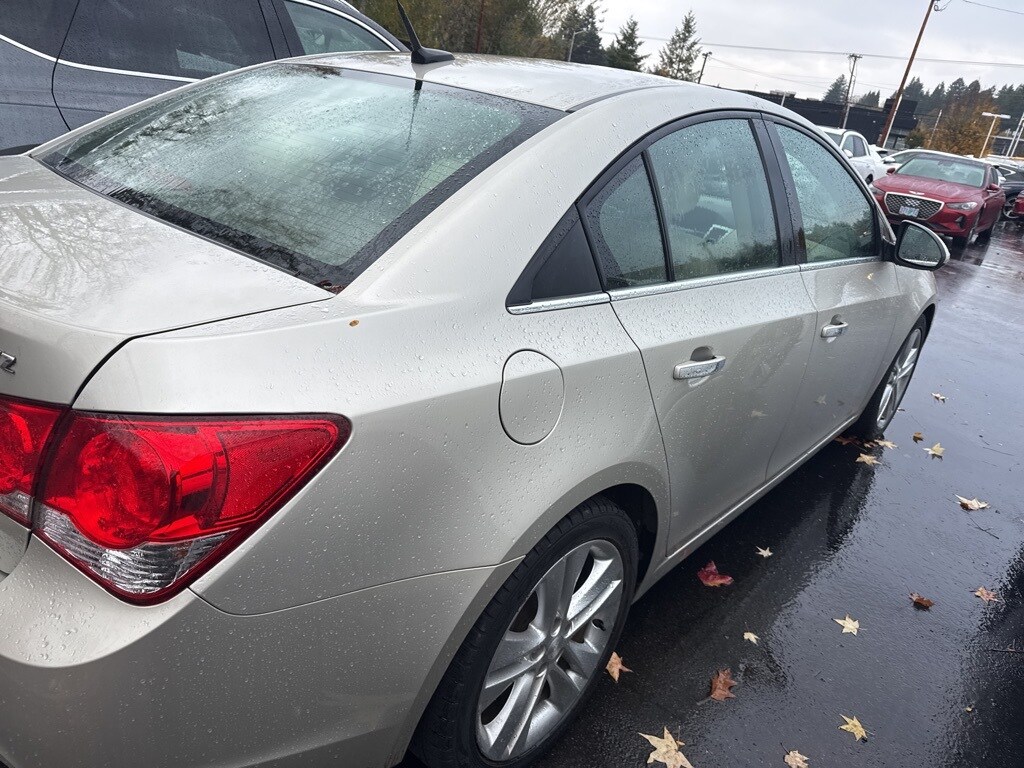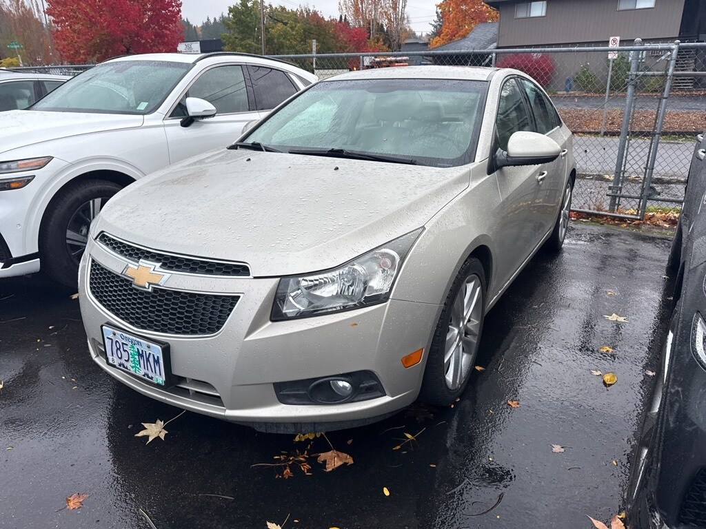 2013 Chevrolet Cruze LTZ 4D Sedan ECOTEC 1.4L I4 SMPI DOHC Turbocharged VVT 6-Speed Automatic Electronic with Overdrive FWD Champagne Silver Metallic Preferred Equipment Group 1SJ, 18" Split 5-Spoke Silver-Painted Alloy Wheels, 4-Wheel Disc Brakes, 6 Speakers, ABS brakes, Air Conditioning, Alloy wheels, AM/FM radio: SiriusXM, Auto-dimming Rear-View mirror, Automatic temperature control, Brake assist, Bumpers: body-color, Cargo Net, CD player, Chrome Door Sill Plates (LPO), Compass, Delay-off headlights, Driver door bin, Driver vanity mirror, Dual front impact airbags, Dual front side impact airbags, Electronic Stability Control, Emergency communication system: OnStar Directions & Connections, Exterior Parking Camera Rear, Front anti-roll bar, Front Bucket Seats, Front Center Armrest, Front fog lights, Front reading lights, Front wheel independent suspension, Fully automatic headlights, Heated door mirrors, Heated Driver & Front Passenger Seats, Heated front seats, Illuminated entry, Knee airbag, Leather Shift Knob, Low tire pressure warning, Meridian Leather-Appointed Seat Trim, Occupant sensing airbag, Outside temperature display, Overhead airbag, Panic alarm, Passenger door bin, Passenger vanity mirror, Power door mirrors, Power driver seat, Power steering, Power windows, Radio data system, Radio: AM/FM Stereo w/Color Touch, Rear seat center armrest, Rear side impact airbag, Rear window defroster, Remote keyless entry, Security system, SiriusXM Satellite Radio, Speed control, Speed-sensing steering, Split folding rear seat, Steering wheel mounted audio controls, Tachometer, Telescoping steering wheel, Tilt steering wheel, Traction control, Trip computer, Variably intermittent wipers, Voltmeter, Preferred Equipment Group 1SJ.