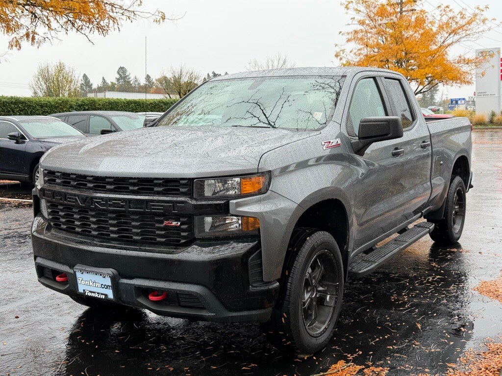 2019 Chevrolet Silverado 1500 Custom Trail Boss Satin Steel Metallic EcoTec3 5.3L V8 15/20 City/Highway MPG 6-Speed Automatic Electronic with Overdrive, 4WD, Black Cloth, 170 Amp Alternator, 3.42 Rear Axle Ratio, 3.5" Diagonal Monochromatic Display, 4-Wheel Disc Brakes, 6 Speakers, 6" Rectangular Black Tubular Assist Steps (LPO), ABS brakes, Air Conditioning, Alloy wheels, AM/FM radio, Apple CarPlay/Android Auto, Auxiliary External Transmission Oil Cooler, Bluetooth® For Phone, Brake assist, Cloth Seat Trim, Color-Keyed Carpeting Floor Covering, Custom Convenience Package, Deep-Tinted Glass, Delay-off headlights, Driver door bin, Driver vanity mirror, Dual Exhaust w/Polished Outlets, Dual front impact airbags, Dual front side impact airbags, Electric Rear-Window Defogger, Electronic Cruise Control, Electronic Stability Control, Exterior Parking Camera Rear, EZ Lift Power Lock & Release Tailgate, Front 40/20/40 Split-Bench Seat, Front anti-roll bar, Front Center Armrest, Front License Plate Kit, Front reading lights, Front Rubberized Vinyl Floor Mats, Front wheel independent suspension, Fully automatic headlights, Heated door mirrors, Heavy-Duty Rear Locking Differential, High Capacity Air Filter, High Gloss Black Grille, Hill Descent Control, Hitch Guidance, Illuminated entry, LED Cargo Area Lighting, Locking Tailgate, Low tire pressure warning, Manual Tilt Wheel Steering Column, Occupant sensing airbag, Off-Road Suspension w/2" Lift, Outside temperature display, Overhead airbag, Overhead console, Panic alarm, Passenger door bin, Passenger vanity mirror, Performance Red Recovery Hooks, Polished Exhaust Tip, Power Door Locks, Power door mirrors, Power Front Windows w/Driver Express Up/Down, Power Front Windows w/Passenger Express Down, Power Rear Windows w/Express Down, Power steering, Power windows, Preferred Equipment Group 2CX, Premium audio system: Chevrolet Infotainment System 3, Radio data system, Radio: Chevrolet Infotainment 3 System, Rear 60/40 Folding Bench Seat (Folds Up), Rear reading lights, Rear Rubberized-Vinyl Floor Mats, Rear step bumper, Remote Keyless Entry, Remote keyless entry, Remote Vehicle Starter System, Speed control, Speed-sensing steering, Split folding rear seat, Suspension Package, Tachometer, Theft Deterrent System (Unauthorized Entry), Tilt steering wheel, Traction control, Trailering Package, Trip computer, Variably intermittent wipers, Voltmeter, Wheels: 18" x 8.5" Black Painted Aluminum, 6-Speed Automatic Electronic with Overdrive, 4WD, Black Cloth. Clean CARFAX. Priced below KBB Fair Purchase Price! Odometer is 58518 miles below market average! Our Best Price Up Front, No Games or Gimmicks. Our advertised price is for a retail type purchase and may not be available for Fleet or Commercial use type purchase; please call us to confirm.