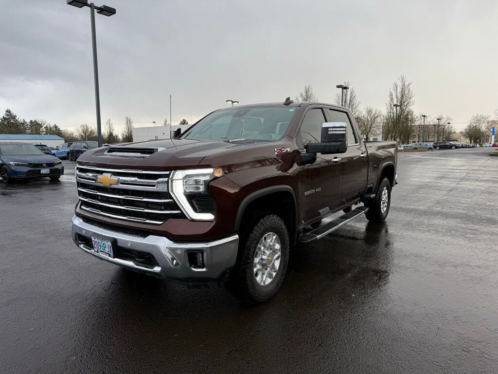 Available Soon. Pending Mechanical Pre-Inspection. Please Call (503) 667-7077 for Details! 10-Way Power Driver Seat Adjuster w/Lumbar, 10-Way Power Passenger Seat Adjuster w/Lumbar, 120-Volt Bed Mounted Power Outlet, 120-Volt Interior Power Outlet, 170 Amp Alternator, 2 Charge/Data USB Ports Inside Center Console, 220 Amp Alternator, 4-Wheel Disc Brakes, 6 Speakers, 6-Speaker Audio System Feature, 6" Rectangular Chromed Tubular Assist Steps, ABS brakes, Adaptive Cruise Control, Air Conditioning, All-Weather Floor Liners (LPO) (AAK), Alloy wheels, AM/FM radio: SiriusXM with 360L, Apple CarPlay/Android Auto, Auto High-beam Headlights, Auto-dimming door mirrors, Auto-Dimming Inside Rear-View Mirror, Auto-Dimming Inside Rearview Mirror w/Camera, Auto-dimming Rear-View mirror, Automatic temperature control, Bed View Camera w/2 Trailer Camera Provisions, Bluetooth® For Phone, Bose Premium 7-Speaker Sound System, Brake assist, Bumpers: chrome, Chevrolet Connected Access Capable, Chevytec Spray-On Black Bedliner, Chrome Door Handles, Chrome Mirror Caps, Color-Keyed Carpeting Floor Covering, Compass, Compass Located In Instrument Cluster, Deep-Tinted Glass, Delay-off headlights, Driver door bin, Driver Memory, Driver vanity mirror, Dual front impact airbags, Dual front side impact airbags, Durabed Pickup Bed, Electric Rear-Window Defogger, Electronic Stability Control, Engine Block Heater, Exhaust Brake, EZ Lift Power Lock & Release Tailgate, Floor-Mounted Center Console, Front 40/20/40 Split-Bench Seats w/Lockable Storage, Front anti-roll bar, Front Bucket Seats, Front Center Armrest w/Storage, Front dual zone A/C, Front fog lights, Front LED Fog Lamps, Front License Plate Kit, Front Rain-Sensing Wipers, Front reading lights, Front Rubberized Vinyl Floor Mats, Front wheel independent suspension, Fully automatic headlights, HD Rear Vision Camera, HD Surround Vision, Heated 2nd Row Outboard Seats, Heated door mirrors, Heated Driver & Front Outboard Passenger Seats, Heated front seats, Heated Steering Wheel, Heated steering wheel, Heavy-Duty 80 Amp-Hr Battery, Hill Descent Control, Hitch Guidance w/Hitch View, Illuminated entry, In-Vehicle Trailering App System, Keyless Open & Start, LED Cargo Area Lighting, Low tire pressure warning, LTZ Convenience Package, LTZ Convenience Package II, LTZ Premium Package, Manual Tilt-Wheel/Telescoping Steering Column, Memory seat, Multi-Flex Tailgate, Multicolor 15" Diagonal Head-Up Display, Occupant sensing airbag, OnStar & Chevrolet Connected Services Capable, Outside temperature display, Overhead airbag, Overhead console, Panic alarm, Passenger door bin, Passenger vanity mirror, Perf Leather-Appointed Front Outboard Seat Trim, Power Door Locks, Power door mirrors, Power driver seat, Power Front Windows w/Driver Express Up/Down, Power Front Windows w/Passenger Express Up/Down, Power passenger seat, Power Rear Windows w/Express Down, Power Sliding Rear Window w/Defogger, Power steering, Power Sunroof, Power windows, Preferred Equipment Group 1LZ, Premium audio system: Chevrolet Infotainment 3 Premium, Push Button Start, Radio: Chevrolet Infotainment 3 Premium System, Rain sensing wipers, Rear Cross Traffic Alert, Rear reading lights, Rear Rubberized-Vinyl Floor Mats, Rear seat center armrest, Rear step bumper, Rear Wheelhouse Liners, Rear window defroster, Remote keyless entry, Remote Vehicle Starter System, Safety Alert Seat, Safety Package, Security system, SiriusXM w/360L, Speed control, Speed-sensing steering, Split folding rear seat, Standard Tailgate, Steering Wheel Audio Controls, Steering wheel mounted audio controls, Steering Wheel Mounted Electronic Cruise Control, Suspension Package, Tachometer, Technology Package, Telescoping steering wheel, Tilt steering wheel, Traction control, Trailer Camera Provisions, Trailer Side Blind Zone Alert, Trip computer, Turn signal indicator mirrors, Ultrasonic Front & Rear Park Assist, Unauthorized Entry Theft-Deterrent System, Universal Home Remote, Up-Le