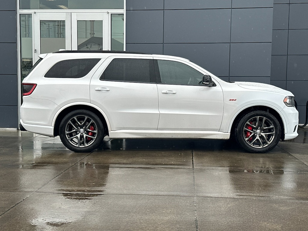 2020 Dodge Durango SRT Vice White SRT HEMI 6.4L V8 MDS 13/19 City/Highway MPG AWD, 1 USB Charging Port in Console, 12V Auxiliary Power Outlet In Console, 19 harman/kardon Amplified Speakers w/Subwoofer, 2nd Row Console w/Armrest & Storage, 3.70 Rear Axle Ratio, 3rd Row Floor Mat & Full Console, 3rd row seats: split-bench, 4-Wheel Disc Brakes, 7 & 4 Pin Wiring Harness, 825 Watt Amplifier, 9 Speakers, ABS brakes, Adaptive Cruise Control w/Stop, Advanced Brake Assist, Air Conditioning, Alloy wheels, AM/FM radio: SiriusXM, Anti-whiplash front head restraints, Apple CarPlay/Android Auto, Audio memory, Auto High-beam Headlights, Auto-dimming door mirrors, Auto-dimming Rear-View mirror, Automatic temperature control, Blind Spot & Cross Path Detection, Brake assist, Bumpers: body-color, Cargo Compartment Cover, Cargo Plus Group, Class IV Receiver Hitch, Compass, Delay-off headlights, Driver door bin, Driver vanity mirror, Dual front impact airbags, Dual front side impact airbags, Electronic Stability Control, Emergency communication system: Roadside Assistance/9-1-1 Call, Four wheel independent suspension, Front anti-roll bar, Front Bucket Seats, Front Center Armrest w/Storage, Front dual zone A/C, Front fog lights, Front reading lights, Full Speed Forward Collision Warning Plus, Fully automatic headlights, Garage door transmitter, Heated door mirrors, Heated front seats, Heated rear seats, Heated steering wheel, High Performance Brakes, High-Intensity Discharge Headlights, Illuminated entry, Illuminated Rear Cupholders, Knee airbag, Lane Departure Warning Plus, Leather Shift Knob, Leather steering wheel, Leather Trimmed Bucket Seats, Low tire pressure warning, Manufacturer's Statement of Origin, Memory seat, Navigation System, Occupant sensing airbag, Outside temperature display, Overhead airbag, Overhead console, Panic alarm, ParkView Rear Back-Up Camera, Passenger door bin, Passenger vanity mirror, Power door mirrors, Power driver seat, Power Liftgate, Power passenger seat, Power steering, Power Sunroof, Power windows, Premium Interior Group, Premium Wrapped I/P Bezel, Quick Order Package 29L, Radio data system, Radio: Uconnect 4C Nav w/8.4" Display, Rain sensing wipers, Real Carbon Fiber Interior Accents, Rear air conditioning, Rear anti-roll bar, Rear reading lights, Rear window defroster, Rear window wiper, Red Seat Belts, Remote keyless entry, Security system, Single Disc Remote CD Player, Speed control, Speed-Sensitive Wipers, Split folding rear seat, Spoiler, Steering wheel mounted audio controls, Suede Headliner, Tachometer, Technology Group, Telescoping steering wheel, Tilt steering wheel, Traction control, Trailer Brake Control, Trailer Tow Group IV, Trip computer, Turn signal indicator mirrors, Variably intermittent wipers, Ventilated front seats, Wheels: 20" x 10.0" Low-Gloss Black Multispoke, Wheels: 20" x 10.0" Matte Vapor Aluminum, AWD. Clean CARFAX. Priced below KBB Fair Purchase Price! Odometer is 6287 miles below market average! Our Best Price Up Front, No Games or Gimmicks. Our advertised price is for a retail type purchase and may not be available for Fleet or Commercial use type purchase; please call us to confirm.