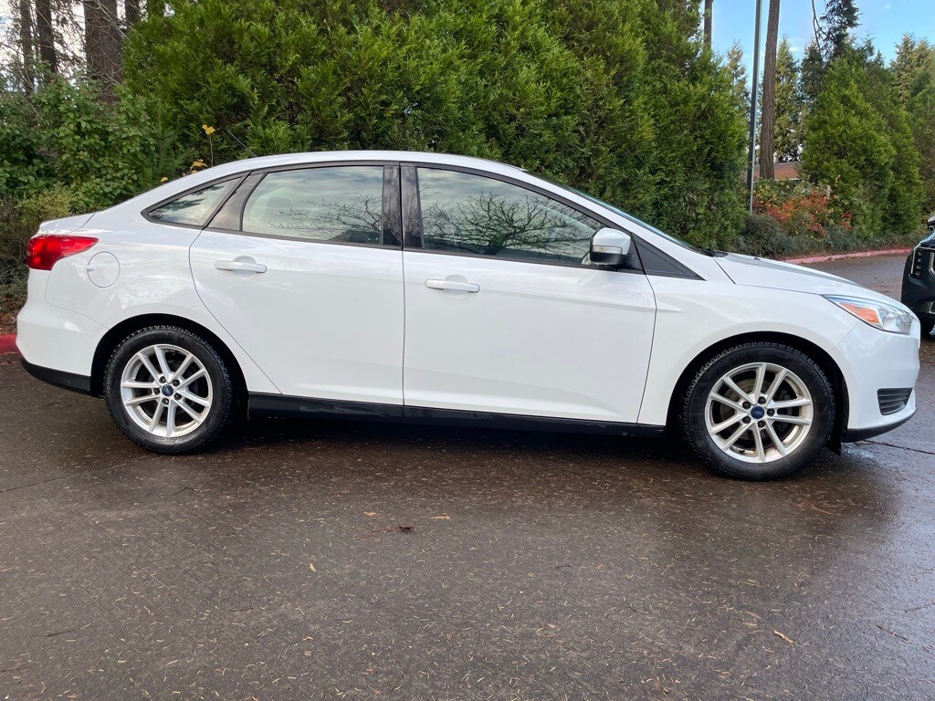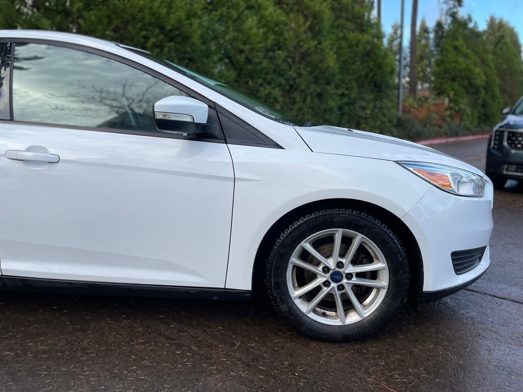 2015 Ford Focus SE White 2.0L 4-Cylinder DGI DOHC 16" Painted Aluminum Alloy Wheels, 6 Speakers, ABS brakes, Air Conditioning, Alloy wheels, AM/FM radio, Brake assist, Bumpers: body-color, CD player, Cloth Front Bucket Seats, Compass, Delay-off headlights, Driver door bin, Driver vanity mirror, Dual front impact airbags, Dual front side impact airbags, Electronic Stability Control, Exterior Parking Camera Rear, Four wheel independent suspension, Front anti-roll bar, Front Bucket Seats, Front Center Armrest, Front reading lights, Fully automatic headlights, Illuminated entry, Knee airbag, Low tire pressure warning, Occupant sensing airbag, Outside temperature display, Overhead airbag, Panic alarm, Passenger door bin, Passenger vanity mirror, Power door mirrors, Power steering, Power windows, Radio data system, Radio: AM/FM Single-CD/MP3-Capable, Rear anti-roll bar, Rear window defroster, Remote keyless entry, Speed control, Split folding rear seat, Steering wheel mounted audio controls, SYNC, Tachometer, Telescoping steering wheel, Tilt steering wheel, Traction control, Trip computer, Variably intermittent wipers.