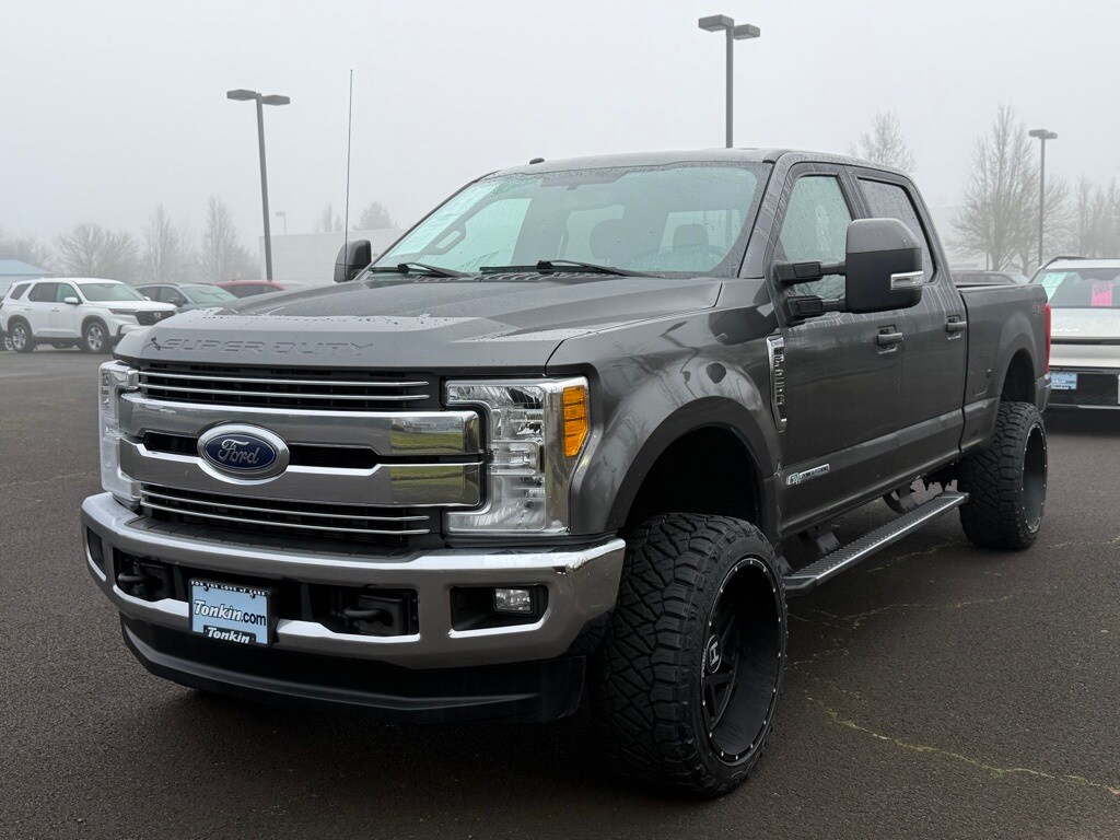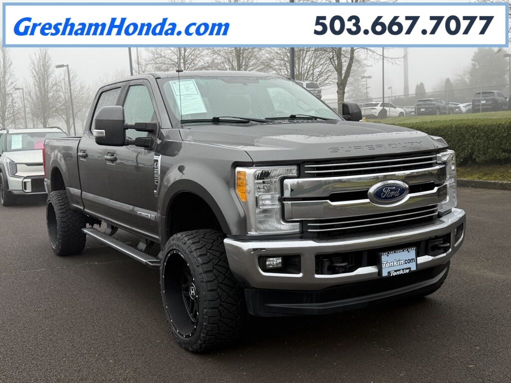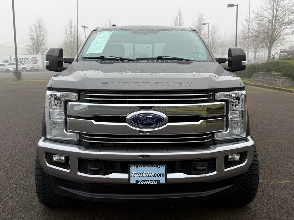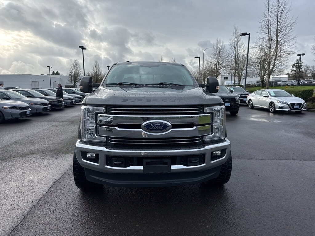 10 Speakers, 110V/400W Outlet, 3.73 Axle Ratio, 4-Wheel Disc Brakes, 5" Chrome Tubular Step Bar, ABS brakes, Adjustable pedals, Air Conditioning, Alloy wheels, AM/FM radio: SiriusXM, Auto-dimming Rear-View mirror, Automatic temperature control, Brake assist, Bumpers: chrome, CD player, Compass, Delay-off headlights, Driver door bin, Driver vanity mirror, Dual front impact airbags, Dual front side impact airbags, Easy Entry®/Exit Memory Driver's Seat Feature, Electronic Stability Control, Emergency communication system: SYNC 3 911 Assist, Exterior Parking Camera Rear, Flow-Through Console, Front anti-roll bar, Front Bucket Seats, Front Center Armrest, Front dual zone A/C, Front fog lights, Front Leather Seating Surfaces 40/Console/40, Front reading lights, Fully automatic headlights, GVWR: 10,000 lb Payload Package, Heated door mirrors, Illuminated entry, Lariat Value Package, Leather steering wheel, LED Box Lighting, Low tire pressure warning, Memory Power-Adjustable Pedals, Order Code 608A, Outside temperature display, Overhead airbag, Overhead console, Panic alarm, Passenger door bin, Passenger vanity mirror, Power door mirrors, Power driver seat, Power Heated/Cooled Driver Seat w/Memory, Power Heated/Cooled Passenger Seat, Power passenger seat, Power steering, Power windows, PowerScope Trailer Tow Mirrors w/Memory, Radio data system, Radio: Premium Sony Audio w/Single-CD/MP3 Player, Rear CHMSL Camera, Rear Parking Sensors, Rear reading lights, Rear seat center armrest, Rear step bumper, Rear window defroster, Remote keyless entry, Remote Start System, Security system, SiriusXM Radio, Speed control, Split folding rear seat, Steering wheel mounted audio controls, SYNC 3 Communications & Entertainment System, Tachometer, Telescoping steering wheel, Tilt steering wheel, Traction control, Trip computer, Turn signal indicator mirrors, Variably intermittent wipers, Wheels: 18" Bright Machined Cast Aluminum.