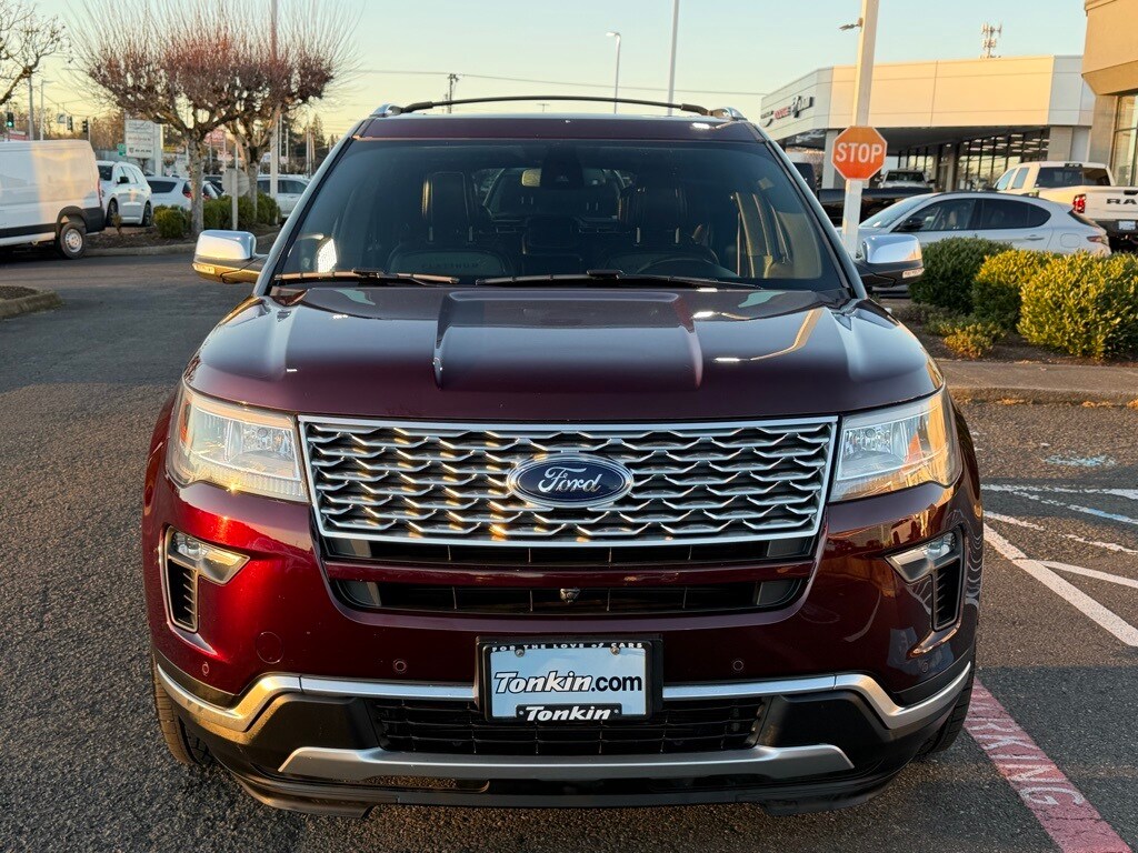 2019 Ford Explorer Platinum 3.5L V6 6-Speed Automatic with Select-Shift 4WD 4D Sport Utility Burgundy 4WD, 12 Speakers, Equipment Group 600A, Navigation System, Wheels: 20" Bright Machined Face Aluminum, 3.16 Non-Limited Slip Axle Ratio, 3rd row seats: split-bench, 4-Wheel Disc Brakes, ABS brakes, Adjustable pedals, Air Conditioning, AM/FM radio: SiriusXM, AppLink/Apple CarPlay and Android Auto, Auto High-beam Headlights, Auto tilt-away steering wheel, Auto-dimming door mirrors, Auto-dimming Rear-View mirror, Automatic temperature control, Brake assist, Bumpers: body-color, Compass, Delay-off headlights, Driver door bin, Driver vanity mirror, Dual front impact airbags, Dual front side impact airbags, Electronic Stability Control, Emergency communication system: 911 Assist, Exterior Parking Camera Rear, Four wheel independent suspension, Front anti-roll bar, Front Bucket Seats, Front Center Armrest, Front dual zone A/C, Front fog lights, Front reading lights, Fully automatic headlights, Garage door transmitter, Genuine wood dashboard insert, Genuine wood door panel insert, Heated door mirrors, Heated front seats, Heated rear seats, Heated steering wheel, Illuminated entry, Knee airbag, Lane Departure Warning System, Leather steering wheel, Low tire pressure warning, Memory seat, Nirvana Multi Contour Leather Cooled Bucket Seats, Occupant sensing airbag, Outside temperature display, Overhead airbag, Overhead console, Panic alarm, Passenger door bin, Passenger vanity mirror, Pedal memory, Power door mirrors, Power driver seat, Power Liftgate, Power moonroof, Power passenger seat, Power steering, Power windows, Premium audio system: Sony, Radio data system, Radio: Premium Sound from Sony, Rain sensing wipers, Rear air conditioning, Rear anti-roll bar, Rear reading lights, Rear seat center armrest, Rear window defroster, Rear window wiper, Remote keyless entry, Roof rack, Security system, Speed control, Speed-sensing steering, Speed-Sensitive Wipers, Split folding rear seat, Spoiler, Steering wheel memory, Steering wheel mounted audio controls, SYNC 3 Communications & Entertainment System, Tachometer, Telescoping steering wheel, Tilt steering wheel, Traction control, Trip computer, Turn signal indicator mirrors, Variably intermittent wipers, Ventilated front seats, 4WD, 12 Speakers, Equipment Group 600A, Navigation System, Wheels: 20" Bright Machined Face Aluminum. ***Call (503) 258-5800 to speak to a Sales Professional*** Come in to Ron Tonkin Chrysler Jeep Dodge Ram Fiat in Milwaukie to test drive today! DL0087.
