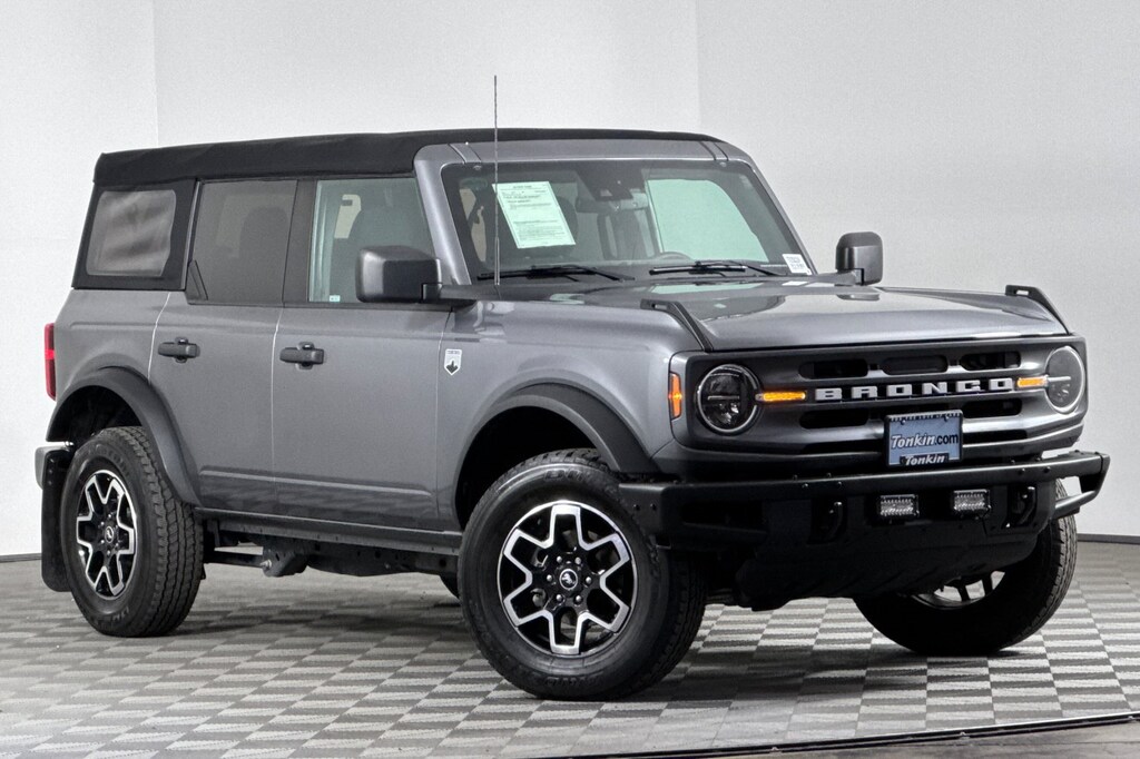 2-Door Intelligent Access w/Lock/Unlock, 4-Wheel Disc Brakes, 6 Speakers, ABS brakes, Air Conditioning, AM/FM radio: SiriusXM with 360L, Ambient Footwell Lighting, Auto-Dimming Interior Rear-View Mirror, Brake assist, Cloth Bucket Seats, Connected Navigation, Dr & Pass Illuminated Sliding Visor Vanity Mirrors, Dual front impact airbags, Dual front side impact airbags, Dual-Zone Electronic Automatic Temperature Control, Emergency communication system: 911 Assist, Enhanced Voice Recognition, Equipment Group 222A Mid Package, Exterior Parking Camera Rear, Front anti-roll bar, Front Bucket Seats, Front Row Heated Seats, Front wheel independent suspension, Heated door mirrors, Heated front seats, Illuminated entry, Integrated roll-over protection, Low tire pressure warning, Occupant sensing airbag, Outside temperature display, Overhead airbag, Panic alarm, Power Outlet - Back Side of Center Floor Console, Power steering, Power windows, Remote keyless entry, Remote Start System, Reverse Sensing System, Security system, Soft Top, Speed control, Steering wheel mounted audio controls, SYNC 4, Tachometer, Telescoping steering wheel, Tilt steering wheel, Traction control, Trip computer, Wheels: 17" Carbonized Gray-Painted Aluminum.