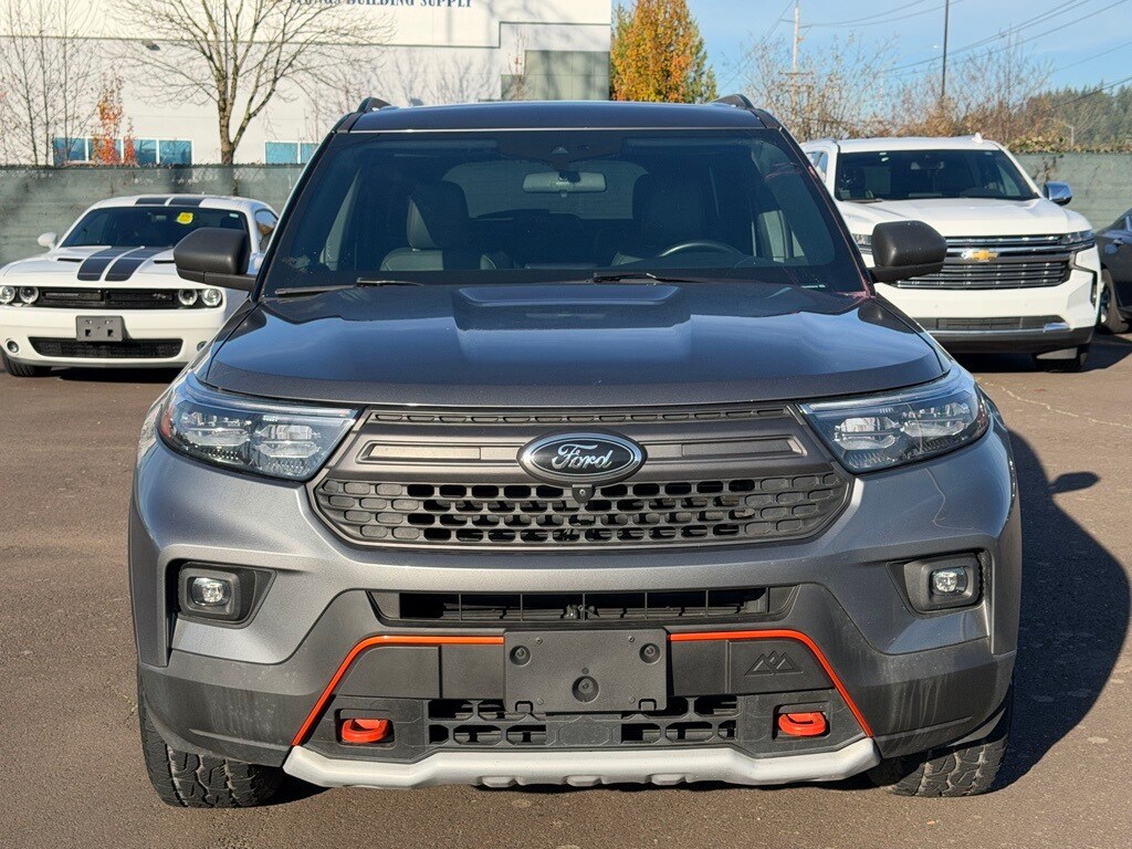 2022 Ford Explorer Timberline Carbonized Gray Metallic 2.3L EcoBoost I-4 19/22 City/Highway MPG 4WD, 1st Row Heated Seats, 3.58 Torsen Limited Slip Rear Axle, 3rd row seats: bench, 4-Wheel Disc Brakes, 6 Speakers, ABS brakes, ActiveX Seat Material Captain's Charis, Air Conditioning, Alloy wheels, AM/FM radio: SiriusXM, AM/FM Stereo, Auto High-beam Headlights, Auto Start-Stop Removal, Automatic temperature control, Brake assist, Bumpers: body-color, Cargo Area Management System, Compass, Delay-off headlights, Driver door bin, Driver vanity mirror, Dual front impact airbags, Dual front side impact airbags, Electronic Stability Control, Emergency communication system: SYNC 3 911 Assist, Equipment Group 800A, Exterior Parking Camera Rear, FordPass Connect, Four wheel independent suspension, Front anti-roll bar, Front Bucket Seats, Front Center Armrest, Front dual zone A/C, Front fog lights, Front reading lights, Fully automatic headlights, Heated door mirrors, Heated front seats, Heated rear seats, Heated steering wheel, Illuminated entry, Knee airbag, Leather steering wheel, Low tire pressure warning, Navigation System, Occupant sensing airbag, Outside temperature display, Overhead airbag, Overhead console, Panic alarm, Passenger door bin, Passenger vanity mirror, Power door mirrors, Power driver seat, Power Liftgate, Power passenger seat, Power steering, Power windows, Rear air conditioning, Rear anti-roll bar, Rear Auxiliary Controls Credit, Rear reading lights, Rear window defroster, Rear window wiper, Remote keyless entry, Roof rack: rails only, Security system, SelectShift Capability w/Paddle Shifters, Speed control, Speed-sensing steering, Speed-Sensitive Wipers, Split folding rear seat, Spoiler, Sport steering wheel, Steering wheel mounted audio controls, SYNC 3 Communications & Entertainment System, SYNC 3/Apple CarPlay/Android Auto, Tachometer, Telescoping steering wheel, Tilt steering wheel, Traction control, Trip computer, Twin Panel Moonroof, Variably intermittent wipers, Voice-Activated Touchscreen Navigation System, Wheels: 18" High Gloss Black-Painted Aluminum, 4WD. CARFAX One-Owner. Clean CARFAX. Our Best Price Up Front, No Games or Gimmicks. Our advertised price is for a retail type purchase and may not be available for Fleet or Commercial use type purchase; please call us to confirm.