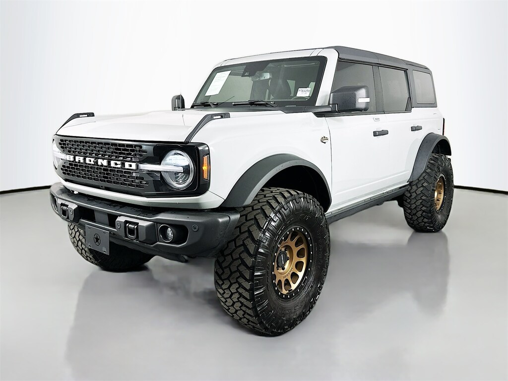 10 Speakers w/Subwoofer, 12" LCD Capacitive Touchscreen w/Swipe Capability, 2 Smart Charging USB Ports In Dashboard, 360-Degree Camera, 4-Wheel Disc Brakes, 4.7 Axle Ratio, 7 Speakers, ABS brakes, Adaptive Cruise Control, Additional Sound Deadening, Air Conditioning, AM/FM radio: SiriusXM with 360L, AM/FM Stereo, Auto High-beam Headlights, Brake assist, Carbonized Gray Molded-In-Color Hard Top, Compass, Connected Built-In Navigation, Delay-off headlights, Driver door bin, Driver vanity mirror, Dual front impact airbags, Dual front side impact airbags, Electronic Stability Control, Emergency communication system: 911 Assist, Equipment Group 354A Lux Package, Evasive Steering Assist, Exterior Parking Camera Rear, Front & Rear Floor Liners, Front anti-roll bar, Front Bucket Seats, Front Center Armrest, Front Parking Sensors, Front reading lights, Front wheel independent suspension, Full Vehicle Steel Bash Plates, Fully automatic headlights, Hard Top Sound Deadening Headliner, Heated door mirrors, Heated Steering Wheel, Illuminated entry, Information on Demand Panel, Integrated roll-over protection, Keyless Entry Keypad, Leather-Trimmed/Vinyl Bucket Seats, Low tire pressure warning, Occupant sensing airbag, Outside temperature display, Overhead airbag, Overhead console, Panic alarm, Passenger door bin, Passenger vanity mirror, Power door mirrors, Power steering, Power windows, Radio data system, Radio: B&O Sound System by Bang & Olufsen, Rear-Window Defroster & Washer, Remote keyless entry, Security system, Sideview Mirrors, SiriusXM Radio w/360L, Speed control, Split folding rear seat, Steering wheel mounted audio controls, SYNC 4, Tachometer, Telescoping steering wheel, Tilt steering wheel, Traction control, Trip computer, Universal Garage Door Opener, Variably intermittent wipers, Wireless Charging Pad, Custom Beadlock Wheels & Oversized Tires.