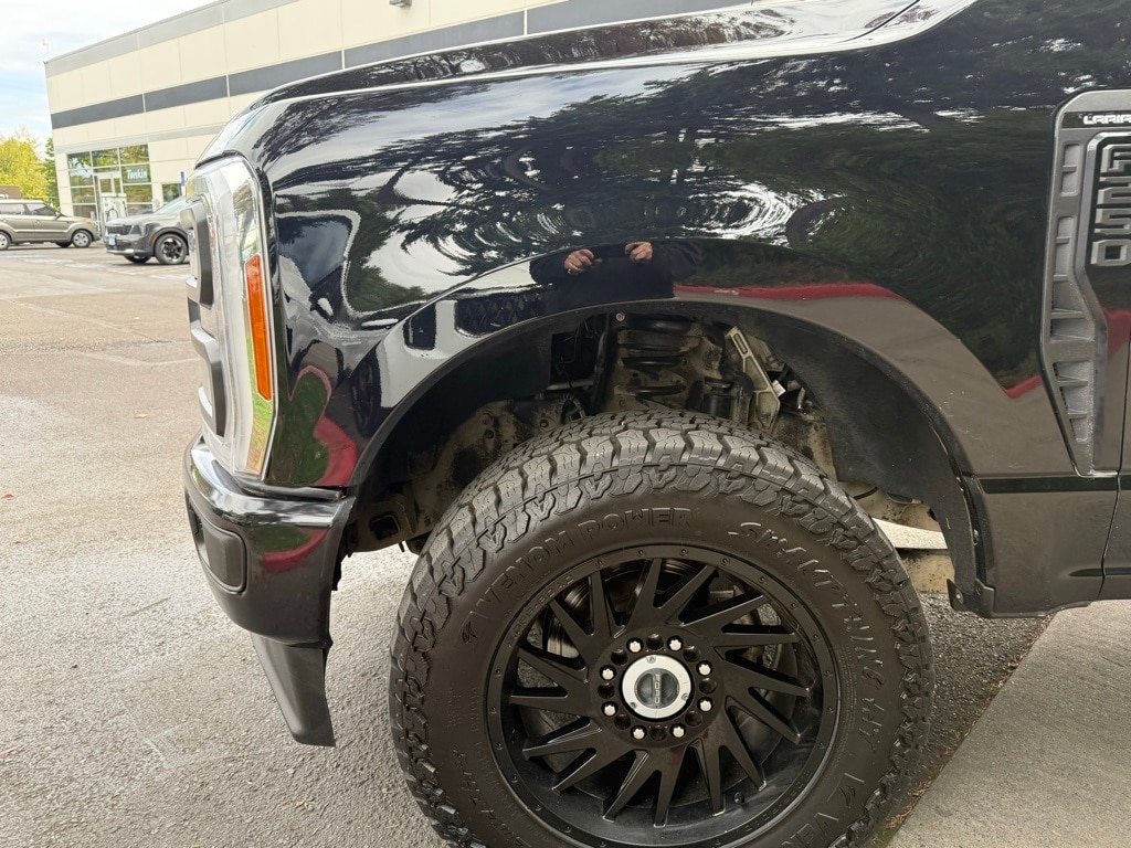 2023 Ford F-250SD Lariat Black Power Stroke 6.7L V8 DI 32V OHV Turbodiesel 34 Gallon Fuel Tank, 4-Wheel Disc Brakes, 8 Speakers, ABS brakes, Adjustable pedals, Air Conditioning, AM/FM radio: SiriusXM with 360L, Auto High-beam Headlights, Auto tilt-away steering wheel, Auto-dimming Rear-View mirror, Automatic temperature control, Black Tow Hooks, Body-Color Front & Rear Bumpers, Body-Color Mirror Caps, Brake assist, Bumpers: chrome, Chrome Exhaust Tip, Compass, Dark Painted Grille, Delay-off headlights, Driver door bin, Driver vanity mirror, Dual front impact airbags, Dual front side impact airbags, Electronic Stability Control, Electronic-Locking w/3.31 Axle Ratio, Emergency communication system: SYNC 4 911 Assist, Exterior Parking Camera Rear, F-250 >10K GVWR Package, Flow-Through Console, Front anti-roll bar, Front Bucket Seats, Front Center Armrest, Front dual zone A/C, Front fog lights, Front Leather-Trimmed 40/Console/40 Seats, Front reading lights, Fully automatic headlights, FX4 Off-Road Package, Garage door transmitter, Heated door mirrors, Heated front seats, Heated rear seats, Heated steering wheel, Hill Descent Control, Illuminated entry, Intelligent Adaptive Cruise Control w/Stop-and-Go, Lane Keeping Assist, Leather steering wheel, Low tire pressure warning, Memory seat, Navigation system: Connected Navigation, Off-Road Specifically Tuned Shock Absorbers, Order Code 608A, Outside temperature display, Overhead airbag, Overhead console, Panic alarm, Passenger door bin, Passenger vanity mirror, Pedal memory, Platform Running Boards, Power door mirrors, Power driver seat, Power passenger seat, Power steering, Power windows, Pro Trailer Backup Assist, Pro Trailer Hitch Assist, Radio: B&O Sound System by Bang & Olufsen, Rain sensing wipers, Rear reading lights, Rear seat center armrest, Rear step bumper, Rear Wheel Well Liners (Pre-Installed), Rear window defroster, Remote keyless entry, Security system, SiriusXM Radio w/360L, Speed control, Split folding rear seat, Sport 4x4 Box Side Decal, Sport Appearance Package, Steering wheel memory, Steering wheel mounted audio controls, SYNC 4 w/Enhanced Voice Recognition, Tachometer, Tailgate Step & Handle, Telescoping steering wheel, Tilt steering wheel, Tow Technology Package, Traction control, Trip computer, Turn signal indicator mirrors, Unique FX4 Off-Road Box Decal, Variably intermittent wipers, Ventilated front seats, Wheels: 18" Bright Machined & Carbonized Gray Alum.
