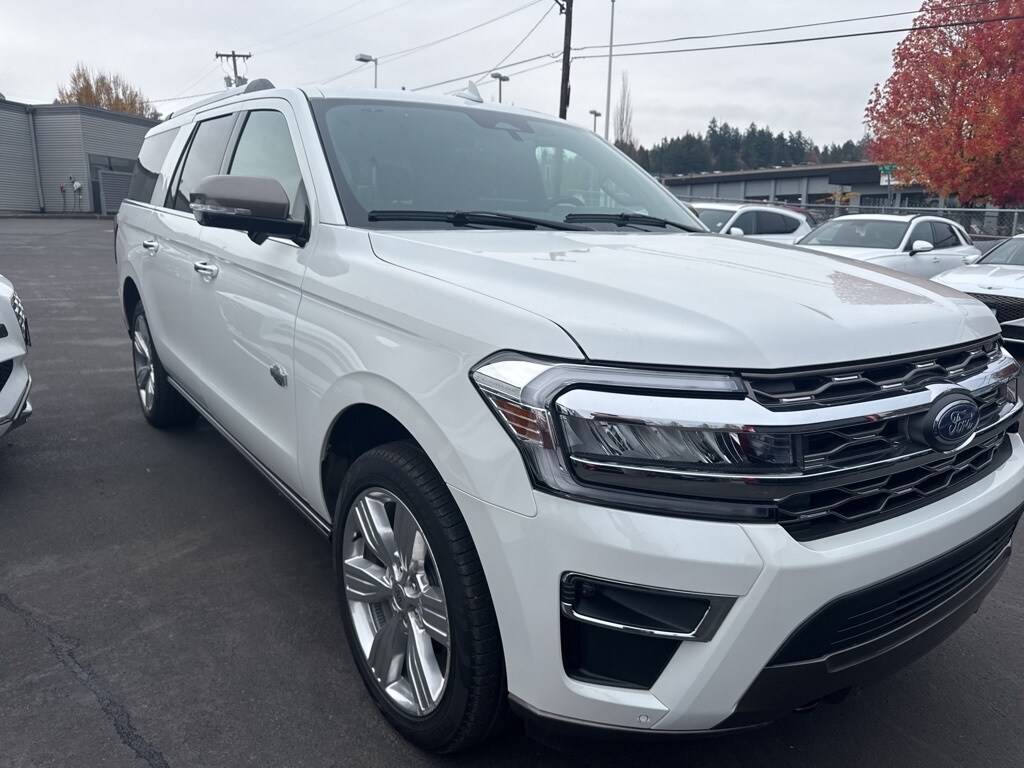 *** KING RANCH *** LOW MILES *** TWIN PANEL MOONROOF *** HEAVY DUTY TRAILER TOW PACKAGE *** 2024 Ford Expedition Max King Ranch 4D Sport Utility EcoBoost 3.5L V6 GTDi DOHC 24V Twin Turbocharged 10-Speed Automatic 4WD *** Star White Metallic Tri-Coat 26mm Engine Radiator, 3.73 Axle Ratio, 360-Degree Camera w/Trailer Reverse Guidance, Exterior Parking Camera Rear, Front Tow Hooks, Heated/Vent Prem Del Rio Lthr Fr Captain's Chairs, Heavy-Duty Trailer Tow Package, Integrated Trailer Brake Controller, Navigation system: Connected Navigation, Power Liftgate, Power moonroof, Pro Trailer Backup Assist, Radio: B&O Unleashed Sound System by Bang & Olufsen, Reclining 3rd row seat, SiriusXM w/360L, SYNC 4 w/Enhanced Voice Recognition, 22 Speakers, 4-Wheel Disc Brakes, ABS brakes, Adjustable pedals, Air Conditioning, Alloy wheels, AM/FM radio: SiriusXM with 360L, Auto High-beam Headlights, Auto-dimming door mirrors, Auto-dimming Rear-View mirror, Automatic temperature control, Brake assist, Bumpers: body-color, Compass, Delay-off headlights, Dual front impact airbags, Dual front side impact airbags, Electronic Stability Control, Emergency communication system: SYNC 4 911 Assist, Four wheel independent suspension, Front anti-roll bar, Front dual zone A/C, Front fog lights, Fully automatic headlights, Garage door transmitter, Genuine wood console insert, Genuine wood dashboard insert, Genuine wood door panel insert, Heated door mirrors, Heated steering wheel, Illuminated entry, Leather steering wheel, Low tire pressure warning, Memory seat, Occupant sensing airbag, Outside temperature display, Overhead airbag, Overhead console, Panic alarm, Pedal memory, Power door mirrors, Power driver seat, Power steering, Power windows, Radio data system, Rain sensing wipers, Rear air conditioning, Rear anti-roll bar, Rear window defroster, Rear window wiper, Remote keyless entry, Security system, Speed control, Speed-sensing steering, Speed-Sensitive Wipers, Spoiler, Steering wheel memory, Steering wheel mounted audio controls, Telescoping steering wheel, Tilt steering wheel, Traction control, Trip computer, Turn signal indicator mirrors, Variably intermittent wipers, Voltmeter, Wheels: 22" 6-Spoke Polished Aluminum, 26mm Engine Radiator, 3.73 Axle Ratio, 360-Degree Camera w/Trailer Reverse Guidance, Exterior Parking Camera Rear, Front Tow Hooks, Heated/Vent Prem Del Rio Lthr Fr Captain's Chairs, Heavy-Duty Trailer Tow Package, Integrated Trailer Brake Controller, Navigation system: Connected Navigation, Power Liftgate, Power moonroof, Pro Trailer Backup Assist, Radio: B&O Unleashed Sound System by Bang & Olufsen, Reclining 3rd row seat, SiriusXM w/360L, SYNC 4 w/Enhanced Voice Recognition.