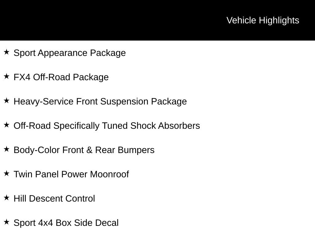 For those who demand the ultimate in off-road capability, the FX4 Off-Road Package delivers. With hill descent control, off-road-tuned shock absorbers, and skid plates, this truck is ready to tackle the toughest terrain. The Sport Appearance Package adds a touch of style with a dark-painted grille, body-color bumpers, and 20-inch dark-gray wheels.