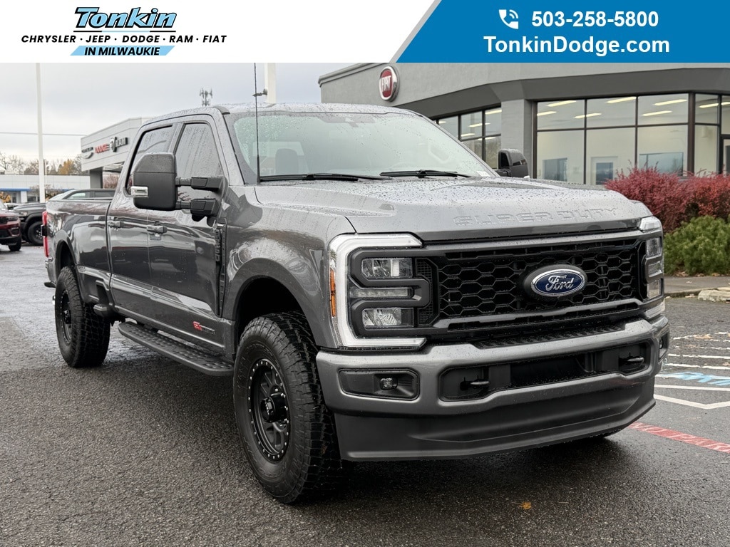 Clean CARFAX. 2024 Ford F-350SD Lariat Power Stroke 6.7L V8 DI 32V OHV Turbodiesel 10-Speed Automatic 4WD 4D Crew Cab Carbonized Gray Metallic 4WD, Black Tow Hooks, Body-Color Front & Rear Bumpers, Chrome Exhaust Tip, Dark Painted Grille, FX4 Off-Road Package, Hill Descent Control, Navigation system: Connected Navigation (includes complimentary 1-year trial), Off-Road Specifically Tuned Shock Absorbers, Order Code 618A, Platform Running Boards, Sport 4x4 Box Side Decal, Sport Appearance Package, Unique FX4 Off-Road Box Decal, Wheels: 20" Dark Carbonized Gray Painted Aluminum, 190 Amp Alternator, 4-Wheel Disc Brakes, 8 Speakers, ABS brakes, Adjustable pedals, Air Conditioning, All-Weather Floor Mats, AM/FM radio: SiriusXM with 360L, Auto High-beam Headlights, Auto tilt-away steering wheel, Auto-dimming Rear-View mirror, Automatic temperature control, Brake assist, Bumpers: chrome, Compass, Custom Fuel Wheels and Off-Road Tires, Delay-off headlights, Driver door bin, Driver vanity mirror, Dual 68 AH/65 AGM Batteries, Dual front impact airbags, Dual front side impact airbags, Electronic Stability Control, Electronic-Locking w/3.55 Axle Ratio, Emergency communication system: SYNC 4 911 Assist, Exterior Parking Camera Rear, Flow-Through Console, Front anti-roll bar, Front Bucket Seats, Front Center Armrest, Front dual zone A/C, Front fog lights, Front Leather-Trimmed 40/Console/40 Seats, Front reading lights, Front Wheel Well Liners (Pre-Installed), Fully automatic headlights, Garage door transmitter, Heated door mirrors, Heated front seats, Heated rear seats, Heated steering wheel, Illuminated entry, Leather steering wheel, Low tire pressure warning, Memory seat, Outside temperature display, Overhead airbag, Overhead console, Panic alarm, Passenger door bin, Passenger vanity mirror, Pedal memory, Power door mirrors, Power driver seat, Power passenger seat, Power steering, Power windows, Radio: B&O Sound System by Bang & Olufsen, Rain sensing wipers, Rear reading lights, Rear seat center armrest, Rear step bumper, Rear window defroster, Remote keyless entry, Security system, SiriusXM Radio w/360L, Speed control, Split folding rear seat, Steering wheel memory, Steering wheel mounted audio controls, SYNC 4 w/Enhanced Voice Recognition, Tachometer, Tailgate Step & Handle, Telescoping steering wheel, Tilt steering wheel, Traction control, Trip computer, Turn signal indicator mirrors, Variably intermittent wipers, Ventilated front seats, Wheels: 18" Bright Machined & Carbonized Gray Alum, 4WD, Black Tow Hooks, Body-Color Front & Rear Bumpers, Chrome Exhaust Tip, Dark Painted Grille, FX4 Off-Road Package, Hill Descent Control, Navigation system: Connected Navigation (includes complimentary 1-year trial), Off-Road Specifically Tuned Shock Absorbers, Order Code 618A, Platform Running Boards, Sport 4x4 Box Side Decal, Sport Appearance Package, Unique FX4 Off-Road Box Decal, Wheels: 20" Dark Carbonized Gray Painted Aluminum. ***Call (503) 258-5800 to speak to a Sales Professional*** Come in to Ron Tonkin Chrysler Jeep Dodge Ram Fiat in Milwaukie to test drive today! DL0087.