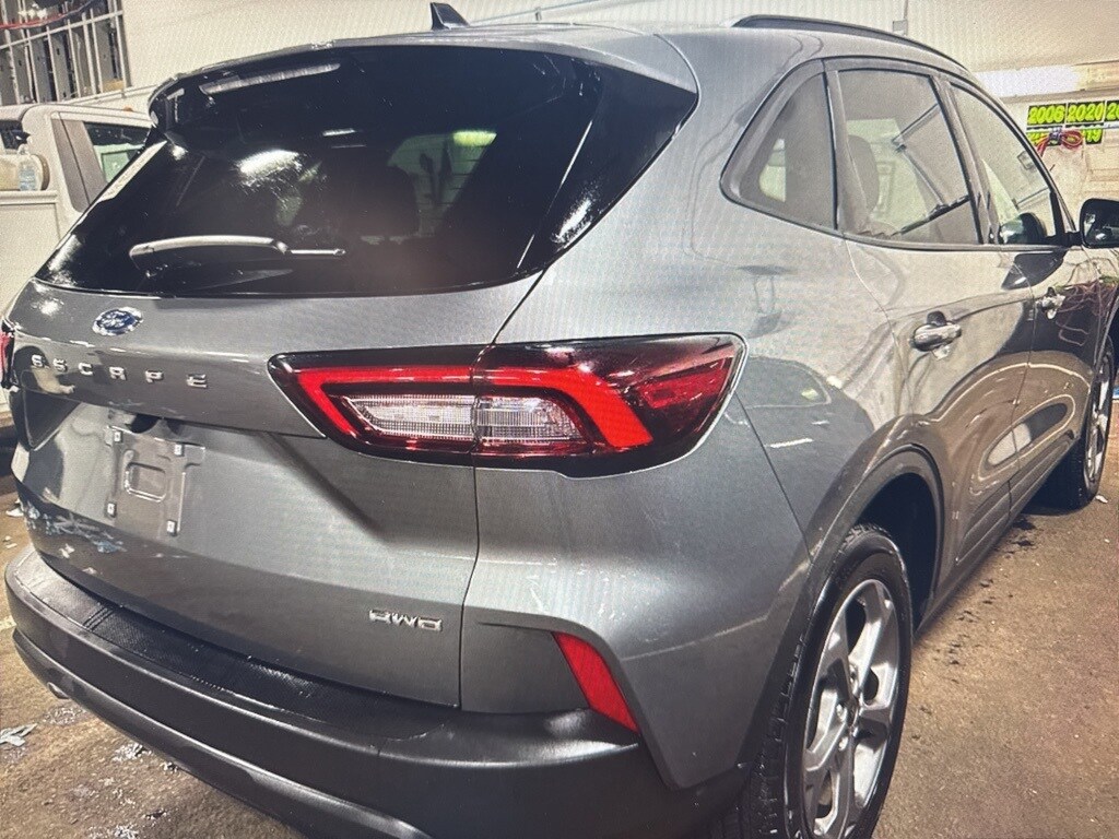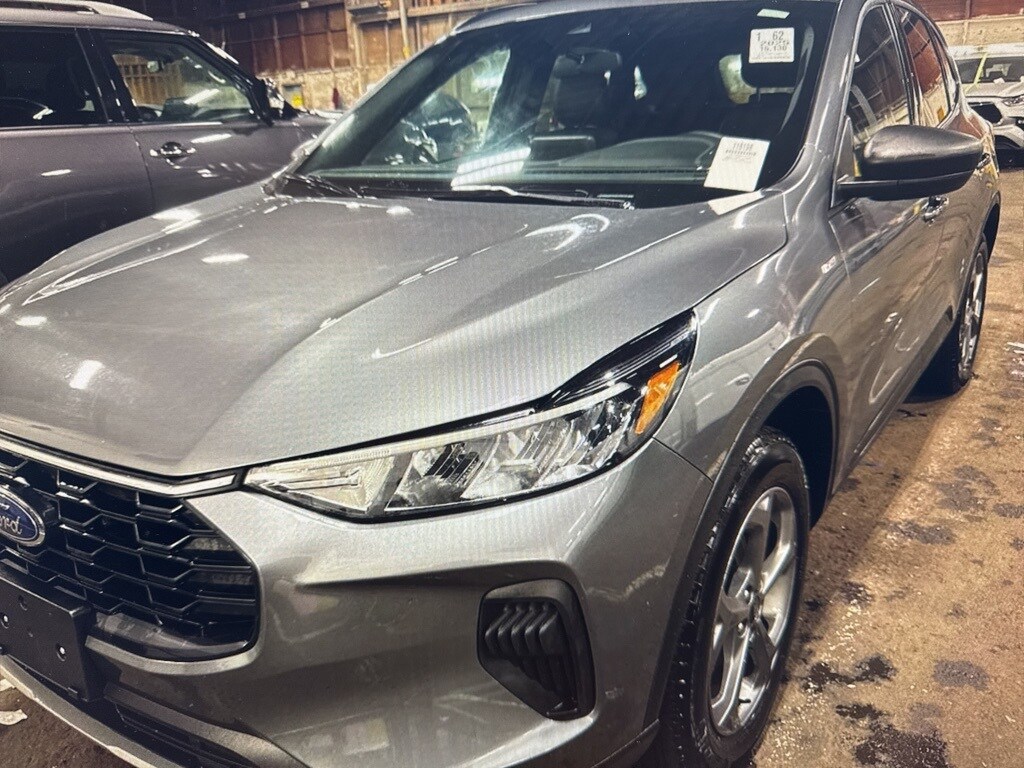 ALL-WHEEL-DRIVE *** CARFAX ONE OWNER *** 2025 Ford Escape ST-Line 4D Sport Utility 1.5L EcoBoost 8-Speed Automatic AWD Gray Metallic CARFAX One-Owner. 3.81 Axle Ratio, 4-Wheel Disc Brakes, 6 Speakers, ABS brakes, Air Conditioning, Alloy wheels, AM/FM radio: SiriusXM, AM/FM Stereo, Auto High-beam Headlights, Automatic temperature control, Brake assist, Bumpers: body-color, Compass, Delay-off headlights, Driver door bin, Driver vanity mirror, Dual front impact airbags, Dual front side impact airbags, Electronic Stability Control, Emergency communication system: SYNC 4 911 Assist, Equipment Group 300A, FordPass Connect, Four wheel independent suspension, Front anti-roll bar, Front Bucket Seats, Front Center Armrest, Front dual zone A/C, Front License Plate Bracket, Front reading lights, Fully automatic headlights, Illuminated entry, Knee airbag, Low tire pressure warning, Occupant sensing airbag, Outside temperature display, Overhead airbag, Overhead console, Panic alarm, Passenger door bin, Passenger vanity mirror, Power door mirrors, Power driver seat, Power steering, Power windows, Radio data system, Rear anti-roll bar, Rear reading lights, Rear seat center armrest, Rear window defroster, Rear window wiper, Remote keyless entry, Speed control, Speed-sensing steering, Speed-Sensitive Wipers, Split folding rear seat, Spoiler, Sport steering wheel, Steering wheel mounted audio controls, SYNC 4, Tachometer, Telescoping steering wheel, Tilt steering wheel, Traction control, Trip computer, Variably intermittent wipers, Vinyl/Cloth Front Sport Contour Bucket Seats, Wheels: 18" Rock Metallic Painted Aluminum.