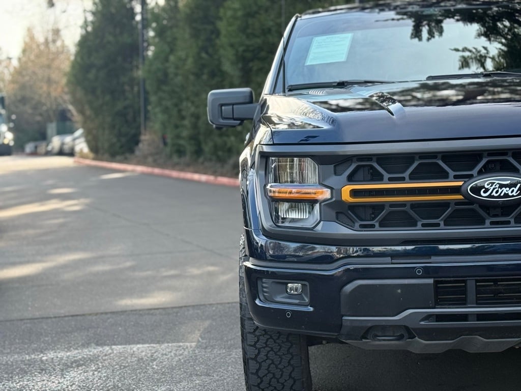 2025 Ford F-150 Tremor Blue 3.5L V6 EcoBoost 4-Wheel Disc Brakes, 8 Speakers, ABS brakes, Adjustable pedals, Air Conditioning, Alloy wheels, AM/FM radio: SiriusXM with 360L, Auto High-beam Headlights, Auto-dimming door mirrors, Auto-dimming Rear-View mirror, Automatic temperature control, Brake assist, Bumpers: body-color, Compass, Delay-off headlights, Driver door bin, Driver vanity mirror, Dual front impact airbags, Dual front side impact airbags, Electronic Locking w/3.73 Axle Ratio, Electronic Stability Control, Emergency communication system: SYNC 4 911 Assist, Front anti-roll bar, Front Bucket Seats, Front Center Armrest, Front dual zone A/C, Front fog lights, Front reading lights, Front wheel independent suspension, Fully automatic headlights, GVWR: 7,100 lbs Payload Package, Heated door mirrors, Heated front seats, Illuminated entry, Internet access capable: FordPass Connect 5G, Low tire pressure warning, Navigation system: Connected Navigation, Occupant sensing airbag, Outside temperature display, Overhead airbag, Overhead console, Panic alarm, Passenger door bin, Passenger vanity mirror, Power door mirrors, Power driver seat, Power passenger seat, Power steering, Power windows, Radio data system, Radio: B&O Sound System by Bang & Olufsen, Rear reading lights, Rear step bumper, Rear window defroster, Remote keyless entry, Security system, Speed control, Split folding rear seat, Steering wheel mounted audio controls, SYNC 4 w/Enhanced Voice Recognition, Tachometer, Telescoping steering wheel, Tilt steering wheel, Traction control, Trip computer, Turn signal indicator mirrors, Unique Sport Cloth 40/Console/40 Power Front Seat, Variably intermittent wipers, Voltmeter, Wheels: 18" Alloy w/Dark Matte Finish.