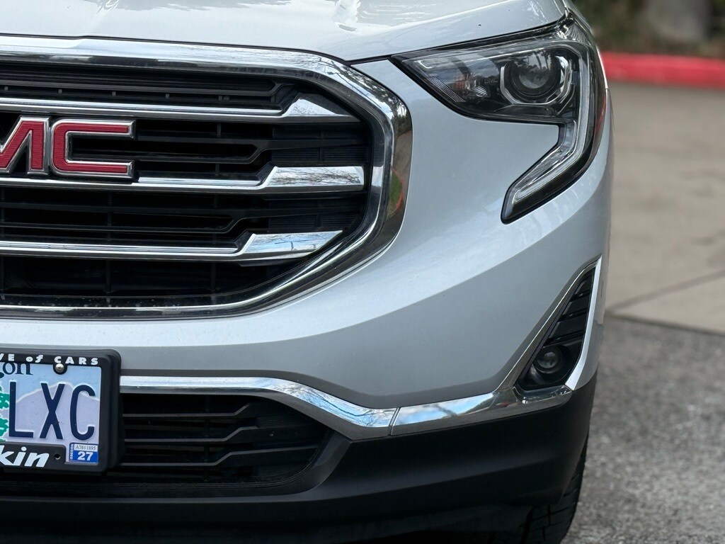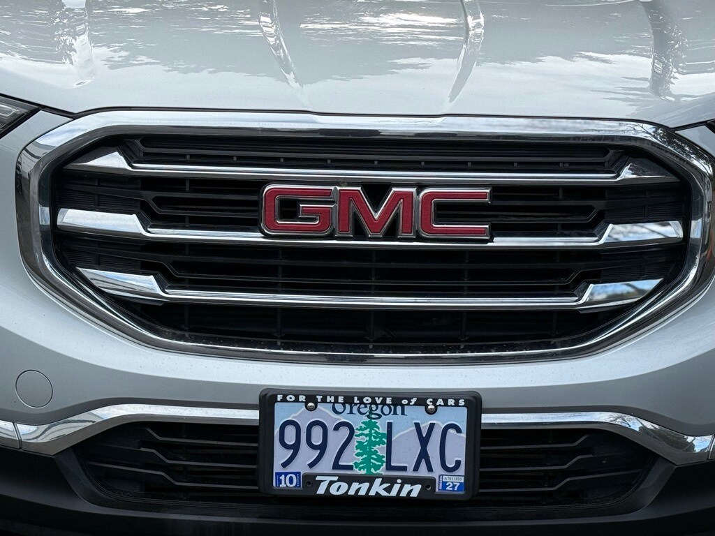 2019 GMC Terrain SLT Quicksilver Metallic 2.0L Turbocharged 2 USB Data Ports, 2 USB Data Ports w/SD Card Reader, 3.47 Axle Ratio, 4-Way Manual Front Passenger Seat, 4-Wheel Disc Brakes, 6 Speakers, 6-Speaker Audio System Feature, 8-Way Power Driver Seat Adjuster, ABS brakes, Air Conditioning, Alloy wheels, AM/FM radio: SiriusXM, Apple CarPlay/Android Auto, Auto-dimming door mirrors, Auto-dimming Rear-View mirror, Automatic temperature control, Bluetooth® For Phone, Brake assist, Bumpers: body-color, Compass, Delay-off headlights, Driver & Front Passenger Heated Seats, Driver door bin, Driver vanity mirror, Dual front impact airbags, Dual front side impact airbags, Electronic Stability Control, Emergency communication system, Exterior Parking Camera Rear, Four wheel independent suspension, Front anti-roll bar, Front Bucket Seats, Front Center Armrest, Front dual zone A/C, Front fog lights, Front reading lights, Fully automatic headlights, Heated door mirrors, Heated front seats, High-Intensity Discharge Headlights, Illuminated entry, Low tire pressure warning, Occupant sensing airbag, Outside temperature display, Overhead airbag, Overhead console, Panic alarm, Passenger door bin, Passenger vanity mirror, Perforated Leather-Appointed Seat Trim, Power door mirrors, Power Driver Lumbar Control, Power driver seat, Power steering, Power windows, Radio data system, Radio: GMC Infotainment Audio System w/8" Display, Rear anti-roll bar, Rear seat center armrest, Rear window defroster, Rear window wiper, Remote keyless entry, Roof rack: rails only, Security system, SiriusXM Radio, Speed control, Speed-sensing steering, Split folding rear seat, Spoiler, Steering wheel mounted audio controls, Tachometer, Telescoping steering wheel, Tilt steering wheel, Traction control, Trip computer, Turn signal indicator mirrors, Variably intermittent wipers, Wheels: 18" x 7" Machined Aluminum w/Gray Accents.