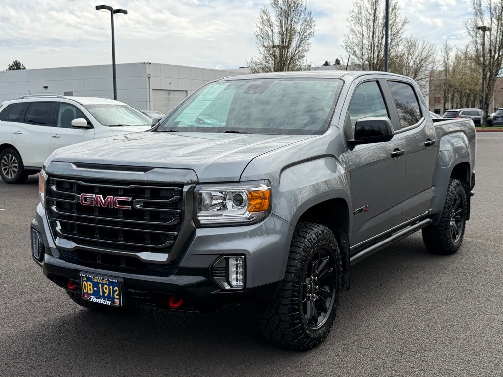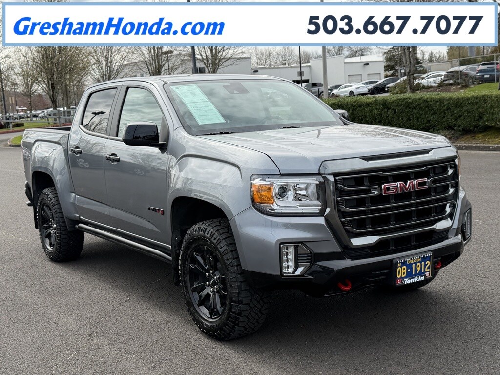 1st & 2nd Rows All-Weather Floor Liner (LPO), 2 USB Data Ports, 3.42 Rear Axle Ratio, 4-Way Power Front Passenger Seat Adjuster, 4-Wheel Disc Brakes, 6 Speakers, 6-Speaker Audio System Feature, ABS brakes, Air Conditioning, Alloy wheels, AM/FM radio: SiriusXM with 360L, Apple CarPlay/Android Auto, AT4 Off-Road Performance Edition Package, Auto-dimming Rear-View mirror, Automatic temperature control, Black AT4 Badges (LPO), Black Spray-On Bedliner w/GMC Logo, Bose Premium 7-Speaker Audio System Feature, Bumpers: body-color, Compass, Delay-off headlights, Driver 6-Way Power Seat Adjuster, Driver Alert Package, Driver door bin, Driver Instrument Information Enhanced Display, Driver vanity mirror, Dual front impact airbags, Dual front side impact airbags, Electronic Stability Control, Exterior Parking Camera Rear, Forward Collision Alert, Front anti-roll bar, Front Bucket Seats, Front Center Armrest, Front fog lights, Front License Plate Kit, Front reading lights, Front wheel independent suspension, Fully automatic headlights, GMC Black Chrome Exhaust Tip (LPO), HD Radio, Heated door mirrors, Heated Driver & Front Passenger Seats, Heated front seats, Heated Steering Wheel, Heated steering wheel, Hitch Guidance, Illuminated entry, Integrated Trailer Brake Controller, Lane Departure Warning System, Leather-Appointed Seat Trim, Low tire pressure warning, Occupant sensing airbag, Off-Road Rocker Protection (LPO), Outside temperature display, Overhead airbag, Overhead console, Panic alarm, Passenger door bin, Passenger vanity mirror, Performance Air Intake System w/PDG (LPO), Power door mirrors, Power Driver Lumbar Control Seat Adjuster, Power driver seat, Power Passenger Lumbar Control Seat Adjuster, Power passenger seat, Power steering, Power windows, Preferred Equipment Group 4SB, Premium audio system: GMC Infotainment System, Radio data system, Radio: AM/FM w/8" Diagonal Multi-Touch Display, Radio: AM/FM w/8" Diagonal Multi-Touch Display Nav, Rear reading lights, Rear seat center armrest, Rear step bumper, Rear window defroster, Remote keyless entry, Security system, SiriusXM Radio, Speed control, Speed-sensing steering, Steering wheel mounted audio controls, Suspension Leveling Kit (LPO), Tachometer, Telescoping steering wheel, Tilt steering wheel, Tow/Haul Mode, Traction control, Trip computer, Variably intermittent wipers, Wheels: 17" x 8" Dark Argent Metallic, Wheels: 17" x 8" Gloss-Black Aluminum.