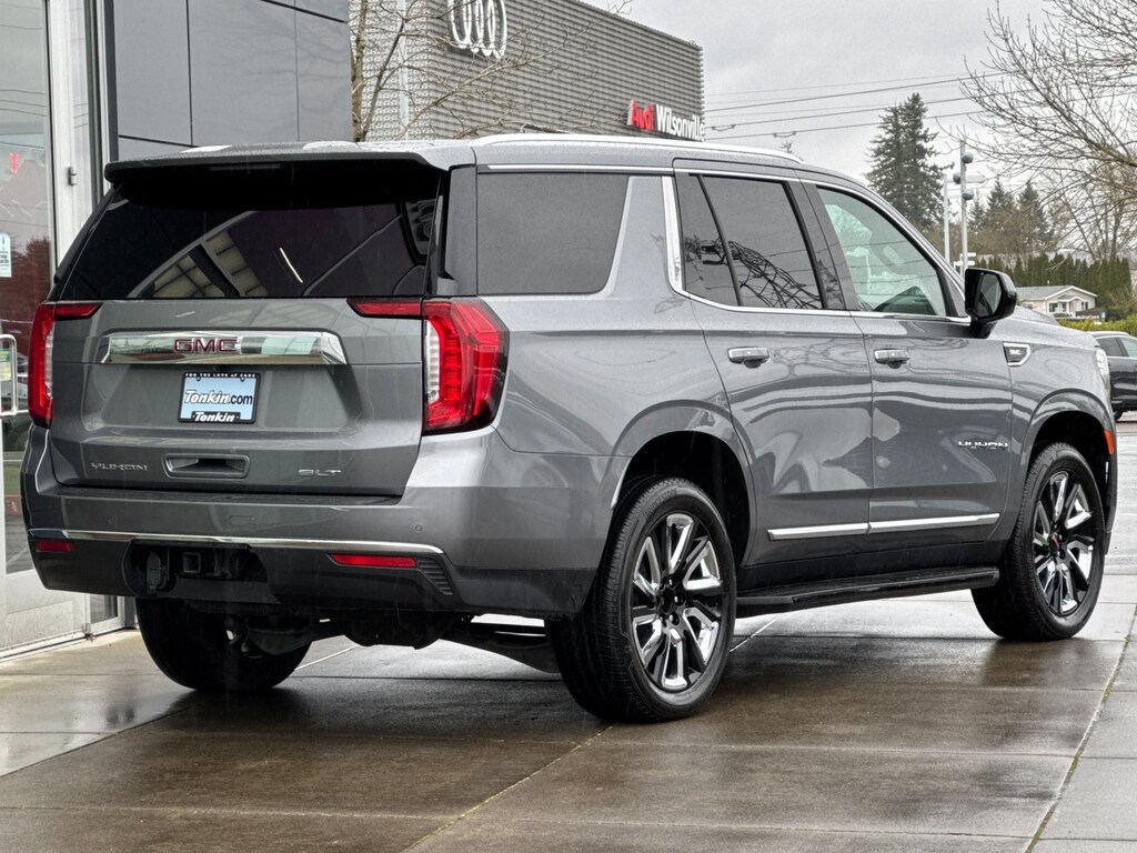 2021 GMC Yukon SLT Satin Steel Metallic EcoTec3 5.3L V8 16/20 City/Highway MPG 4WD, 12-Way Power Seat Adjusters, 2 Presets For Power Driver Seat, 3.23 Rear Axle Ratio, 3rd row seats: split-bench, 4-Wheel Disc Brakes, 9 Speakers, ABS brakes, Air Conditioning, Alloy wheels, AM/FM radio: SiriusXM with 360L, Apple CarPlay/Android Auto, Auto High-beam Headlights, Auto-dimming Rear-View mirror, Automatic Emergency Braking, Automatic temperature control, Bodyside moldings, Bose 9-Speaker Stereo Audio System Feature, Brake assist, Bright Chrome Bodyside Moldings, Bright Front & Rear Door Sill Plates, Bumpers: body-color, Cargo Convenience Package, Cargo Security Shade (LPO), Chrome Door Handles w/Body-Color Strip, Collapsible Cargo Area Organizer (LPO), Compass, Delay-off headlights, Driver door bin, Driver vanity mirror, Dual front impact airbags, Dual front side impact airbags, Dual-Pane Panoramic Power Sunroof, Electronic Stability Control, Emergency communication system: OnStar and GMC connected services capable, Following Distance Indicator, Forward Collision Alert, Four wheel independent suspension, Front & Rear Park Assist, Front anti-roll bar, Front Bucket Seats, Front Center Armrest, Front dual zone A/C, Front fog lights, Front Pedestrian Braking, Front reading lights, Fully automatic headlights, Garage door transmitter, Hands-Free Power Programmable Rear Liftgate, HD Radio, Heated & Ventilated Driver & Front Passenger Seats, Heated door mirrors, Heated Driver & Front Passenger Seats, Heated front seats, Illuminated entry, Inside Rear-View Auto-Dimming Mirror, IntelliBeam Automatic High Beam On/Off, Lane Change Alert w/Side Blind Zone Alert, Lane Keep Assist w/Lane Departure Warning, Leather steering wheel, License Plate Front Mounting Package, Low tire pressure warning, Memory seat, Occupant sensing airbag, Outside temperature display, Overhead airbag, Overhead console, Panic alarm, Passenger door bin, Passenger vanity mirror, Perforated Leather Seating Surfaces, Power door mirrors, Power driver seat, Power Liftgate, Power passenger seat, Power steering, Power windows, Preferred Equipment Group 4SA, Premium Smooth Ride Suspension, Radio: AM/FM/SiriusXM, Rain sensing wipers, Rear air conditioning, Rear anti-roll bar, Rear Cross Traffic Alert, Rear reading lights, Rear seat center armrest, Rear window defroster, Rear window wiper, Remote keyless entry, Roof rack: rails only, Safety Alert Seat, Security system, SiriusXM w/360L, Speed control, Speed-sensing steering, Split folding rear seat, Spoiler, Steering wheel mounted audio controls, Tachometer, Telescoping steering wheel, Tilt steering wheel, Traction control, Trip computer, Universal Home Remote, Variably intermittent wipers, Ventilated front seats, Vertical Cargo Net (LPO), Voltmeter, Wheels: 20" x 9" 6-Spoke Polished Aluminum, Wheels: 22" Black Gloss w/Chrome Inserts (LPO), Wheels: 22" x 9" Steel Interim (LPO), 4WD. Priced below KBB Fair Purchase Price! Odometer is 10820 miles below market average! Our Best Price Up Front, No Games or Gimmicks. Our advertised price is for a retail type purchase and may not be available for Fleet or Commercial use type purchase; please call us to confirm.