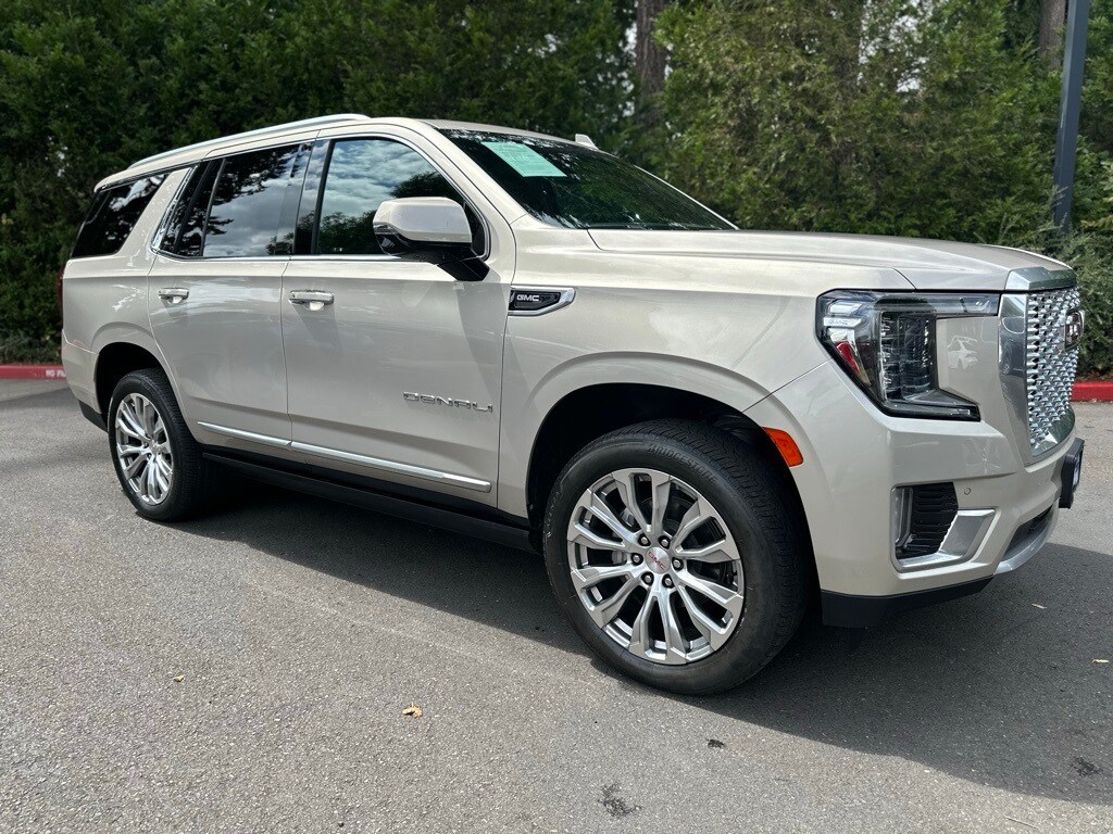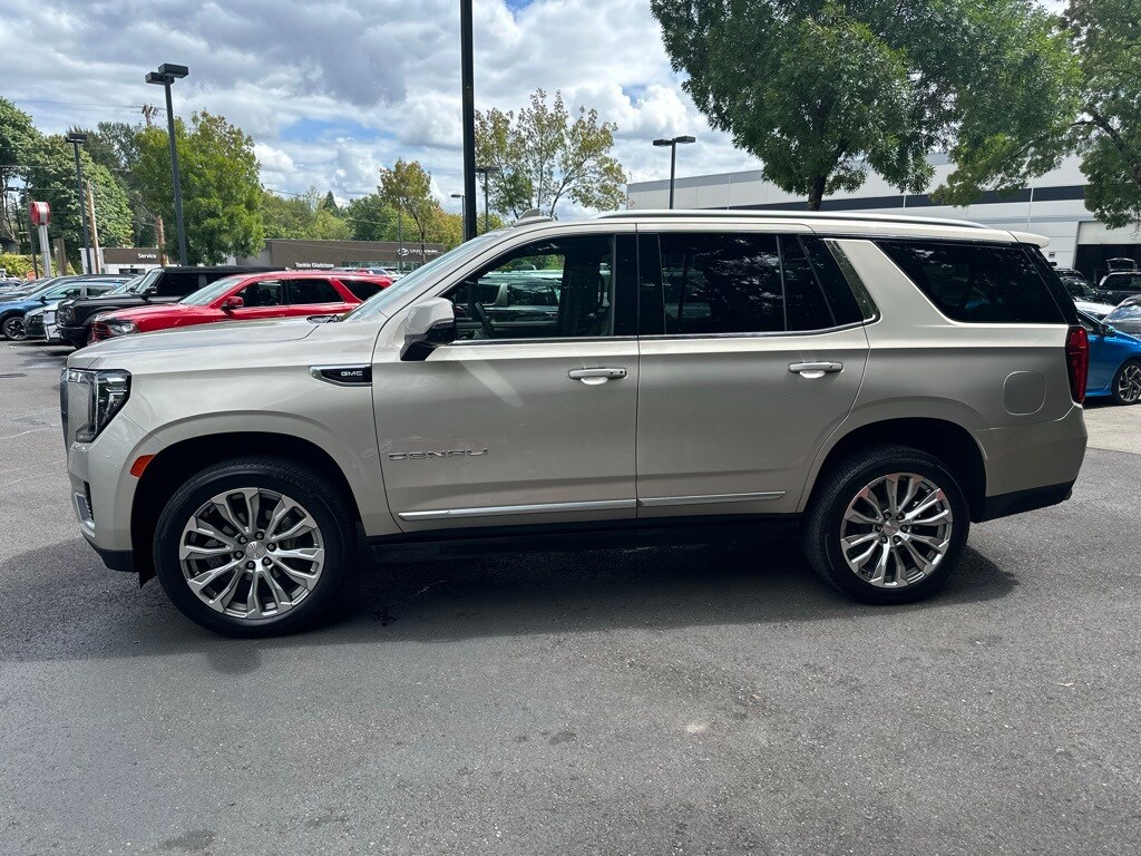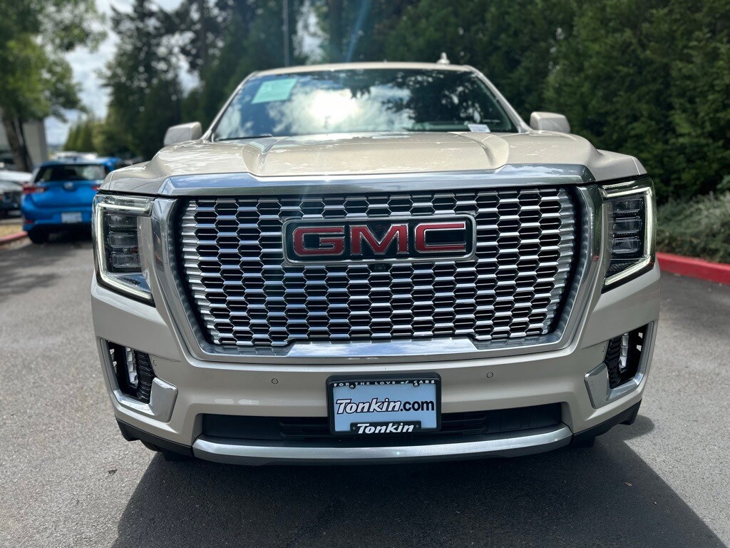 2023 GMC Yukon Denali Gold EcoTec3 6.2L V8 14 Speakers, 15" Diagonal Multi-Color Head-Up Display, 2 Presets For Outside Rearview Mirrors, 3 Years of GMC Connected Services, 3 Years of OnStar Safety & Security, 3.23 Rear Axle Ratio, 3rd Row 60/40 Power-Folding Split-Bench Seat, 3rd row seats: split-bench, 4-Wheel Disc Brakes, ABS brakes, Adaptive suspension, Air Conditioning, Alloy wheels, AM/FM radio: SiriusXM with 360L, AM/FM Stereo, Apple CarPlay/Android Auto, Auto High-beam Headlights, Auto-dimming door mirrors, Auto-dimming Rear-View mirror, Auto-leveling suspension, Automatic Emergency Braking, Automatic temperature control, Bodyside moldings, Bose 14-Speaker Surround w/CenterPoint, Brake assist, Bright Front & Rear Door Sill Plates, Bumpers: body-color, Chrome Door Handles w/Body-Color Strip, Compass, Delay-off headlights, Driver door bin, Driver vanity mirror, Dual Exhaust System, Dual front impact airbags, Dual front side impact airbags, Electronic Stability Control, Emergency communication system: OnStar and GMC connected services capable, Enhanced Automatic Emergency Braking, Floor Console, Following Distance Indicator, Forward Collision Alert, Four wheel independent suspension, Front & Rear Park Assist, Front anti-roll bar, Front Bucket Seats, Front Center Armrest, Front dual zone A/C, Front fog lights, Front Pedestrian Braking, Front reading lights, Fully automatic headlights, Galvano Bodyside Moldings, Garage door transmitter, Hands-Free Power Programmable Rear Liftgate, HD Surround Vision, Heads-Up Display, Heated & Ventilated Driver & Front Passenger Seats, Heated 2nd Row Outboard Position Seats, Heated door mirrors, Heated Driver & Front Passenger Seats, Heated front seats, Heated rear seats, Heated Steering Wheel, Heated steering wheel, Hill Descent Control, Illuminated entry, Inside Rear-View Auto-Dimming Mirror, IntelliBeam Automatic High Beam On/Off, Lane Change Alert w/Side Blind Zone Alert, Lane Keep Assist w/Lane Departure Warning, Low tire pressure warning, Magnetic Ride Control Suspension, Memory seat, Navigation System, Occupant sensing airbag, Outside Heated Power-Adjustable Mirrors, Outside temperature display, Overhead airbag, Overhead console, Panic alarm, Passenger door bin, Passenger vanity mirror, Perforated Leather Seating Surfaces, Power door mirrors, Power driver seat, Power Liftgate, Power passenger seat, Power Release 2nd Row Bucket Seats, Power steering, Power Tilt & Telescopic Steering Column, Power windows, Rain sensing wipers, Rear air conditioning, Rear anti-roll bar, Rear Cross Traffic Alert, Rear Pedestrian Alert, Rear reading lights, Rear window defroster, Rear window wiper, Remote keyless entry, Roof rack: rails only, Safety Alert Seat, Security system, SiriusXM w/360L, Speed control, Speed-sensing steering, Split folding rear seat, Spoiler, Steering wheel memory, Steering wheel mounted audio controls, Tachometer, Telescoping steering wheel, Tilt steering wheel, Traction control, Trip computer, Turn signal indicator mirrors, Universal Home Remote, Variably intermittent wipers, Ventilated front seats, Voltmeter, Wheels: 20" x 9" 6-Spoke Polished Aluminum, Wireless Charging.