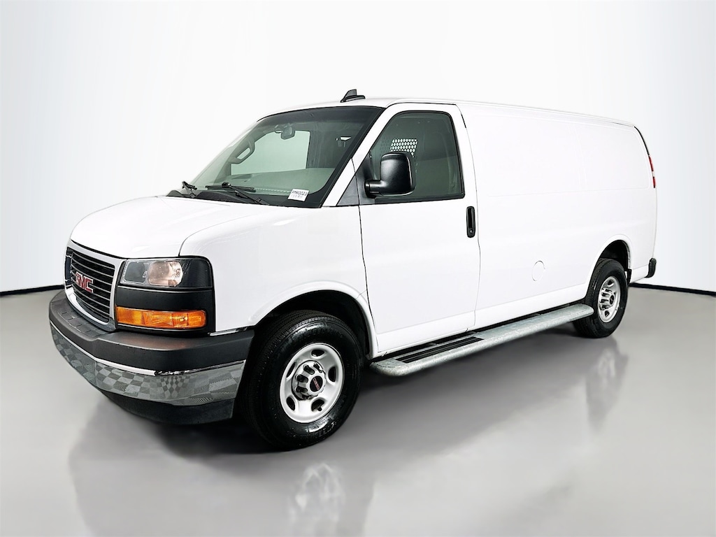 CARFAX One-Owner. Clean CARFAX. Summit White 2024 GMC Savana 2500 Work Van 3D Cargo Van 4.3L V6 8-Speed Automatic with Overdrive RWD 2 Speakers, 4-Wheel Disc Brakes, ABS brakes, Air Conditioning, AM/FM radio, AM/FM Stereo w/MP3 Player, Back Up Camera, Black Rubberized-Vinyl Front Only Floor Covering, Chrome Appearance Package, Chrome Grille, Cruise Control, Delay-off headlights, Driver & Front Passenger High-Back Bucket Seats, Driver Convenience Package, Driver door bin, Driver's Seat Mounted Armrest, Dual front impact airbags, Dual front side impact airbags, Electronic Stability Control, Emergency communication system: OnStar and GMC connected services capable, Engine Cover Console w/Swing-Out Storage Bin, Front & Rear Chrome Bumpers w/Step-Pad, Front anti-roll bar, Front Bucket Seats, Front Reclining High-Back Bucket Seats, Front wheel independent suspension, Full-Length Black Rubberized-Vinyl Floor Covering, Fully automatic headlights, Heated door mirrors, Low tire pressure warning, Occupant sensing airbag, Overhead airbag, Passenger cancellable airbag, Passenger door bin, Passenger seat mounted armrest, Power door mirrors, Power steering, Power windows, Preferred Equipment Group 1WT, Reclining Front Bucket Seats w/Inboard Armrests, Single-Zone Manual Air Conditioning, Tachometer, Tilt Steering Wheel, Traction control, Trip computer, Vinyl Seat Trim, Voltmeter.