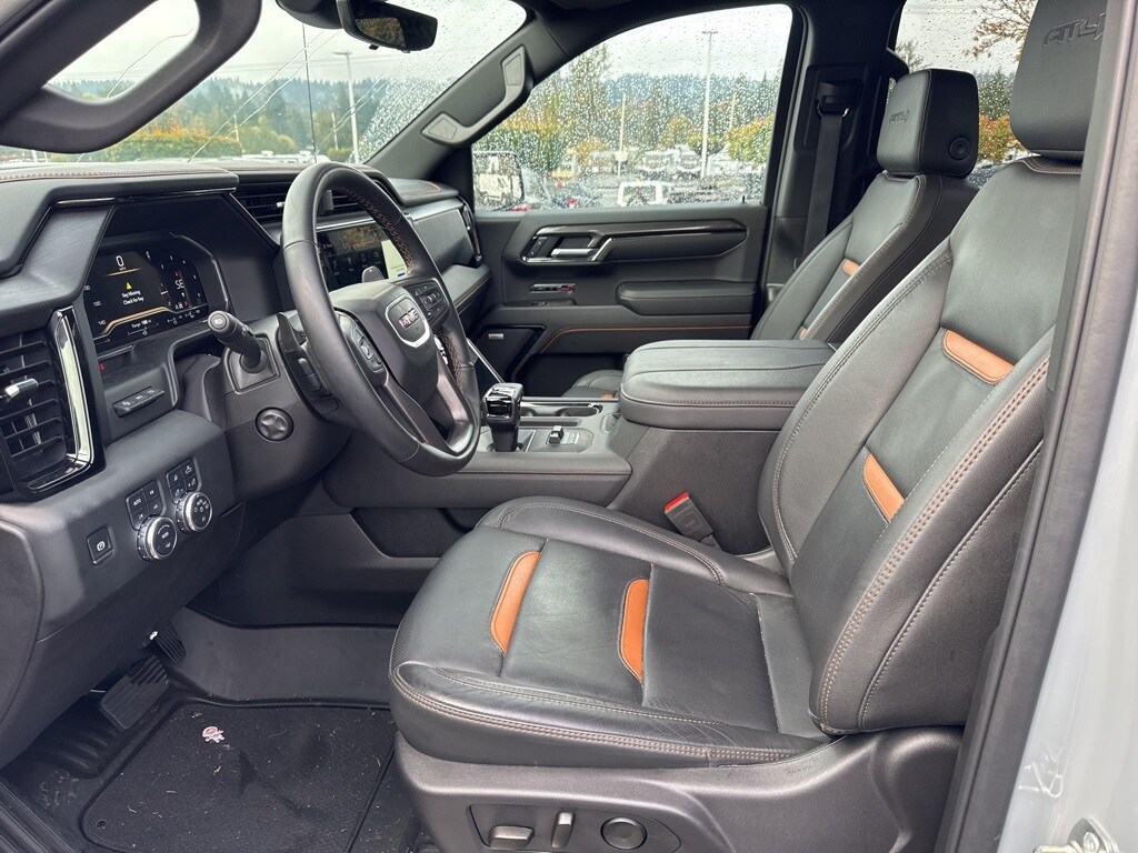 Recent Arrival! CARFAX One-Owner. Clean CARFAX. 2024 GMC Sierra 1500 AT4 EcoTec3 6.2L V8 10-Speed Automatic 4WD 4D Crew Cab Thunderstorm Gray 4WD, 120-Volt Bed Mounted Power Outlet, 120-Volt Interior Power Outlet, 2 Charge/Data USB Ports Inside Center Console, 2 Type-C Charge-Only Rear USB Ports, 2 USB Ports, 220 Amp Alternator, AT4 Preferred Package, AT4 Premium Package, Auto-Locking Rear Differential, Bed View Camera, Black Chrome Header & Grille Insert Bars, Color-Keyed Carpeting Floor Covering, Deep-Tinted Glass, Electric Rear-Window Defogger, Floor-Mounted Center Console, Front Prem Floor Liners w/Removable Carpet Insert, Front Rain-Sensing Wipers, GMC Connected Access Capable, HD Surround Vision, Heated 2nd Row Outboard Seats, Heated Driver & Front Outboard Passenger Seating, Heavy-Duty Air Filter, Hill Descent Control, Hitch Guidance, Hitch View, In-Vehicle Trailering System App, Integrated Trailer Brake Controller, Keyless Open & Start, LED Cargo Area Lighting, Multicolor 15" Diagonal Head-Up Display, Navigation System, Off-Road High Clearance Step (LPO), OnStar & GMC Connected Services Capable, Perimeter Lighting, Power Door Locks, Power Front Passenger Windows w/Express Up/Down, Power Front Windows w/Driver Express Up/Down, Power Rake & Telescoping Steering Column, Power Rear Windows w/Express Down, Power Sliding Rear Window w/Rear Defogger, Preferred Equipment Group 4SB, Premium Bose 7-Speaker Sound System, Push Button Start, Rear Camera Mirror, Rear Cross Traffic Braking, Rear Pedestrian Detection, Rear Prem Floor Liners w/Removable Carpet Insert, Rear Wheelhouse Liners, Red Recovery Hooks, Remote Vehicle Starter System, SiriusXM w/360L, Spray-On Pickup Bedliner w/AT4 Logo, Steering Wheel Audio Controls, Technology Package, Theft Deterrent System (Unauthorized Entry), Trailer Camera Provisions, Trailer Side Blind Zone Alert, Trailering Package, Ultrasonic Front & Rear Park Assist, Universal Home Remote, Ventilated Driver & Front Passenger Seats, Wi-Fi Hotspot Capable, Wireless Charging, 10-Way Power Driver Seat Adjuster w/Lumbar, 10-Way Power Passenger Seat Adjuster w/Lumbar, 170 Amp Alternator, 18" x 8.5" Machined Aluminum Wheels, 3.23 Rear Axle Ratio, 4-Wheel Disc Brakes, 7 Speakers, ABS brakes, Air Conditioning, AM/FM radio: SiriusXM with 360L, Apple CarPlay/Android Auto, Auto High-beam Headlights, Auto-dimming door mirrors, Auto-dimming Rear-View mirror, Automatic Emergency Braking, Automatic temperature control, Auxiliary External Transmission Oil Cooler, Black Sport Step (LPO), Block heater, Brake assist, Buckle to Drive, Bumpers: body-color, Compass, Custom Fuel Wheels and Off-Road Tires, Delay-off headlights, Driver door bin, Driver Memory, Driver vanity mirror, Dual Active Exhaust, Dual front impact airbags, Dual front side impact airbags, Electronic Stability Control, External Engine Oil Cooling, Following Distance Indicator, Forward Collision Alert, Front anti-roll bar, Front Bucket Seats, Front Center Armrest, Front dual zone A/C, Front fog lights, Front License Plate Kit, Front Pedestrian Braking, Front reading lights, Front wheel independent suspension, Fully automatic headlights, Heated door mirrors, Heated front seats, Heated rear seats, Heated steering wheel, Illuminated entry, IntelliBeam Automatic High Beam On/Off, Lane Keep Assist w/Lane Departure Warning, Low tire pressure warning, Memory seat, Occupant sensing airbag, Off-Road Suspension, Outside temperature display, Overhead airbag, Overhead console, Panic alarm, Passenger door bin, Passenger vanity mirror, Perforated Front Leather Seat Trim, Power door mirrors, Power driver seat, Power passenger seat, Power steering, Power Sunroof, Power windows, Premium audio system: GMC Infotainment System, Radio data system, Radio: Premium GMC Infotainment Audio System, Rain sensing wipers, Rear reading lights, Rear seat center armrest, Rear step bumper, Rear window defroster, Remote keyless entry, Safety Alert Seat, Security system, Speed control, Speed-