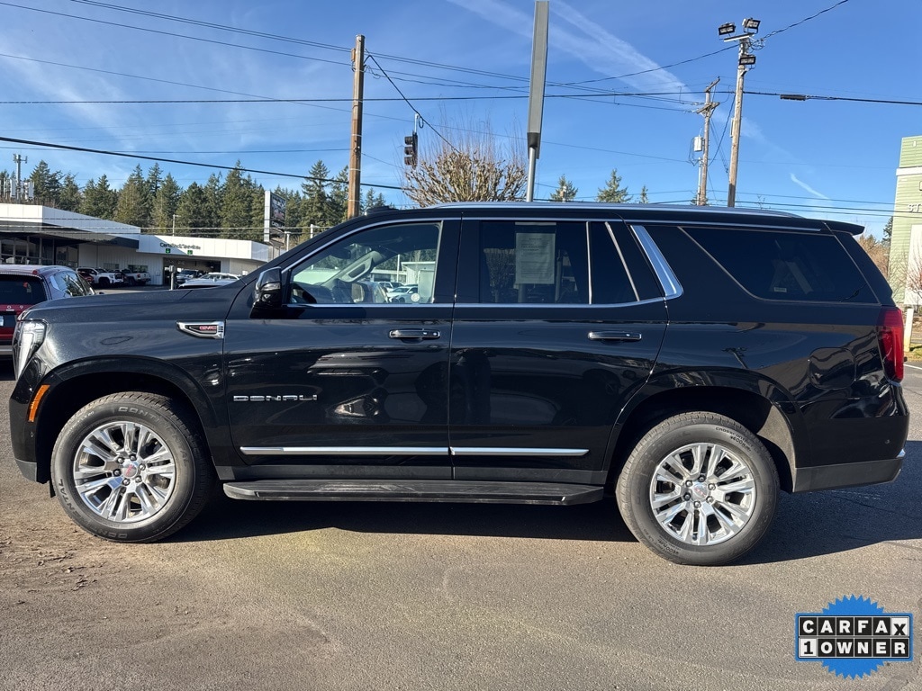 DENALI *** CARFAX ONE OWNER *** 2025 GMC Yukon Denali 4D Sport Utility EcoTec3 6.2L V8 10-Speed Automatic with Overdrive 4WD Onyx Black CARFAX One-Owner. 10 Speakers, 15" Diagonal Multi-Color Head-Up Display, 3.23 Rear Axle Ratio, 3rd row seats: split-bench, 4-Way Power Driver Lumbar Seat Adjuster, 4-Way Power Front Passenger Lumbar Seat Adjuster, 4-Wheel Disc Brakes, ABS brakes, Adaptive suspension, Air Conditioning, Alloy wheels, AM/FM radio: SiriusXM with 360L, Apple CarPlay/Android Auto, Audio memory, Auto High-beam Headlights, Auto-dimming door mirrors, Auto-dimming Rear-View mirror, Auto-leveling suspension, Automatic temperature control, AutoSense Hands-Free Power Liftgate, Bodyside moldings, Bose 10-Speaker Surround with CenterPoint, Brake assist, Bright Front and Rear Door Sill Plates, Bumpers: body-color, Compass, Delay-off headlights, Driver door bin, Driver vanity mirror, Dual Exhaust System, Dual front impact airbags, Dual front side impact airbags, Electronic Stability Control, Emergency communication system: OnStar and GMC connected services capable, Exterior Parking Camera Rear, Four wheel independent suspension, Front anti-roll bar, Front Bucket Seats, Front Center Armrest, Front dual zone A/C, Front fog lights, Front reading lights, Fully automatic headlights, Galvano Bodyside Moldings, Garage door transmitter, Heads-Up Display, Heated door mirrors, Heated Driver and Front Passenger Seats, Heated front seats, Heated rear seats, Heated steering wheel, Illuminated entry, License Plate Front Mounting Package, Low tire pressure warning, Magnetic Ride Control Suspension, Memory seat, Navigation system: GMC Connected Navigation, Occupant sensing airbag, Outside temperature display, Overhead airbag, Overhead console, Panic alarm, Passenger door bin, Passenger vanity mirror, Perforated Heather and Ventilated Driver and Front Passenger Seats, Perforated Leather Seating Surfaces, Power door mirrors, Power driver seat, Power Liftgate, Power passenger seat, Power Release 2nd Row Bucket Seats, Power steering, Power Tilt and Telescopic Steering Column, Power windows, Preferred Equipment Group 5SA, Radio: 16.8" Diagonal Premium GMC Infotainment System, Rain sensing wipers, Rear air conditioning, Rear anti-roll bar, Rear reading lights, Rear window defroster, Rear window wiper, Remote keyless entry, Security system, SiriusXM with 360L, Speed control, Speed-sensing steering, Split folding rear seat, Spoiler, Steering wheel memory, Steering wheel mounted audio controls, Tachometer, Telescoping steering wheel, Tilt steering wheel, Traction control, Trip computer, Turn signal indicator mirrors, Variably intermittent wipers, Ventilated front seats, Voltmeter, Wheels: 20" x 9" 6-Spoke Polished Aluminum.