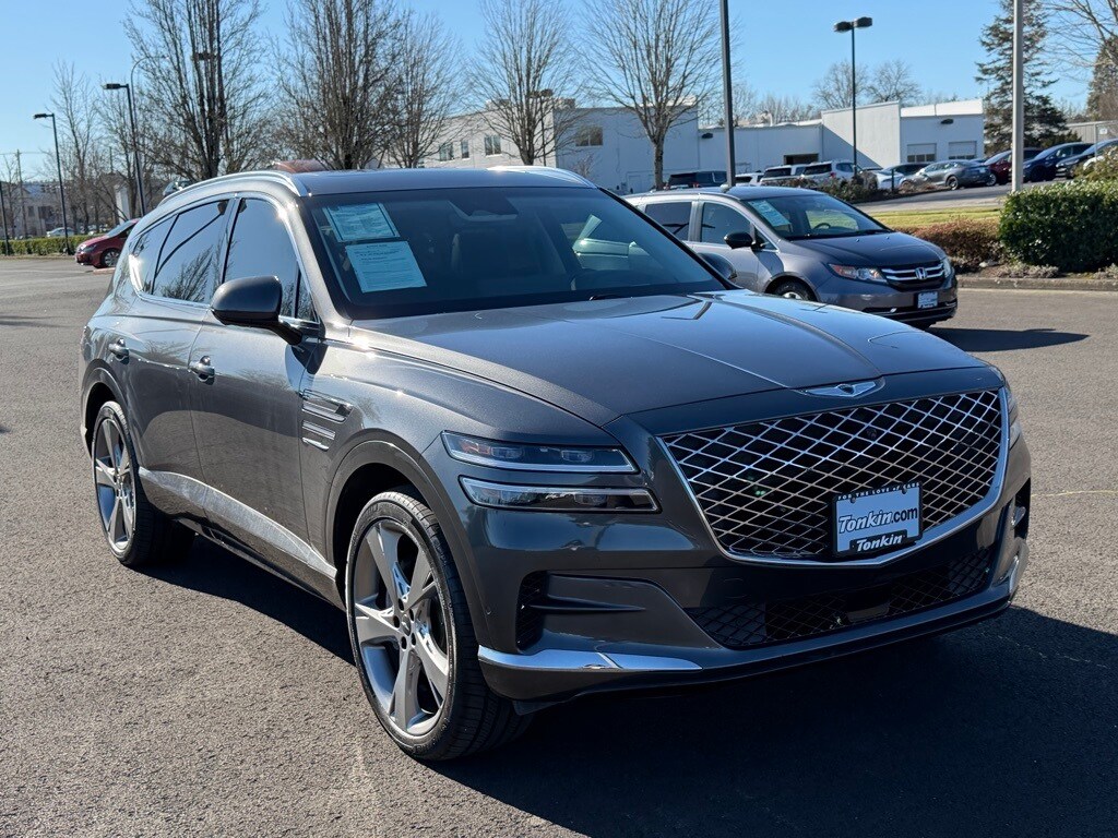 12 Speakers, 12.3" 3D Digital Cluster, 2nd Row Vanity Mirrors, 3-Zone Climate, 3.909 Axle Ratio, 4-Wheel Disc Brakes, ABS brakes, Active Motion Seat, Adaptive suspension, Advanced Package 06, Air Conditioning, Alloy wheels, AM/FM radio: SiriusXM, Android Auto & Apple CarPlay, Anti-whiplash front head restraints, Auto High-beam Headlights, Auto tilt-away steering wheel, Auto-dimming door mirrors, Auto-dimming Rear-View mirror, Automatic temperature control, Blind-Spot View Monitor, Brake assist, Bumpers: body-color, Compass, Delay-off headlights, Driver door bin, Driver vanity mirror, Dual front impact airbags, Dual front side impact airbags, Electronic Stability Control, Emergency communication system: Genesis Connected Services, Exterior Parking Camera Rear, Forward Attention Warning, Four wheel independent suspension, Front anti-roll bar, Front Bucket Seats, Front Center Armrest, Front dual zone A/C, Front reading lights, Fully automatic headlights, Garage door transmitter: HomeLink, Genuine wood console insert, Genuine wood dashboard insert, Genuine wood door panel insert, Heads-Up Display, Heated & Ventilated Front Bucket Seats, Heated 2nd Row Seats, Heated door mirrors, Heated front seats, Heated steering wheel, Illuminated entry, Knee airbag, Leather Seating Surfaces, Leather steering wheel, Leatherette Seating Surfaces, Lexicon Premium Audio w/21-Speakers, Low tire pressure warning, Memory seat, Microfiber Suede Headliner & Pillars, Nappa Leather Seating Surfaces, Navigation System, Occupant sensing airbag, Option Group 06, Outside temperature display, Overhead airbag, Overhead console, Panic alarm, Passenger door bin, Passenger vanity mirror, Power 2nd Row Seat, Power Door Closure, Power door mirrors, Power driver seat, Power Driver Seat Bolster & Cushion Extension, Power Liftgate, Power moonroof, Power passenger seat, Power Rear Side Window Shade, Power steering, Power windows, Prestige Package 07, Radio data system, Radio: AM/FM/SiriusXM/HD Premium Audio System, Rain sensing wipers, Rear air conditioning, Rear anti-roll bar, Rear Electronic Limited Slip Differential, Rear Parking Collision-Avoidance Assist, Rear reading lights, Rear seat center armrest, Rear side impact airbag, Rear window defroster, Rear window wiper, Remote keyless entry, Remote Smart Parking Assist, Road Active Noise Cancellation, Security system, Speed control, Speed-sensing steering, Speed-Sensitive Wipers, Split folding rear seat, Spoiler, Steering wheel memory, Steering wheel mounted audio controls, Surround View Monitor, Tachometer, Telescoping steering wheel, Tilt steering wheel, Traction control, Trip computer, Turn signal indicator mirrors, Variably intermittent wipers, Ventilated 2nd Row Outboard Seats, Ventilated front seats, Wheels: 20" x 8.5J Alloy, Wheels: 22" x 9.5J Alloy.
