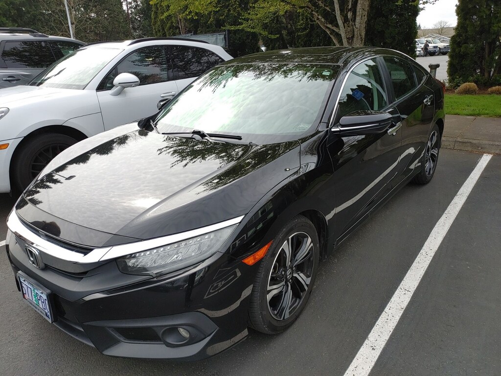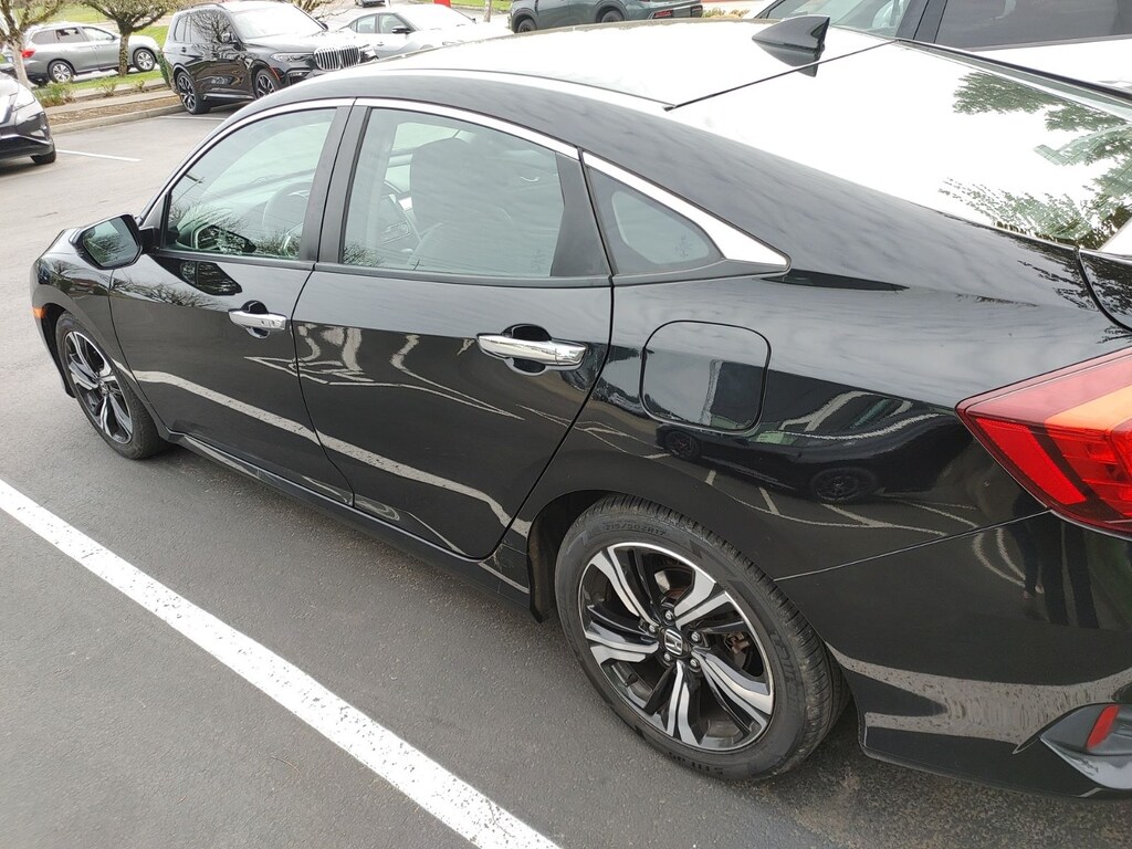 2016 Honda Civic Touring 1.5L I-4 DI DOHC Turbocharged 31/42 City/Highway MPG Leather, 10 Speakers, 17" Alloy Wheels, 4-Wheel Disc Brakes, ABS brakes, Air Conditioning, Alloy wheels, AM/FM radio: SiriusXM, Apple CarPlay/Android Auto, Auto-dimming Rear-View mirror, Automatic temperature control, Brake assist, Bumpers: body-color, Compass, Delay-off headlights, Driver door bin, Driver vanity mirror, Dual front impact airbags, Dual front side impact airbags, Electronic Stability Control, Emergency communication system: HondaLink Assist, Exterior Parking Camera Rear, Four wheel independent suspension, Front anti-roll bar, Front Bucket Seats, Front Center Armrest, Front dual zone A/C, Front fog lights, Front reading lights, Fully automatic headlights, Heated door mirrors, Heated front seats, Heated rear seats, Illuminated entry, Leather Seat Trim, Leather Shift Knob, Low tire pressure warning, Navigation System, Occupant sensing airbag, Outside temperature display, Overhead airbag, Panic alarm, Passenger door bin, Passenger vanity mirror, Power door mirrors, Power driver seat, Power moonroof, Power passenger seat, Power steering, Power windows, Radio data system, Radio: 450-Watt AM/FM/HD/SiriusXM Audio System, Rain sensing wipers, Rear anti-roll bar, Rear seat center armrest, Rear window defroster, Reclining Heated Front Bucket Seats, Remote keyless entry, Security system, Speed control, Speed-sensing steering, Speed-Sensitive Wipers, Split folding rear seat, Spoiler, Steering wheel mounted audio controls, Tachometer, Telescoping steering wheel, Tilt steering wheel, Traction control, Trip computer, Turn signal indicator mirrors, Variably intermittent wipers, Leather. Our Best Price Up Front, No Games or Gimmicks. Our advertised price is for a retail type purchase and may not be available for Fleet or Commercial use type purchase; please call us to confirm.