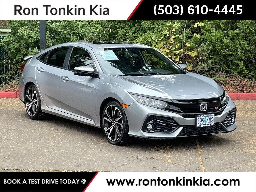 2017 Honda Civic Si 1.5L I-4 DI DOHC Turbocharged 10 Speakers, 4-Wheel Disc Brakes, ABS brakes, Air Conditioning, Alloy wheels, AM/FM radio: SiriusXM, Apple CarPlay/Android Auto, Automatic temperature control, Brake assist, Bumpers: body-color, Cloth Seat Trim, Compass, Delay-off headlights, Driver door bin, Driver vanity mirror, Dual front impact airbags, Dual front side impact airbags, Electronic Stability Control, Emergency communication system, Exterior Parking Camera Rear, Four wheel independent suspension, Front anti-roll bar, Front Bucket Seats, Front Center Armrest, Front dual zone A/C, Front fog lights, Front reading lights, Fully automatic headlights, Heated door mirrors, Heated front seats, Illuminated entry, Leather Shift Knob, Low tire pressure warning, Occupant sensing airbag, Outside temperature display, Overhead airbag, Panic alarm, Passenger door bin, Passenger vanity mirror, Power door mirrors, Power moonroof, Power steering, Power windows, Radio data system, Radio: 450-Watt AM/FM/HD/SiriusXM Audio System, Rear anti-roll bar, Rear seat center armrest, Rear window defroster, Reclining Heated Front Bucket Seats, Remote keyless entry, Security system, Speed control, Speed-sensing steering, Speed-Sensitive Wipers, Split folding rear seat, Spoiler, Steering wheel mounted audio controls, Tachometer, Telescoping steering wheel, Tilt steering wheel, Traction control, Trip computer, Variably intermittent wipers, Wheels: 18" Gloss Black Machine-Finished Alloy.