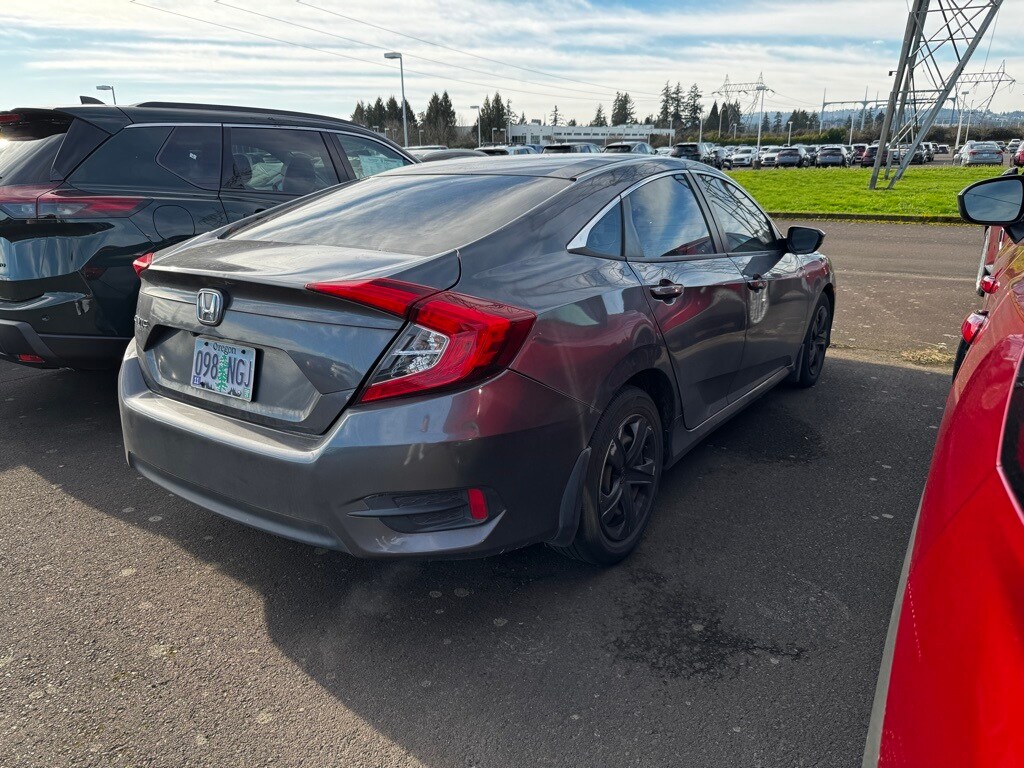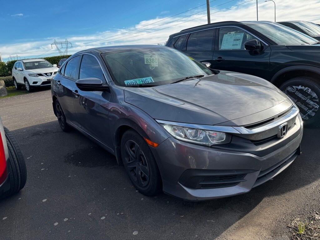2017 Honda Civic LX Gray 2.0L I4 DOHC 16V i-VTEC 31/40 City/Highway MPG Cloth, 16" Wheels w/Full Covers, 4 Speakers, 4-Wheel Disc Brakes, ABS brakes, Air Conditioning, AM/FM radio, Automatic temperature control, Brake assist, Bumpers: body-color, Cloth Seat Trim, Compass, Delay-off headlights, Driver door bin, Driver vanity mirror, Dual front impact airbags, Dual front side impact airbags, Electronic Stability Control, Exterior Parking Camera Rear, Four wheel independent suspension, Front anti-roll bar, Front Bucket Seats, Front Center Armrest, Front reading lights, Fully automatic headlights, Illuminated entry, Low tire pressure warning, Occupant sensing airbag, Outside temperature display, Overhead airbag, Panic alarm, Passenger door bin, Passenger vanity mirror, Power door mirrors, Power steering, Power windows, Radio data system, Radio: 160-Watt AM/FM Audio System, Rear anti-roll bar, Rear window defroster, Reclining Front Bucket Seats, Remote keyless entry, Security system, Speed control, Speed-sensing steering, Steering wheel mounted audio controls, Tachometer, Telescoping steering wheel, Tilt steering wheel, Traction control, Cloth. Odometer is 10162 miles below market average! Our Best Price Up Front, No Games or Gimmicks. Our advertised price is for a retail type purchase and may not be available for Fleet or Commercial use type purchase; please call us to confirm.