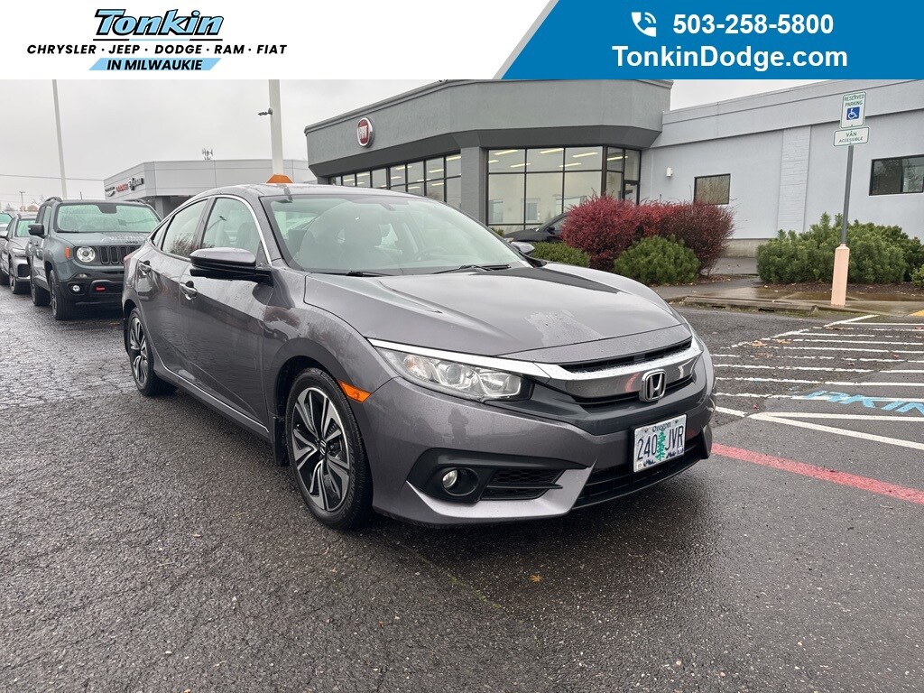 Recent Arrival! CARFAX One-Owner. 2017 Honda Civic EX-L 1.5L I-4 DI DOHC Turbocharged CVT FWD 4D Sedan Polished Metal Metallic Black Cloth, 17" Alloy Wheels, 4-Wheel Disc Brakes, 8 Speakers, ABS brakes, Air Conditioning, AM/FM radio: SiriusXM, Apple CarPlay/Android Auto, Auto-dimming Rear-View mirror, Automatic temperature control, Brake assist, Bumpers: body-color, Compass, Custom Fuel Wheels and Off-Road Tires, Delay-off headlights, Driver door bin, Driver vanity mirror, Dual front impact airbags, Dual front side impact airbags, Electronic Stability Control, Emergency communication system, Exterior Parking Camera Rear, Four wheel independent suspension, Front anti-roll bar, Front Bucket Seats, Front Center Armrest, Front dual zone A/C, Front fog lights, Front reading lights, Fully automatic headlights, Heated door mirrors, Heated front seats, Illuminated entry, Leather Seat Trim, Leather Shift Knob, Low tire pressure warning, Occupant sensing airbag, Outside temperature display, Overhead airbag, Panic alarm, Passenger door bin, Passenger vanity mirror, Power door mirrors, Power driver seat, Power moonroof, Power steering, Power windows, Radio data system, Radio: 180-Watt AM/FM/HD/SiriusXM Audio System, Rear anti-roll bar, Rear seat center armrest, Rear window defroster, Reclining Heated Front Bucket Seats, Remote keyless entry, Security system, Speed control, Speed-sensing steering, Speed-Sensitive Wipers, Split folding rear seat, Spoiler, Steering wheel mounted audio controls, Tachometer, Telescoping steering wheel, Tilt steering wheel, Traction control, Trip computer, Variably intermittent wipers, Black Cloth. ***Call (503) 258-5800 to speak to a Sales Professional*** Come in to Ron Tonkin Chrysler Jeep Dodge Ram Fiat in Milwaukie to test drive today! DL0087.