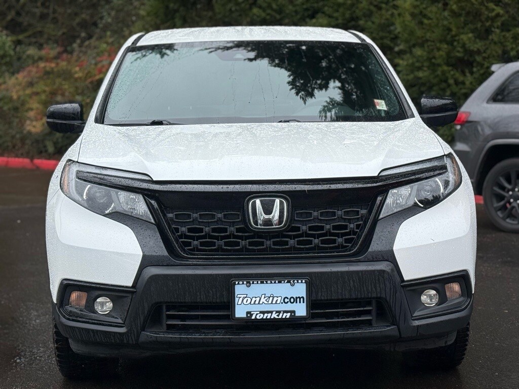 2021 Honda Passport Sport Platinum White Pearl 3.5L V6 24V SOHC i-VTEC 4-Wheel Disc Brakes, 4.334 Axle Ratio, 7 Speakers, ABS brakes, Air Conditioning, Alloy wheels, AM/FM radio, Apple CarPlay/Android Auto, Auto High-beam Headlights, Automatic temperature control, Brake assist, Bumpers: body-color, Cloth Seat Trim, Delay-off headlights, Driver door bin, Driver vanity mirror, Driver's Seat Mounted Armrest, Dual front impact airbags, Dual front side impact airbags, Electronic Stability Control, Emergency communication system, Exterior Parking Camera Rear, Forward collision: Collision Mitigation Braking System (CMBS) + FCW mitigation, Four wheel independent suspension, Front anti-roll bar, Front Bucket Seats, Front Center Armrest, Front dual zone A/C, Front fog lights, Front reading lights, Fully automatic headlights, Illuminated entry, Lane departure: Lane Keeping Assist System (LKAS) active, Low tire pressure warning, Occupant sensing airbag, Outside temperature display, Overhead airbag, Overhead console, Panic alarm, Passenger door bin, Passenger seat mounted armrest, Passenger vanity mirror, Power door mirrors, Power steering, Power windows, Radio data system, Radio: 215-Watt Audio System w/7 Speakers, Rear air conditioning, Rear anti-roll bar, Rear reading lights, Rear seat center armrest, Rear window defroster, Rear window wiper, Remote keyless entry, Security system, Speed control, Speed-sensing steering, Split folding rear seat, Spoiler, Steering wheel mounted audio controls, Tachometer, Telescoping steering wheel, Tilt steering wheel, Traction control, Trip computer, Variably intermittent wipers, Wheels: 20" Split-Spoke Gloss Black Alloy.