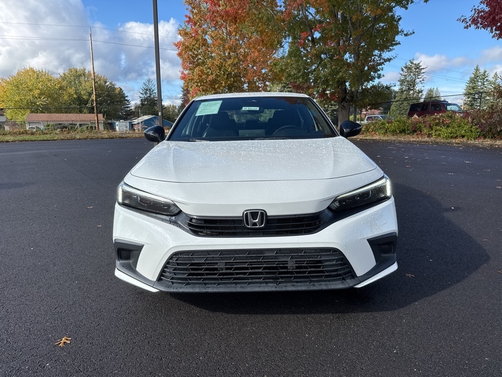 Black w/Cloth Seat Trim, 4-Wheel Disc Brakes, 8 Speakers, ABS brakes, Adaptive Cruise Control: Adaptive Cruise Control (ACC) with Low-Speed Follow, Air Conditioning, Alloy wheels, AM/FM radio, Apple CarPlay/Android Auto, Auto High-beam Headlights, Automatic temperature control, Brake assist, Bumpers: body-color, Cloth Seat Trim, Delay-off headlights, Driver door bin, Driver vanity mirror, Dual front impact airbags, Dual front side impact airbags, Electronic Stability Control, Emergency communication system: HondaLink, Exterior Parking Camera Rear, Four wheel independent suspension, Front anti-roll bar, Front Bucket Seats, Front Center Armrest, Front reading lights, Fully automatic headlights, Illuminated entry, Knee airbag, Leather Shift Knob, Leather steering wheel, Low tire pressure warning, Occupant sensing airbag, Outside temperature display, Overhead airbag, Panic alarm, Passenger door bin, Passenger vanity mirror, Power door mirrors, Power steering, Power windows, Radio data system, Radio: 180-Watt Audio System w/8 Speakers, Rear anti-roll bar, Rear side impact airbag, Rear window defroster, Remote keyless entry, Security system, Speed control, Speed-sensing steering, Steering wheel mounted audio controls, Tachometer, Telescoping steering wheel, Tilt steering wheel, Traction control, Trip computer, Wheels: 18" Gloss Black Alloy, Black w/Cloth Seat Trim. 2023 Honda Civic Sport 4D Sedan 2.0L I4 DOHC 16V i-VTEC CVT FWD Platinum White Pearl Clean CARFAX.