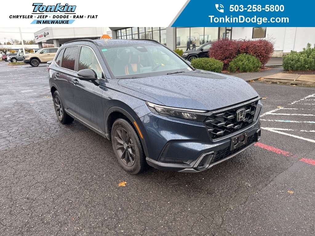 Recent Arrival! CARFAX One-Owner. Clean CARFAX. 2024 Honda CR-V Hybrid Sport 2.0L I4 DOHC 16V eCVT AWD 4D Sport Utility Still Night Pearl AWD, Power moonroof, 4-Wheel Disc Brakes, 4.438 Axle Ratio, 6 Speakers, ABS brakes, Adaptive Cruise Control: Adaptive Cruise Control (ACC) with Low-Speed Follow, Air Conditioning, Apple CarPlay/Android Auto, Auto High-beam Headlights, Automatic temperature control, Blind Spot Information (BSI) System warning, Brake assist, Bumpers: body-color, Cloth Seat Trim, Compass, Custom Fuel Wheels and Off-Road Tires, Delay-off headlights, Driver door bin, Driver vanity mirror, Dual front impact airbags, Dual front side impact airbags, Electronic Stability Control, Exterior Parking Camera Rear, Four wheel independent suspension, Front anti-roll bar, Front Bucket Seats, Front Center Armrest, Front dual zone A/C, Front reading lights, Fully automatic headlights, Heated door mirrors, Heated Front Bucket Seats, Heated front seats, Illuminated entry, Knee airbag, Leather Shift Knob, Leather steering wheel, Low tire pressure warning, Occupant sensing airbag, Outside temperature display, Overhead airbag, Overhead console, Panic alarm, Passenger door bin, Passenger vanity mirror, Power door mirrors, Power driver seat, Power steering, Power windows, Radio data system, Radio: 240-Watt AM/FM Audio System, Rear anti-roll bar, Rear reading lights, Rear seat center armrest, Rear side impact airbag, Rear window defroster, Rear window wiper, Remote keyless entry, Security system, Speed control, Speed-sensing steering, Speed-Sensitive Wipers, Split folding rear seat, Spoiler, Steering wheel mounted audio controls, Telescoping steering wheel, Tilt steering wheel, Traction control, Trip computer, Turn signal indicator mirrors, Variably intermittent wipers, Wheels: 18" Berlina Black Alloy, AWD, Power moonroof. ***Call (503) 258-5800 to speak to a Sales Professional*** Come in to Ron Tonkin Chrysler Jeep Dodge Ram Fiat in Milwaukie to test drive today! DL0087.
