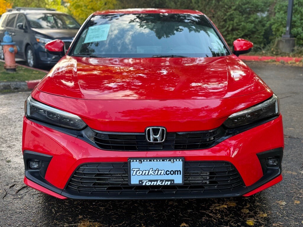 2024 Honda Civic Touring Red 1.5L I4 DOHC 16V 12 Speakers, 4-Wheel Disc Brakes, ABS brakes, Adaptive Cruise Control: Adaptive Cruise Control (ACC) with Low-Speed Follow, Air Conditioning, Alloy wheels, AM/FM radio: SiriusXM, Apple CarPlay/Android Auto, Auto High-beam Headlights, Auto-dimming Rear-View mirror, Automatic temperature control, Blind Spot Information (BSI) System warning, Bose Premium Audio System, Brake assist, Bumpers: body-color, Compass, Delay-off headlights, Driver door bin, Driver vanity mirror, Dual front impact airbags, Dual front side impact airbags, Electronic Stability Control, Emergency communication system: HondaLink, Exterior Parking Camera Rear, Four wheel independent suspension, Front anti-roll bar, Front Bucket Seats, Front Center Armrest, Front dual zone A/C, Front fog lights, Front reading lights, Fully automatic headlights, Garage door transmitter: HomeLink, Heated door mirrors, Heated Front Bucket Seats, Heated front seats, Illuminated entry, Knee airbag, Leather Shift Knob, Leather steering wheel, Leather-Trimmed Seating Surfaces, Low tire pressure warning, Navigation system: Honda Satellite-Linked Navigation System, Occupant sensing airbag, Outside temperature display, Overhead airbag, Overhead console, Panic alarm, Passenger door bin, Passenger vanity mirror, Power door mirrors, Power driver seat, Power moonroof, Power passenger seat, Power steering, Power windows, Radio data system, Rain sensing wipers, Rear anti-roll bar, Rear seat center armrest, Rear side impact airbag, Rear window defroster, Remote keyless entry, Security system, Speed control, Speed-sensing steering, Split folding rear seat, Steering wheel mounted audio controls, Tachometer, Telescoping steering wheel, Tilt steering wheel, Traction control, Trip computer, Turn signal indicator mirrors, Variably intermittent wipers, Wheels: 18" Alloy w/Gloss Shark Gray Inserts.