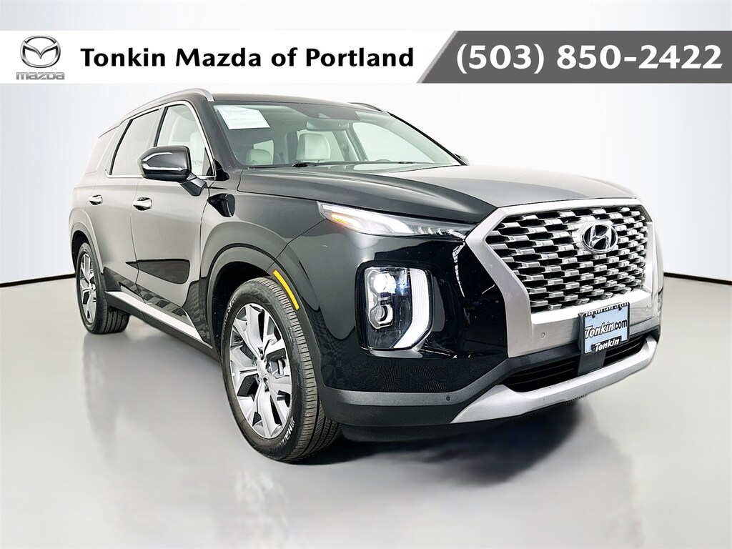 Abyss Black Pearl 2022 Hyundai Palisade SEL 4D Sport Utility V6 8-Speed Automatic with SHIFTRONIC AWD 115-Volt AC Power Outlet, 3RD Row, 3rd row seats, 3rd Row USB Outlets, 4-Wheel Disc Brakes, 6 Speakers, 7" High-Resolution Cluster Display, 8-Passenger Bench Seating P4, 8-Way Power Passenger Seat, 8P Bench Seat Package, ABS brakes, Acoustic Front Side Glass, Air Conditioning, AM/FM radio, Apple CarPlay & Android Auto, Auto High-beam Headlights, Auto Leveling Rear Suspension, Auto-dimming Rear-View mirror, Automatic temperature control, Back Up Camera, Blind Spot, BlueTooth, Brake assist, Bumpers: body-color, Cargo Block, Cargo Net, Cargo Package, Cargo Tray, Carpeted Floor Mats, Cloth Seat Trim, Convenience Package P2, Delay-off headlights, Driver door bin, Driver vanity mirror, Driver's Seat Integrated Memory System, Dual front impact airbags, Dual front side impact airbags, Electronic Stability Control, First Aid Kit, Four wheel independent suspension, Front anti-roll bar, Front Bucket Seats, Front Center Armrest, Front dual zone A/C, Front Parking Sensors, Front reading lights, Fully automatic headlights, Garage door transmitter: HomeLink, Hands-Free Smart Liftgate, Heated 2nd Row Seats, Heated door mirrors, Heated Front Bucket Seats, Heated front seats, Heated Seats, Heated Steering Wheel, Highway Drive Assist I, Illuminated entry, Keyless Entry, Knee airbag, Leather, Leather Seat Trim, LED Taillights, Low tire pressure warning, Occupant sensing airbag, Outside temperature display, Overhead airbag, Overhead console, Panic alarm, Passenger vanity mirror, Power 3rd Row Seating, Power door mirrors, Power driver seat, Power moonroof, Power steering, Power windows, Premium Dashboard & Door Armrests, Premium Package P3, Radio data system, Radio: AM/FM/MP3 Display Audio, Radio: AM/FM/MP3 Premium Audio System, Rear air conditioning, Rear anti-roll bar, Rear audio controls, Rear reading lights, Rear Side Window Sunshades, Rear window defroster, Reclining 3rd row seat, Remote keyless entry, Security system, Speed control, Speed-sensing steering, Split folding rear seat, Spoiler, Steering wheel mounted audio controls, Tachometer, Telescoping steering wheel, Tilt steering wheel, Traction control, Trip computer, Turn signal indicator mirrors, Ultrasonic Rear Occupant Alert, Wheels: 20" x 7.5J Split 5-Spoke Machined Alloy, Wireless Phone Charger.