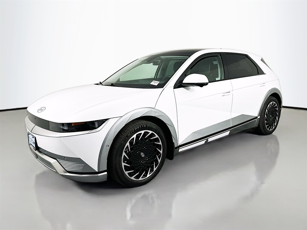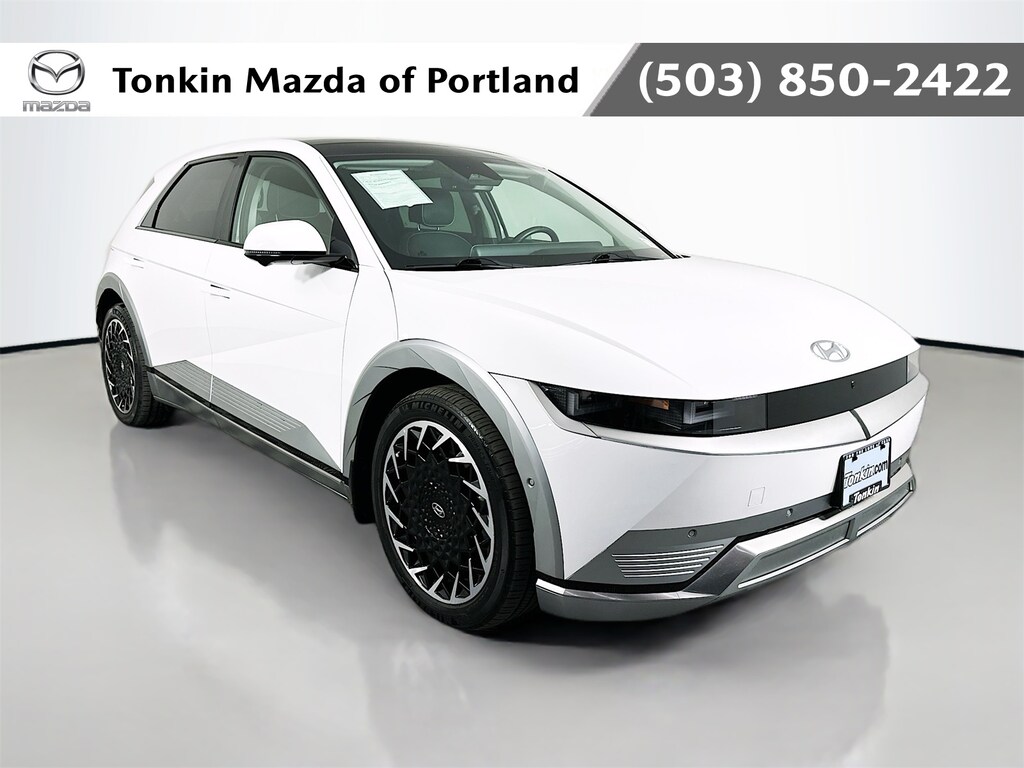 CARFAX One-Owner. Clean CARFAX. Atlas White 2023 Hyundai IONIQ 5 Limited 4D Sport Utility Electric Motor 1-Speed Automatic AWD 4-Wheel Disc Brakes, 8 Speakers, ABS brakes, Air Conditioning, AM/FM radio: SiriusXM, Apple CarPlay & Android Auto, Auto High-beam Headlights, Auto-dimming Rear-View mirror, Automatic temperature control, Back Up Camera, Backup Camera, Blind Spot, BlueTooth, Bodyside moldings, Brake assist, Bumpers: body-color, Cargo Net, Carpeted Floor Mats, Delay-off headlights, Driver door bin, Driver vanity mirror, Dual front impact airbags, Dual front side impact airbags, Electronic Stability Control, Emergency communication system: Blue Link Connected Car Service (3-year complimentary subscription), Four wheel independent suspension, Front anti-roll bar, Front Bucket Seats, Front Center Armrest w/Storage, Front dual zone A/C, Front reading lights, Fully automatic headlights, Garage door transmitter: HomeLink, H-Tex Leatherette Seating Surfaces, Heads-Up Display, Heated & Ventilated Front Bucket Seats, Heated door mirrors, Heated front seats, Heated Seats, Heated steering wheel, Illuminated entry, Keyless Entry, Leather steering wheel, Low tire pressure warning, Memory seat, Mudguards, Nav, Navigation System, Occupant sensing airbag, Option Group 01, Outside temperature display, Overhead airbag, Overhead console, Panic alarm, Passenger door bin, Passenger vanity mirror, Power door mirrors, Power driver seat, Power Liftgate, Power passenger seat, Power steering, Power windows, Radio: AM/FM/SiriusXM/HD Display Audio System, Rear anti-roll bar, Rear reading lights, Rear seat center armrest, Rear window defroster, Remote keyless entry, Security system, Speed control, Speed-sensing steering, Split folding rear seat, Spoiler, Steering wheel mounted audio controls, Telescoping steering wheel, Tilt steering wheel, Traction control, Trip computer, Turn signal indicator mirrors, Up Seatback Cargo Mat, Ventilated front seats.
