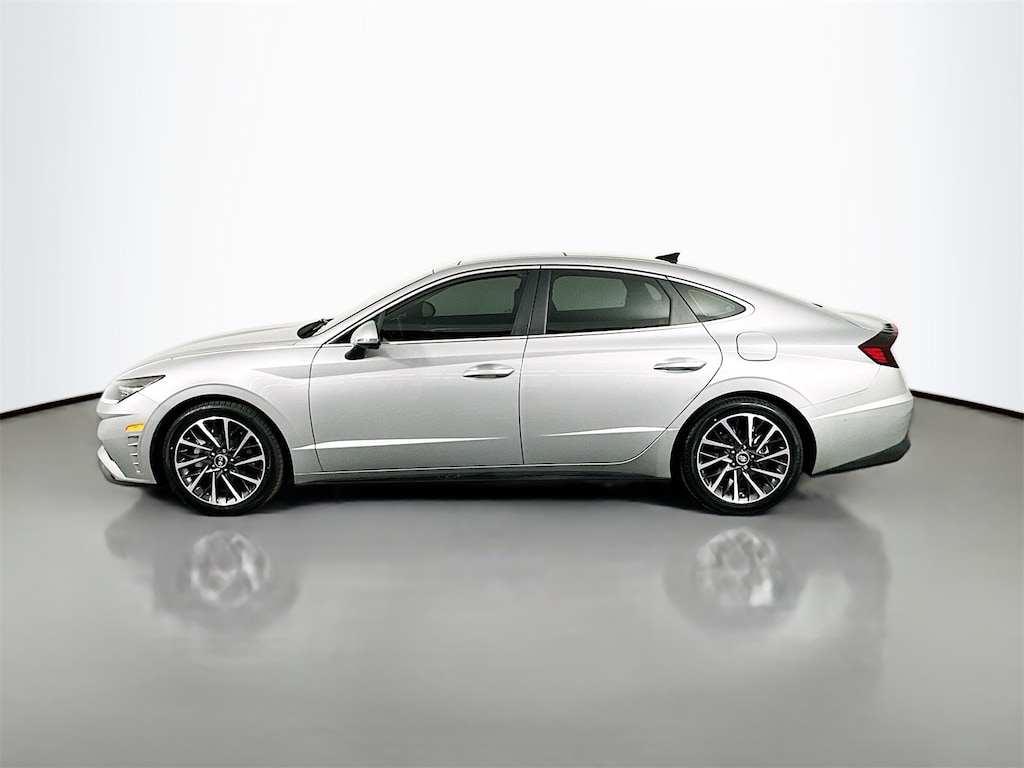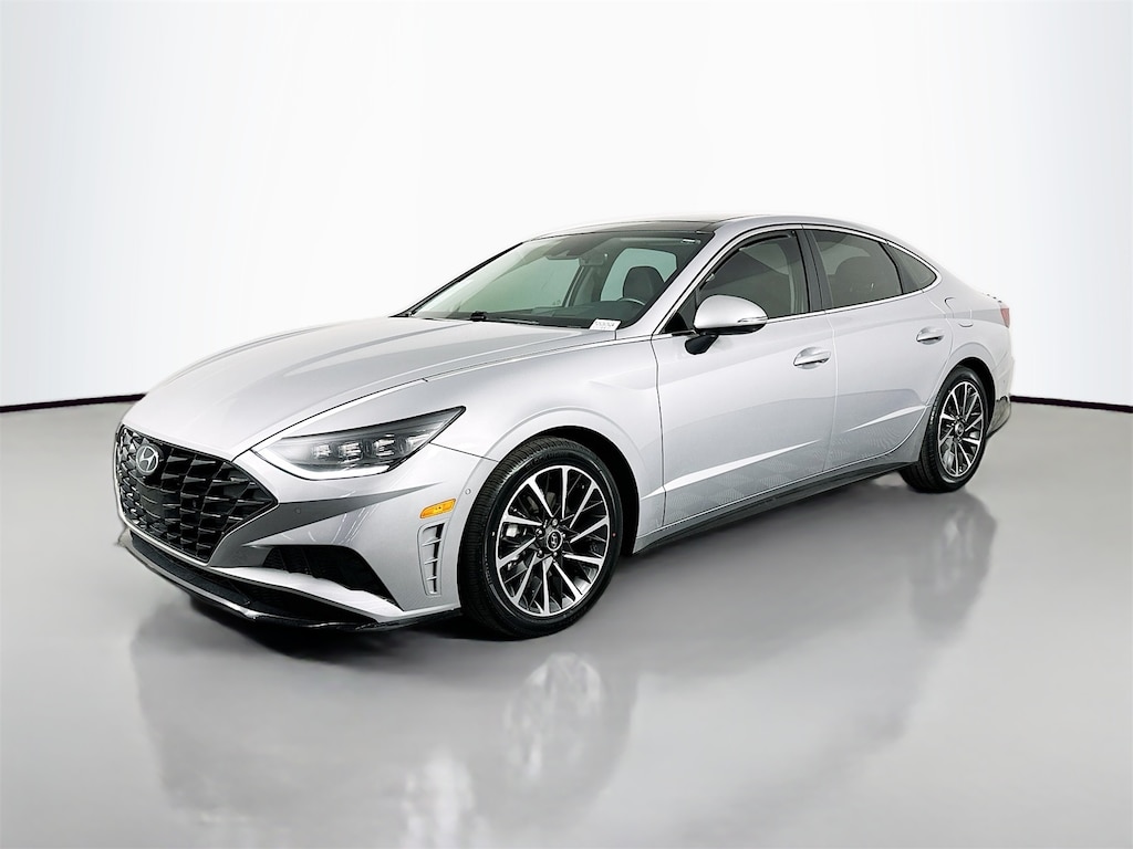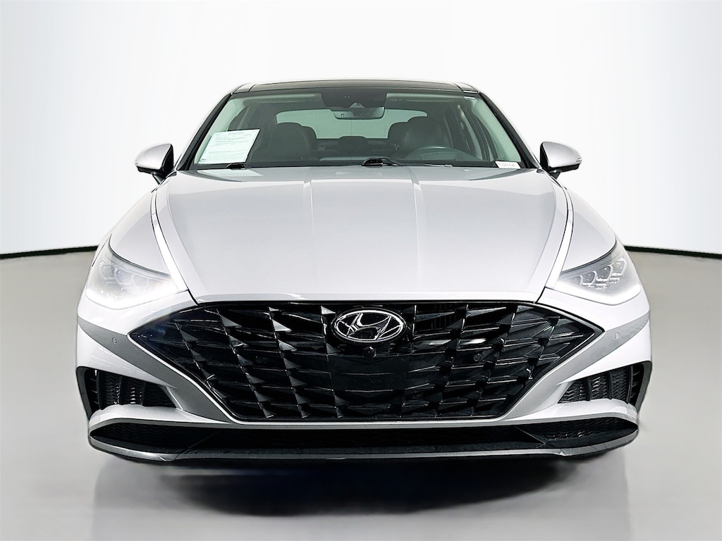 CARFAX One-Owner. Curated Silver 2023 Hyundai Sonata Limited 4D Sedan I4 8-Speed Automatic with SHIFTRONIC FWD Black Leather, 12 Speakers, 4-Wheel Disc Brakes, ABS brakes, Air Conditioning, AM/FM radio: SiriusXM, Apple CarPlay & Android Auto, Auto High-beam Headlights, Auto-dimming Rear-View mirror, Automatic temperature control, Back Up Camera, Backup Camera, Blind Spot, BlueTooth, Brake assist, Bumpers: body-color, Carpeted Floor Mats, Delay-off headlights, Driver door bin, Driver vanity mirror, Dual front impact airbags, Dual front side impact airbags, Electronic Stability Control, Emergency communication system: Blue Link Connected Car Service (3-year complimentary subscription), Four wheel independent suspension, Front anti-roll bar, Front Bucket Seats, Front Center Armrest, Front dual zone A/C, Front reading lights, Fully automatic headlights, Garage door transmitter: HomeLink, Heads-Up Display, Heated door mirrors, Heated front seats, Heated Seats, Heated steering wheel, Heated/Ventilated Front Bucket Seats, Illuminated entry, Keyless Entry, Knee airbag, Leather, Leather Seating Surfaces, Leather steering wheel, Low tire pressure warning, Memory seat, Navigation System, Occupant sensing airbag, Option Group 01, Outside temperature display, Overhead airbag, Overhead console, Panic alarm, Panorama Roof, Passenger vanity mirror, Power door mirrors, Power driver seat, Power moonroof, Power steering, Power windows, Radio data system, Radio: AM/FM/MP3/HD/SiriusXM Display Audio w/Nav, Rear anti-roll bar, Rear Bumper Applique, Rear seat center armrest, Rear side impact airbag, Rear window defroster, Remote keyless entry, Security system, Speed control, Speed-sensing steering, Steering wheel mounted audio controls, Tachometer, Telescoping steering wheel, Tilt steering wheel, Traction control, Trip computer, Turn signal indicator mirrors.