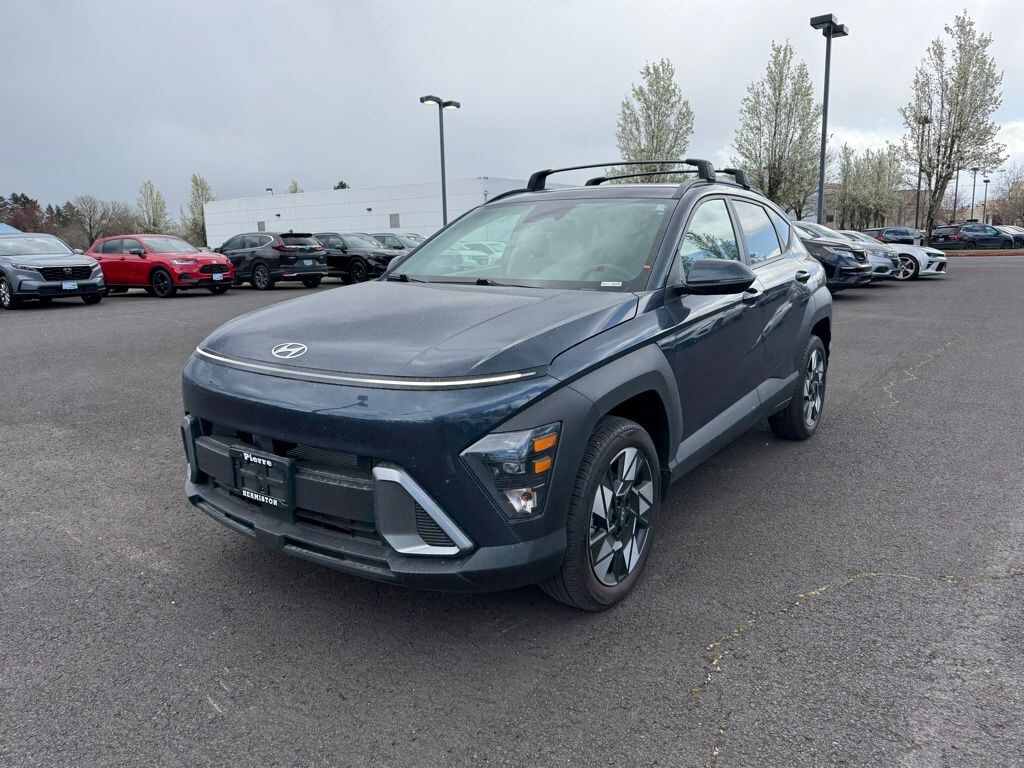 4-Wheel Disc Brakes, 6 Speakers, ABS brakes, Air Conditioning, Alloy wheels, AM/FM radio: SiriusXM, Apple CarPlay & Android Auto, Auto High-beam Headlights, Auto-dimming Rear-View mirror, Automatic temperature control, Brake assist, Bumpers: body-color, Cargo Net, Cargo Tray, Carpeted Floor Mats, Cloth Seat Trim, Column-Mounted Shift-By-Wire, Cross Rails, Delay-off headlights, Driver door bin, Driver vanity mirror, Dual front impact airbags, Dual front side impact airbags, Electronic Stability Control, Emergency communication system: Bluelink+, Exterior Parking Camera Rear, Four wheel independent suspension, Front anti-roll bar, Front Bucket Seats, Front Center Armrest, Front dual zone A/C, Front reading lights, Fully automatic headlights, Heated door mirrors, Heated Front Bucket Seats, Heated front seats, Illuminated entry, Leather steering wheel, Low tire pressure warning, Mud Guards, Navigation System, Occupant sensing airbag, Option Group 01, Outside temperature display, Overhead airbag, Panic alarm, Passenger door bin, Passenger vanity mirror, Power door mirrors, Power driver seat, Power steering, Power windows, Radio: AM/FM/HD Radio/SiriusXM w/Navigation, Rear anti-roll bar, Rear seat center armrest, Rear window defroster, Rear window wiper, Remote keyless entry, Security system, Speed control, Speed-sensing steering, Split folding rear seat, Spoiler, Steering wheel mounted audio controls, Tachometer, Telescoping steering wheel, Tilt steering wheel, Traction control, Trip computer, Turn signal indicator mirrors, Variably intermittent wipers, Wheels: 18" x 7.0J Glossy Black Alloy.