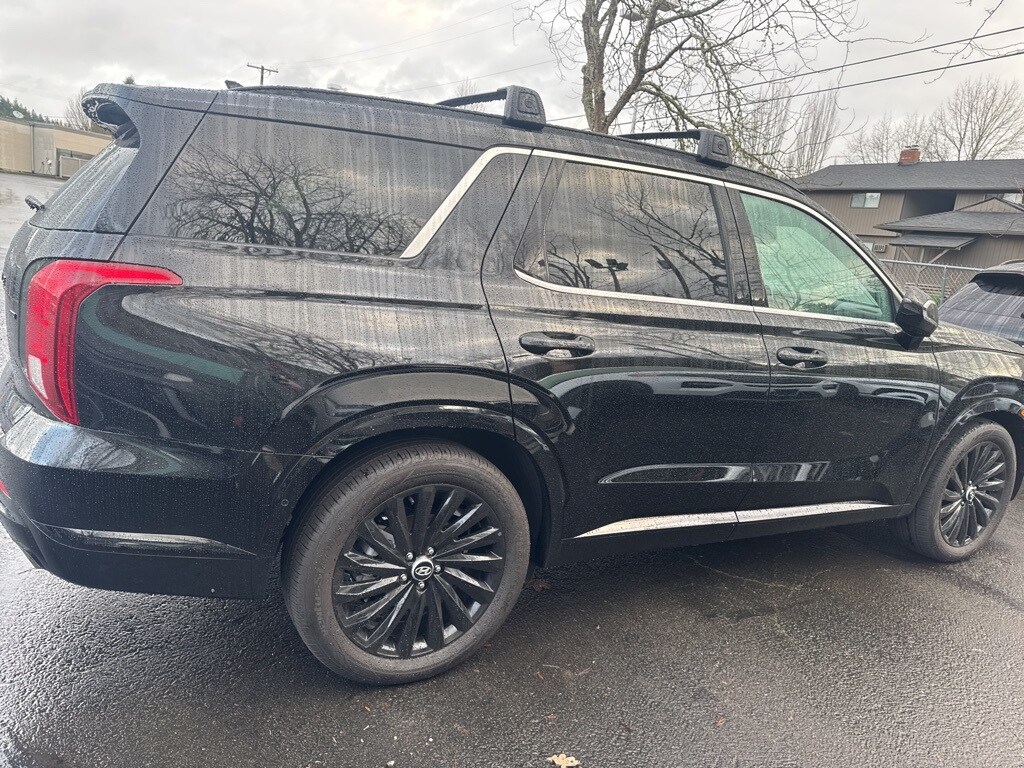 ONLY 3,579 MILES *** ORIGINAL MSRP $56,749 *** NIGHT EDITION *** HEATED/COOLED LEATHER *** 3RD ROW *** ALL-WHEEL-DRIVE *** 2025 Hyundai Palisade Calligraphy Night Edition 4D Sport Utility V6 8-Speed Automatic with SHIFTRONIC AWD Abyss Black Pearl Apple CarPlay & Android Auto, Cross Rails, Exterior Parking Camera Rear, Heads-Up Display, Heated & Ventilated Front Bucket Seats, Heated door mirrors, Heated rear seats, Heated steering wheel, Navigation System, Power moonroof, Radio: AM/FM/MP3 Premium Audio System, Reclining 3rd row seat, Ventilated rear seats, Wheels: 20" x 7.5J Black Liquid Paint Alloy, 12 Speakers, 4-Wheel Disc Brakes, ABS brakes, Air Conditioning, AM/FM radio: SiriusXM, Auto High-beam Headlights, Auto-dimming door mirrors, Auto-dimming Rear-View mirror, Auto-leveling suspension, Automatic temperature control, Brake assist, Bumpers: body-color, Compass, Delay-off headlights, Dual front impact airbags, Dual front side impact airbags, Electronic Stability Control, Emergency communication system, First Aid Kit, Four wheel independent suspension, Front anti-roll bar, Front dual zone A/C, Fully automatic headlights, Garage door transmitter: HomeLink, harman/kardon® Speakers, Illuminated entry, Knee airbag, Leather steering wheel, Low tire pressure warning, Memory seat, Microfiber Suede Seat Trim, Occupant sensing airbag, Option Group 01, Outside temperature display, Overhead airbag, Overhead console, Panic alarm, Power door mirrors, Power driver seat, Power Liftgate, Power steering, Power windows, Radio data system, Rain sensing wipers, Rear air conditioning, Rear anti-roll bar, Rear audio controls, Rear side impact airbag, Rear window defroster, Rear window wiper, Remote keyless entry, Roadside Assistance Kit, Roof rack, Security system, Speed control, Speed-sensing steering, Spoiler, Steering wheel mounted audio controls, Tachometer, Telescoping steering wheel, Tilt steering wheel, Traction control, Turn signal indicator mirrors, Variably intermittent wipers, Apple CarPlay & Android Auto, Cross Rails, Exterior Parking Camera Rear, Heads-Up Display, Heated & Ventilated Front Bucket Seats, Heated door mirrors, Heated rear seats, Heated steering wheel, Navigation System, Power moonroof, Radio: AM/FM/MP3 Premium Audio System, Reclining 3rd row seat, Ventilated rear seats, Wheels: 20" x 7.5J Black Liquid Paint Alloy.