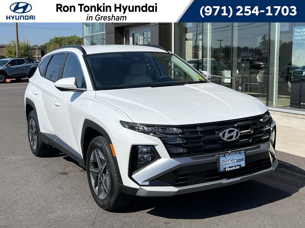 2025 Hyundai Tucson SEL 2.5L I4 DGI DOHC 16V LEV3-SULEV30 187hp 8-Speed Automatic with SHIFTRONIC AWD 4D Sport Utility White Pearl Locally Owned, Reduced Price, One-Owner, Clean Carfax, low miles, AWD, 18" Alloy Wheels, 4-Wheel Disc Brakes, 6 Speakers, ABS brakes, Air Conditioning, All Season Fitted Liners, Alloy wheels, AM/FM radio: SiriusXM, Apple CarPlay & Android Auto, Auto High-beam Headlights, Automatic temperature control, Brake assist, Bumpers: body-color, Cargo Organizer, Cargo Tray, Delay-off headlights, Driver door bin, Driver vanity mirror, Dual front impact airbags, Dual front side impact airbags, Electronic Stability Control, Emergency communication system: Bluelink+, First Aid Kit, Four wheel independent suspension, Front anti-roll bar, Front Bucket Seats, Front Center Armrest, Front dual zone A/C, Front reading lights, Fully automatic headlights, Heated door mirrors, Heated Front Bucket Seats, Heated front seats, Illuminated entry, Low tire pressure warning, Occupant sensing airbag, Option Group 01, Outside temperature display, Overhead airbag, Overhead console, Panic alarm, Passenger door bin, Passenger vanity mirror, Power door mirrors, Power driver seat, Power Liftgate, Power steering, Power windows, Radio data system, Radio: AM/FM/HD Audio System, Rear anti-roll bar, Rear reading lights, Rear seat center armrest, Rear side impact airbag, Rear window defroster, Rear window wiper, Remote keyless entry, Roadside Assistance Kit, Security system, Speed control, Split folding rear seat, Spoiler, Stain & Odor Resistant Cloth Seat Trim, Steering wheel mounted audio controls, Tachometer, Telescoping steering wheel, Tilt steering wheel, Traction control, Trip computer, Variably intermittent wipers, AWD. Clean CARFAX. Call for availability. Come in to Ron Tonkin Gresham Hyundai to test drive today! DA2028 View our entire inventory at https://www.rontonkinhyundai.com/
