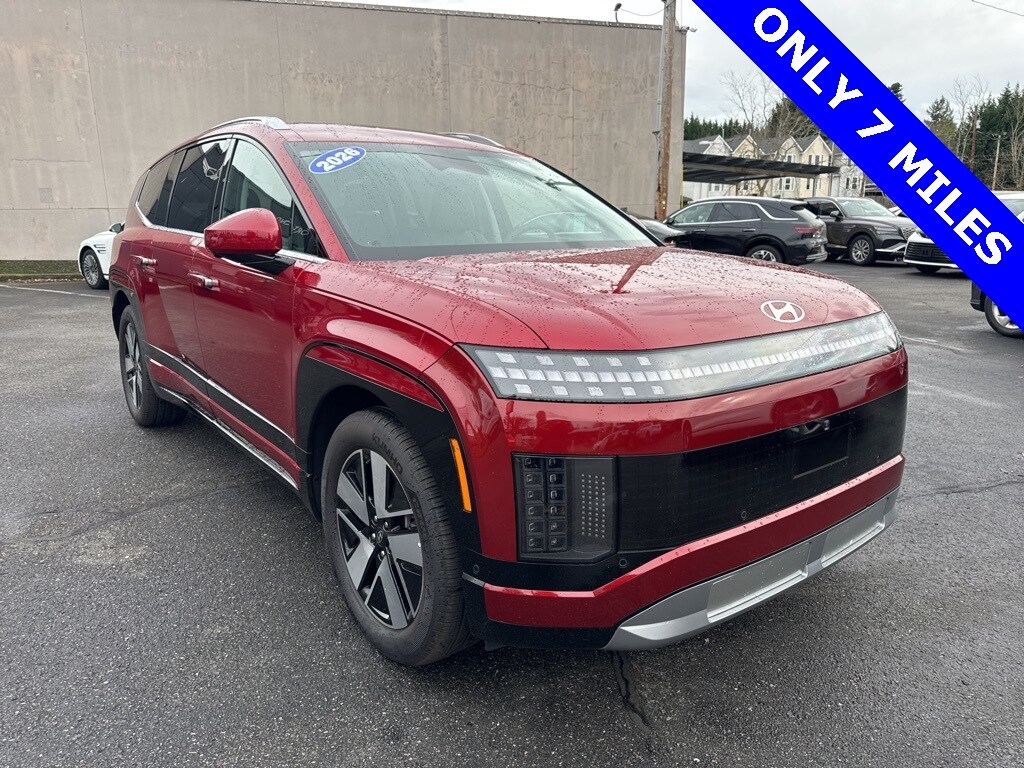 *** ONLY 7 MILES *** ALL-WHEEL-DRIVE *** ORIGINAL MSRP $68,355 *** HEATED/COOLED SEATS *** NAVIGATION *** 2026 Hyundai IONIQ 9 SEL 4D Sport Utility Electric Motor 1-Speed Automatic AWD Ultimate Red CARFAX One-Owner. 3rd row seats: split-bench, Apple CarPlay & Android Auto, harman/kardon® Speakers, Heated and Ventilated Front Bucket Seats, Heated rear seats, Heated steering wheel, Navigation System, Power Liftgate, Radio: AM/FM/SiriusXM/HD Audio System, Reclining 3rd row seat, 20" x 8J Alloy Wheels, 4-Wheel Disc Brakes, 8 Speakers, ABS brakes, Air Conditioning, AM/FM radio: SiriusXM, Auto High-beam Headlights, Auto-dimming Rear-View mirror, Auto-leveling suspension, Automatic temperature control, Bodyside moldings, Brake assist, Bumpers: body-color, Delay-off headlights, Dual front impact airbags, Dual front side impact airbags, Electronic Stability Control, Emergency communication system: None, First Aid Kit, Four wheel independent suspension, Front anti-roll bar, Front dual zone A/C, Front reading lights, Fully automatic headlights, Garage door transmitter: HomeLink, H-Tex Leatherette Seating Surfaces, Heated door mirrors, Illuminated entry, Leather steering wheel, Low tire pressure warning, Occupant sensing airbag, Option Group 01, Outside temperature display, Overhead airbag, Overhead console, Panic alarm, Passenger vanity mirror, Power door mirrors, Power driver seat, Power passenger seat, Power steering, Power windows, Rain sensing wipers, Rear air conditioning, Rear anti-roll bar, Rear reading lights, Rear seat center armrest, Rear side impact airbag, Rear window defroster, Rear window wiper, Remote keyless entry, Security system, Speed control, Spoiler, Steering wheel mounted audio controls, Telescoping steering wheel, Tilt steering wheel, Traction control, Trip computer, Turn signal indicator mirrors, Variably intermittent wipers, 3rd row seats: split-bench, Apple CarPlay & Android Auto, harman/kardon® Speakers, Heated and Ventilated Front Bucket Seats, Heated rear seats, Heated steering wheel, Navigation System, Power Liftgate, Radio: AM/FM/SiriusXM/HD Audio System, Reclining 3rd row seat.