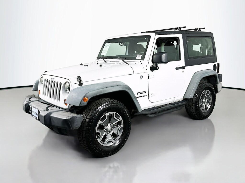 Bright White Clearcoat 2012 Jeep Wrangler Sport 2D Sport Utility 3.6L V6 24V VVT 5-Speed Automatic 4WD 17" x 7.5" Aluminum Wheels, 6 Speakers, Air Conditioning, AM/FM radio, Black 3-Piece Hard Top, Brake assist, CD player, Chrome/Leather Wrapped Shift Knob, Compass, Driver door bin, Driver vanity mirror, Electronic Stability Control, Freedom Panel Storage Bag, Front fog lights, Leather Wrapped Steering Wheel, Outside temperature display, Passenger vanity mirror, Quick Order Package 24S, Radio: Uconnect 130 CD/MP3, Rear Window Defroster, Rear Window Wiper/Washer, Speed control, Tachometer, Tilt steering wheel, Tinted Rear Quarter & Liftgate Windows, Trip computer.